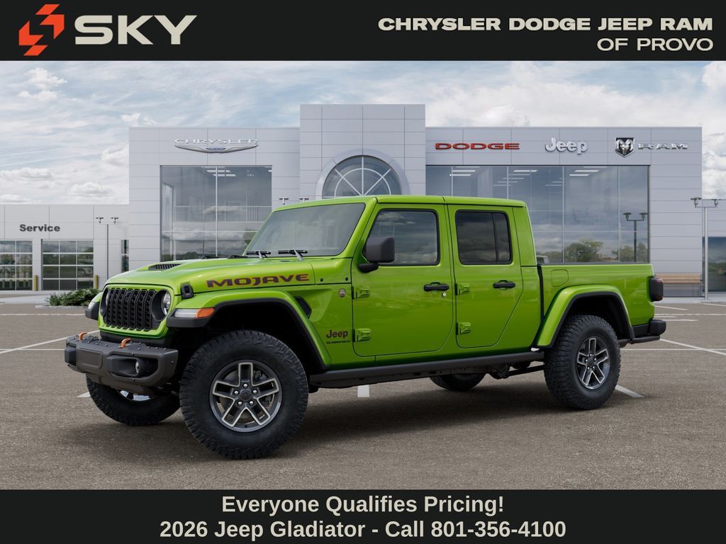 Adventure starts here with the new Jeep Gladiator, available now at Sky CDJR of Provo! As your local Jeep dealership near Salt Lake City, we know how to match Utah drivers with legendary 4x4 capability and open-road freedom. Whether it’s mountain trails or desert drives, the Gladiator is ready to take you there. Call 801-356-4100 today to start your next adventure! Mojito 2026 Jeep Gladiator Mojave 4WD 8-Speed Automatic 3.6L V6 24V VVT