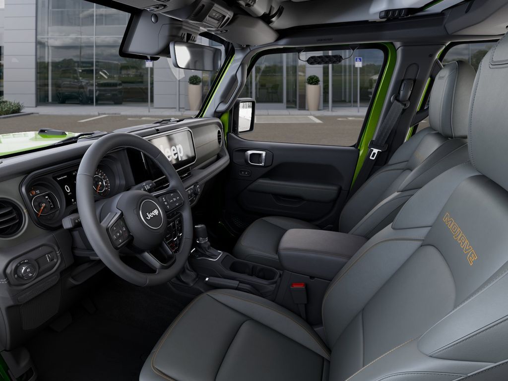 Quick Order Package 24A Mojave X (Alpine Premium Audio System, Auto High Beam Headlamp Control, Auto-Dimming Rear-View Mirror, Blind Spot and Cross Path Detection, Bluetooth Wireless Speaker, Body Color 3-Piece Hard Top, Body Color Rubicon Highline Flare, Freedom Panel Storage Bag, Full Length Floor Console Premium Armrest, Heated Front Seats, Heated Steering Wheel, Integrated Off-Road Camera, Integrated Voice Command with Bluetooth, Leather Trimmed Bucket Seats, Leather Wrapped Park Brake Handle, Leather Wrapped Shift Knob, Mojave Top Hood Decal, MOPAR Hardtop Headliner, ParkSense Rear Park Assist System, Power 4-Way Driver Lumbar Adjust, Power 4-Way Passenger Lumbar Adjust, Power Adjust 8-Way Driver Seat, Power Adjust 8-Way Front Passenger Seat, Premium Door Trim Panel, Radio: Uconnect 5 Navigation with 12.3'' Display, Rear Armrest with Cupholder Seat, Rear Sliding Window, Rear Window Defroster, Steel Front Bumper, Steel Rear Bumper, Universal Garage Door Opener, and USB Host Flip), 110 Mph Vehicle Max Speed Calibration, 12.3'' Touchscreen Display, 4-Wheel Disc Brakes, 4.10 Rear Axle Ratio, 4G LTE Wi-Fi Hot Spot, 8 Speakers, ABS brakes, Air Conditioning, Alexa Built-in, Alloy wheels, AM/FM radio: SiriusXM with 360L, Apple CarPlay, Apple CarPlay/Android Auto, Automatic temperature control, Brake assist, Compass, Connectivity - US/Canada, Delay-off headlights, Driver door bin, Driver vanity mirror, Dual front impact airbags, Dual front side impact airbags, Electronic Stability Control, Emergency communication system: Jeep Connect, Front anti-roll bar, Front Bucket Seats, Front Center Armrest w/Storage, Front dual zone A/C, Front fog lights, Front License Plate Bracket, Front reading lights, Fully automatic headlights, Google Android Auto, Heated door mirrors, Heavy Duty Suspension with Gas Shocks, Illuminated entry, Integrated roll-over protection, Low tire pressure warning, MOPAR All-Weather Slush Mats, MOPAR Spray in Bedliner, Occupant sensing airbag, Outside temperature display, Overhead airbag, Panic alarm, Passenger door bin, Passenger vanity mirror, Power door mirrors, Power steering, Power windows, Premium Cloth Seats with Sport Bolsters, Radio data system, Radio: Uconnect 5 with 12.3'' Display, Rear anti-roll bar, Rear reading lights, Remote keyless entry, Security system, Speed control, Split folding rear seat, Steering wheel mounted audio controls, Tachometer, Telescoping steering wheel, Tilt steering wheel, Traction control, Trip computer, Variably intermittent wipers, Voltmeter, and Wheels: 17'' x 7.5'' Dark Gray Painted. Price may include: $1000 - 2026 National Retail Bonus Cash . Exp. 04/30/2026
