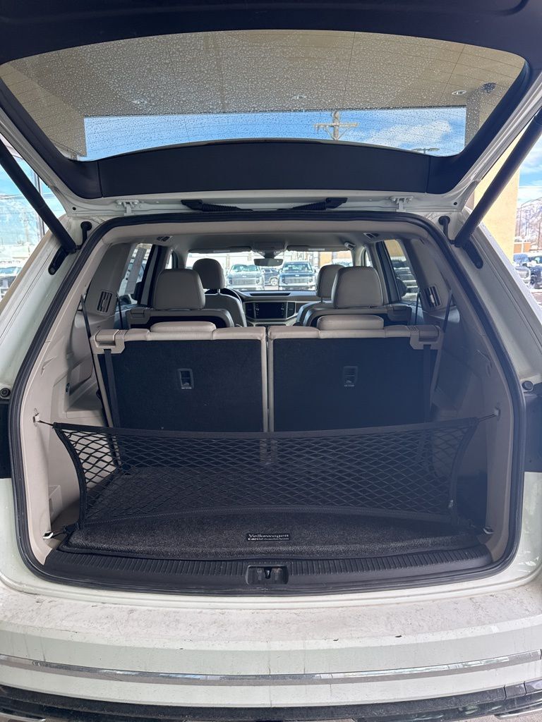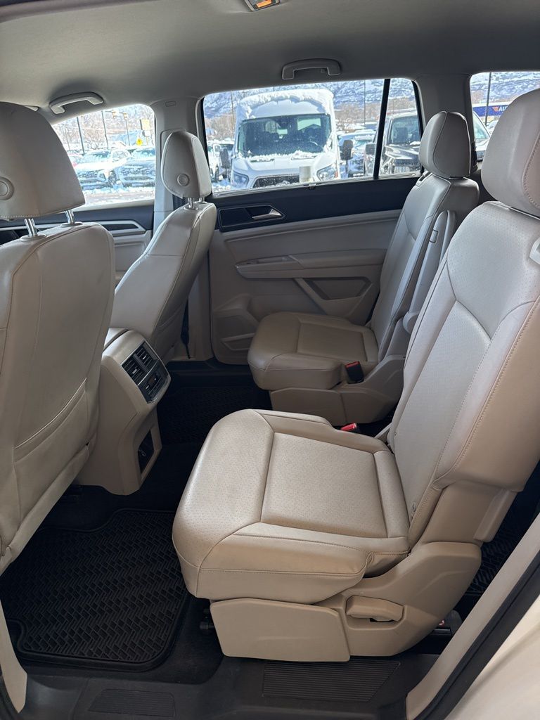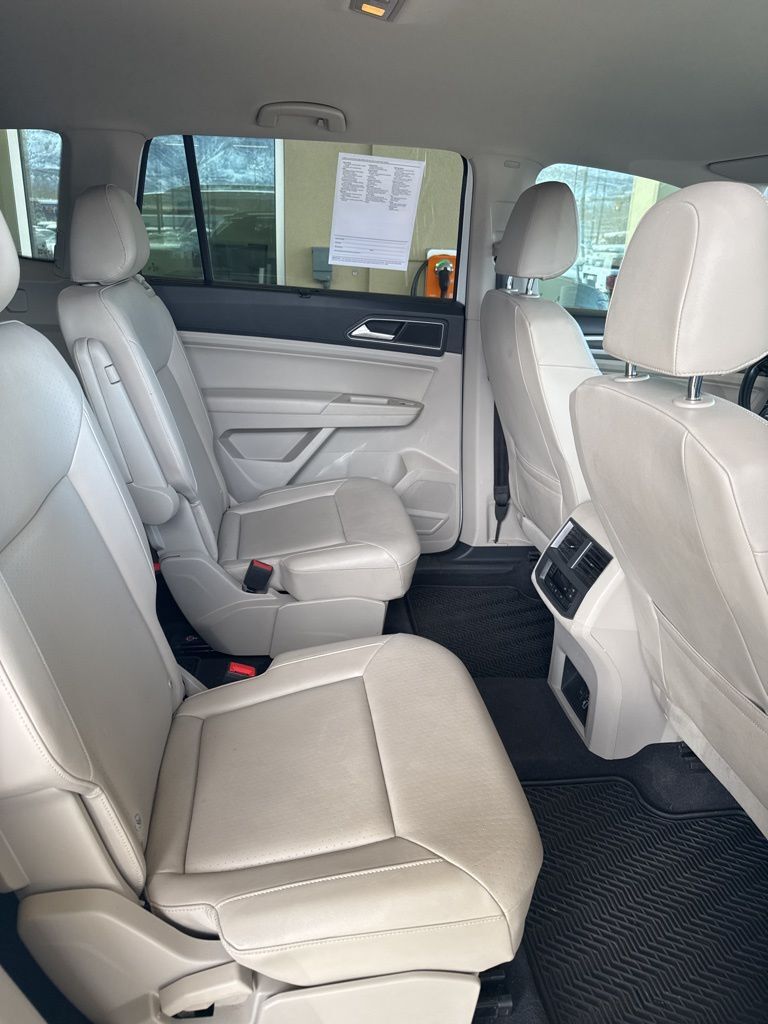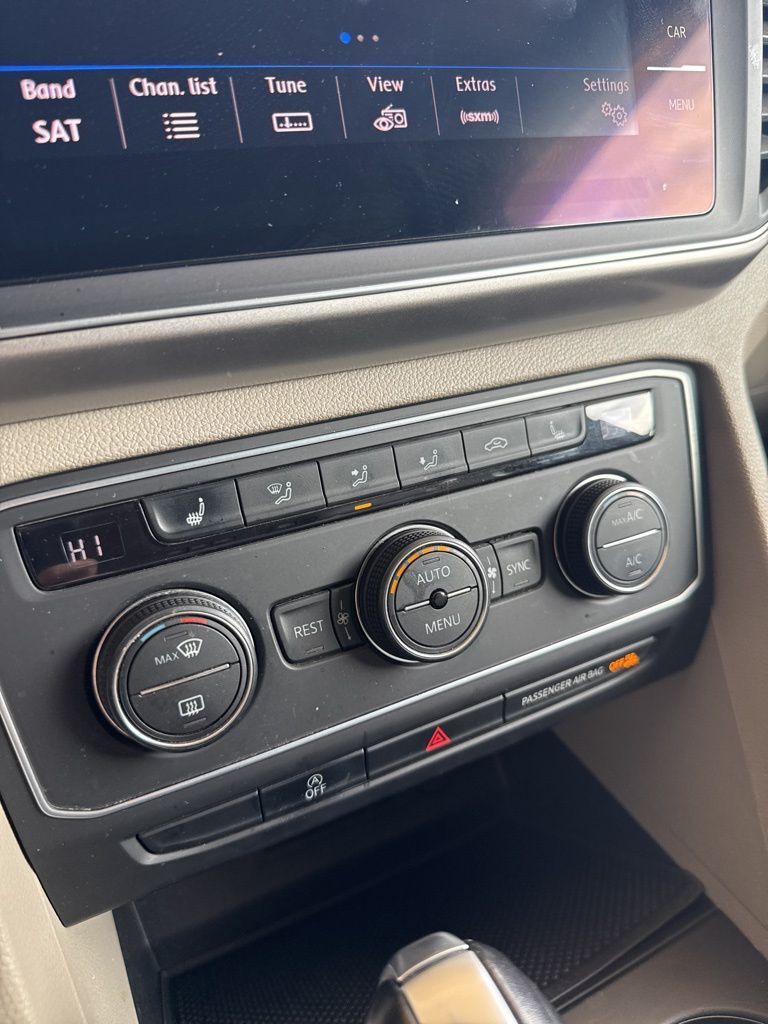 3.60 Axle Ratio, 3rd row seats: split-bench, 4-Wheel Disc Brakes, 8 Speakers, ABS brakes, Air Conditioning, Alloy wheels, AM/FM radio: SiriusXM, Auto-dimming Rear-View mirror, Automatic temperature control, Brake assist, Bumpers: body-color, Compass, Delay-off headlights, Driver door bin, Driver vanity mirror, Dual front impact airbags, Dual front side impact airbags, Electronic Stability Control, Emergency communication system: VW Car-Net, Exterior Parking Camera Rear, Four wheel independent suspension, Front anti-roll bar, Front Bucket Seats, Front Center Armrest, Front dual zone A/C, Front fog lights, Front reading lights, Heated door mirrors, Heated Front Bucket Seats, Heated front seats, Illuminated entry, Low tire pressure warning, Occupant sensing airbag, Outside temperature display, Overhead airbag, Overhead console, Panic alarm, Passenger door bin, Passenger vanity mirror, Power door mirrors, Power driver seat, Power steering, Power windows, Radio data system, Radio: Composition Media 8.0'' Touchscreen w/CD, Rain sensing wipers, Rear air conditioning, Rear anti-roll bar, Rear reading lights, Rear seat center armrest, Rear window defroster, Rear window wiper, Remote CD player, Remote keyless entry, Roof Rack, Security system, Speed control, Speed-sensing steering, Split folding rear seat, Spoiler, Standard Suspension, Steering wheel mounted audio controls, Tachometer, Telescoping steering wheel, Tilt steering wheel, Traction control, Trip computer, Turn signal indicator mirrors, V-Tex Leatherette Seating Surfaces, Variably intermittent wipers, and Wheels: 18'' Prisma Alloy.