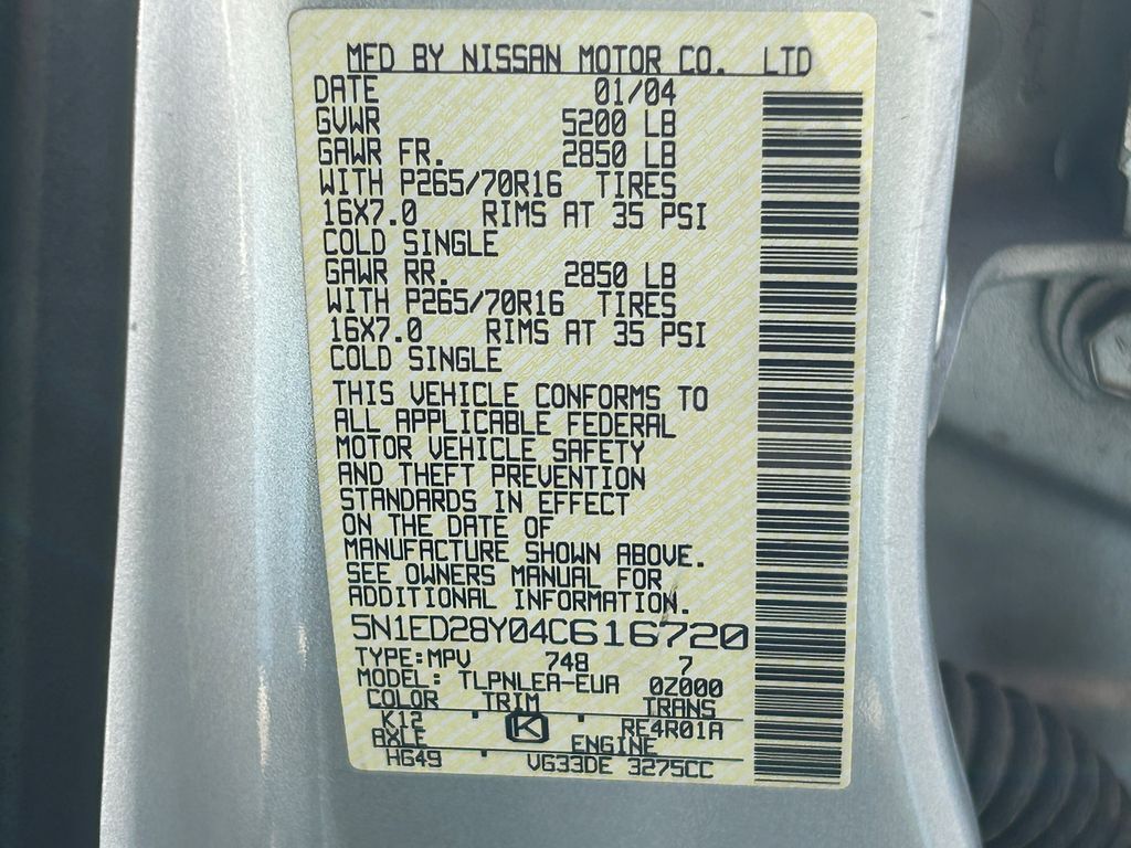 Silver Lightning Metallic 2004 Nissan Xterra XE 4WD 4-Speed Automatic with Overdrive 3.3L V6 SMPI SOHC 3.3L V6 SMPI SOHC, 4WD.