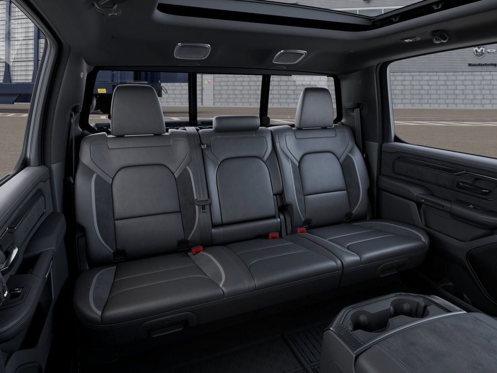 Quick Order Package 22Y RHO, RHO Level 1 Equipment Group (12-Way/1-Way Trailer Connector, 14.4'' Touchscreen Display, 240 Amp Alternator, 4G LTE Wi-Fi Hot Spot, Connected Travel and Traffic Services, Connectivity - US/Canada, Disassociated Touchscreen Display, Driver Power Seat Back Massage, Driver Seat Memory, Driver/Passenger Wrapped Assist Handles, Drowsy Driver Detection, Dual Wireless Charging Pad, Evasive Steer Assist, Exterior Mirrors with Memory, Front Passenger Interactive Display, Front Passenger Power Seat Back Massage, Full Length Premium Upgraded Floor Console, GPS Navigation, Hands-Free Active Driving Assist System, Harman/Kardon 19 Speaker Premium Sound, HD Radio, Heads-Up Display, Heated Second Row Seats, Integrated Center Stack Radio, Integrated Voice Command with Bluetooth, Intersection Collision Assist System, Leather/Carbon Flat-Bottom Steering Wheel, LED CHMSL Lamp, Luxury Front Door Trim Panel, Power Adjustable Pedals with Memory, Power Tailgate, Premium Wrapped Instrument Panel Bezel, Radio: Uconnect 5 Nav with 14.4'' Display, Radio/Driver Seat/Mirrors/Pedals Memory, Rain Sensitive Windshield Wipers, Real Carbon Fiber Interior Accents, Rear 60/40 Folding Split Recline Seat, SiriusXM Radio Service, Smartphone as a Key Capable, Surround View Camera System, Traffic Sign Recognition, USB Host Flip, Ventilated Front Seats, and Ventilated Rear Seats), Trailer Tow Group (Trailer Reverse Steering Control and Trailer Tire Pressure Monitoring System), 10 Speakers, 3.92 Rear Axle Ratio, 4-Wheel Disc Brakes, ABS brakes, Adaptive suspension, Adjustable pedals, Air Conditioning, Alloy wheels, AM/FM radio, Apple CarPlay/Android Auto, Auto High-beam Headlights, Auto Power-Folding Mirrors, Auto-dimming door mirrors, Auto-Dimming Exterior Driver Mirror, Auto-dimming Rear-View mirror, Automatic temperature control, Brake assist, Compass, Delay-off headlights, Dome Dual LED Reading Lamp, Driver door bin, Driver vanity mirror, Dual front impact airbags, Dual front side impact airbags, Dual-Pane Panoramic Sunroof, Electronic Stability Control, Exterior Mirrors Courtesy Lamps, Exterior Mirrors with Heating Element, Exterior Mirrors with Supplemental Signals, Exterior Parking Camera Rear, Flareside Box, Front anti-roll bar, Front Bucket Seats, Front Center Armrest w/Storage, Front dual zone A/C, Front fog lights, Front License Plate Bracket, Front reading lights, Front wheel independent suspension, Fully automatic headlights, Garage door transmitter, Heated door mirrors, Heated front seats, Heated steering wheel, Illuminated entry, Leather Shift Knob, Leather steering wheel, Leather Trimmed Bucket Seats, Low tire pressure warning, MOPAR Off-Road Style Running Boards, Navigation System, Occupant sensing airbag, Outside temperature display, Overhead airbag, Overhead console, Panic alarm, Passenger door bin, Pa Price may include: $1,500 trade in allowance program for customers that own a 2018 or newer passenger car or truck with less than 80,000 miles and trade in their vehicle towards the purchase of a new vehicle. Some restrictions may apply. Contact dealer for details. ...Sale price includes a $1,500 conditional Ram finance discount. To qualify, customer must finance or lease through Chrysler Capital. Factory-subsidized interest rate loans are not eligible. If customer does not finance or lease through Chrysler Capital, the $1,500 finance discount will not apply and sale price will increase by $1,500. Some restrictions may apply. See deal