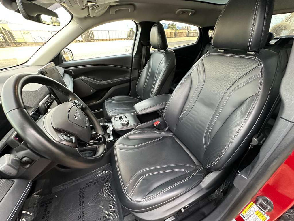 PRICE REDUCED!! AMAZING 2023 Ford Mustang Mach-E Premiumis loaded with convenient features like AWD, LEATHER, POWER LIFTGATE, ANDROID AUTO, ALLOY-WHEELS, APPLE CARPLAY, HEATED SEATS, BLUETOOTH, BACKUP CAMERA, POWER SEAT, Usb, Remote Entry. This stunning2023 Ford Mustang Mach-E Premiumfeatures a beautifulRedexterior and aBlack Onyxinterior. Please Text Kareem To Schedule Your Appointment At 8019169471, The *Technology and Entertainment Features Include:*Voice Command Features, Bluetooth Connection, Garage Door Opener, SiriusXM Satellite Radio, Sync 4 and Heated Steering Wheel, Automatic Climate Control, Memory Seats, Compass, Illuminated entry, Steering Wheel Audio Controls, Memory Mirrors, Air Conditioning, Bucket Front Seats, Telescoping Wheel, Rear Seat Center Armrest, Center Console Storage, Auto Dimming R/V Mirror, Multi-zone Climate Control, Overhead Console, Split Folding Rear Seat, Outside Temperature Gauge, AM/FM Stereo, Tilt Steering Wheel, Trip Odometer, Vanity Mirrors, Rear Window Defroster, Reading Lights, Center Armrest. *Safety and Economy Features Include:*Electronic Stability Control, Back-Up Camera, Rain Sensing Wipers, Security System, Integrated Turn Signal Mirrors, Aftermarket Anti Theft System, Brake Assist, Emergency SOS system, Speed Sensitive Power Steering, Knee Airbag, Overhead airbag, Auto High beams, ABS Brakes, Dual Air Bags, Tire Pressure Monitoring System, Delay-off headlights, Passenger Air Bag Sensor, Driver Front Side Impact Air Bag, Low tire pressure warning. This vehicle has an EPA rated fuel economy of 0.0 highway / 0.0 city.