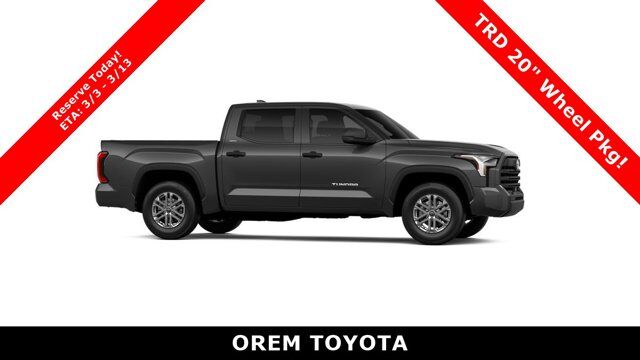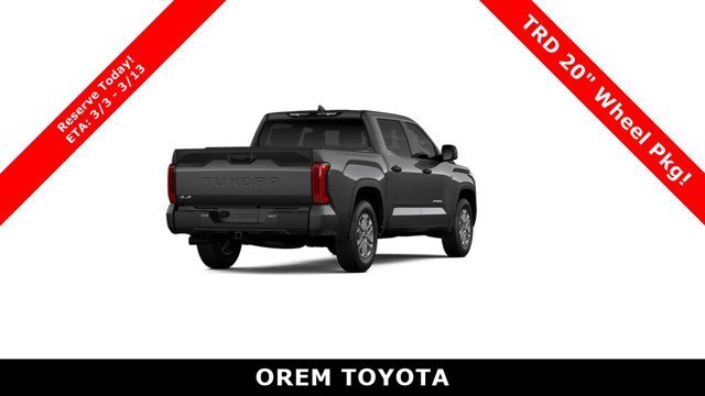 WHEELS: TRD 20 MATTE BLACK (TMS) -inc: Tires: 20, TAILGATE INSERT - BLACK (TMS), SR5 CONVENIENCE PACKAGE -inc: Blind Spot Monitor w/Lane Change Assist, Parking Support Alert/Brake, HEATED POWER BLACK OUTSIDE MIRRORS -inc: LED turn signal, Blind Spot Monitor, EXHAUST TIP - BLACK CHROME (TMS), BLACK FRONT BUMPER LETTERS (TMS), BLACK EMBLEM OVERLAY (TMS), ALL WEATHER FLOOR LINERS (TMS), Wheels: 18 Alloy, Vehicle Stability Control (VSC) Electronic Stability Control (ESC). This Toyota Tundra 4WD has a strong Twin Turbo Regular Unleaded V-6 3.4 L/210 engine powering this Automatic transmission.*Experience a Fully-Loaded Toyota Tundra 4WD SR5 *Urethane Gear Shifter Material, Trip Computer, Transmission: 10-Speed Electronic Controlled Auto -inc: intelligence (ECT-i), sequential shift mode, uphill/downhill shift logic and TOW/HAUL modes, Transmission w/Driver Selectable Mode and Oil Cooler, Trailer Wiring Harness, Tires: 265/70R18, Tire Pressure Monitor System (TPMS) Low Tire Pressure Warning, Tailgate Rear Cargo Access, Streaming Audio, Steel Spare Wheel, Solid Axle Rear Suspension w/Coil Springs, Smart Device Remote Engine Start, Smart Device Integration, Single Stainless Steel Exhaust, Side Impact Beams, Safety Connect -inc: up to 10-year trial, Remote Connect w/1-year trial and Service Connect w/up to 10-year trial, See toyota.com/connected-services for details, Remote Releases -Inc: Mechanical Fuel, Remote Keyless Entry w/Integrated Key Transmitter, Illuminated Entry and Panic Button, Regular Composite Box Style, Redundant Digital Speedometer.*Visit Us Today *A short visit to Orem Toyota located at 1400 S. Sandhill Rd, Orem, UT 84058 can get you a dependable Tundra 4WD today!