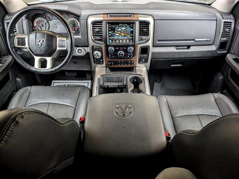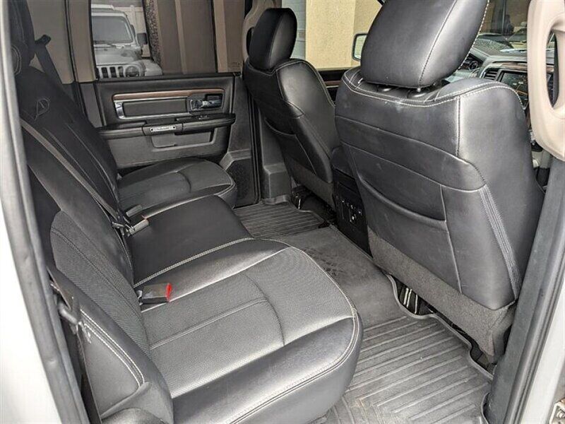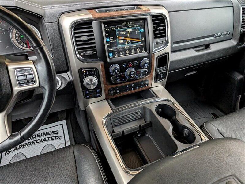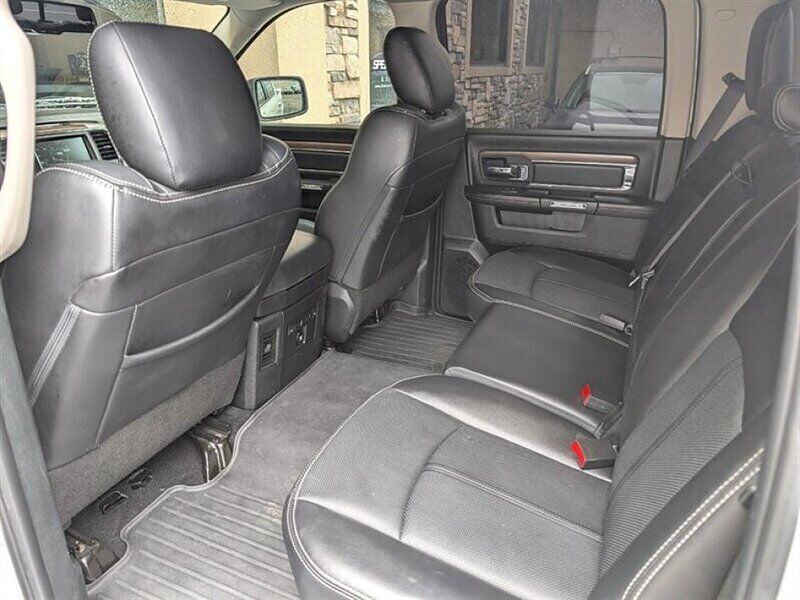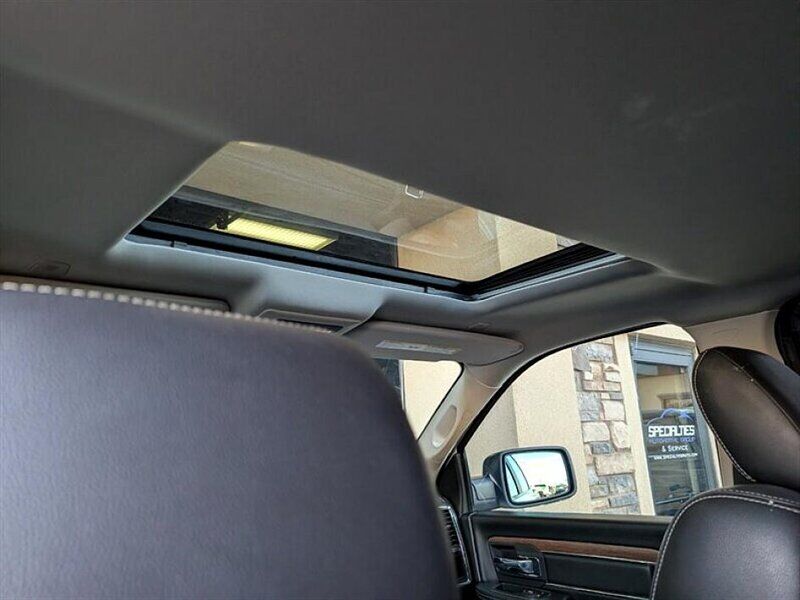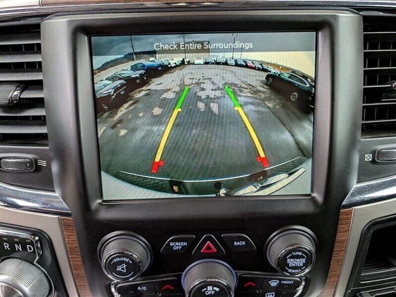 INSTALLED FEATURES: Air filtration, Front air conditioning: automatic climate control, Front air conditioning zones: dual, Airbag deactivation: occupant sensing passenger, Front airbags: dual, Side airbags: front, Side curtain airbags: front / rear, Antenna type: diversity / mast, Auxiliary audio input: Bluetooth / iPod/iPhone / jack / USB, Premium brand: Alpine, Radio: AM/FM / touch screen display / voice operated, Radio data system, Satellite radio: SiriusXM, Speed sensitive volume control, Subwoofer: 1, Surround sound, Total speakers: 8, ABS: 4-wheel, Brake drying, Braking assist, Electronic brakeforce distribution, Front brake type: ventilated disc, Power brakes, Rear brake type: ventilated disc, Armrests: front center / rear center folding with storage, Cargo area floor mat: rubber/vinyl, Dash trim: simulated wood, Door trim: simulated wood, Floor mat material: carpet, Floor material: carpet, Floor mats: front / rear, Heated steering wheel, Shift knob trim: chrome, Steering wheel trim: leather, Adjustable pedals: power, Ambient lighting, Assist handle: front / rear, Cruise control, Cupholders: front / rear, Memorized settings: 2 driver / adjustable pedals / audio system / driver seat / side mirrors, Multi-function remote: keyless entry / panic alarm, One-touch windows: 2, Overhead console: front, Power outlet(s): 115V front / 12V front, Power steering, Power windows: lockout button, Reading lights: front / rear, Rearview mirror: auto-dimming, Steering wheel: tilt, Steering wheel mounted controls: audio / cruise control / multi-function / phone / voice control, Storage: door pockets / front seatback / in seat cushion / under rear seats, Universal remote transmitter: garage door opener, Vanity mirrors: dual illuminating, Active grille shutters, Door handle color: chrome, Fender lip moldings: body-color, Front bumper color: chrome, Grille color: chrome / chrome surround, License plate bracket: front, Mirror color: chrome, Pickup bed light, Rear bumper color: chrome, Tailgate: power locking / removable, Window trim: black, Infotainment: Uconnect, Infotainment screen size: 8.4 in., Clock, Compass, Customizable instrument cluster, Digital odometer, External temperature display, Fuel economy display: MPG / range, Gauge: tachometer, Instrument cluster screen size: 7 in., Multi-function display, Powertrain hour meter, Trip odometer, Warnings and reminders: low fuel level / low oil level / maintenance due, Daytime running lights: LED, Exterior entry lights: puddle lamps, Front fog lights, Headlights: auto delay off / auto on/off / halogen, Taillights: LED, Side mirror adjustments: power / power folding / reverse gear tilt, Side mirrors: auto-dimming / heated / integrated turn signals, 4WD selector: electronic hi-lo, 4WD type: part time w/ on demand setting, Alternator: 160 amps, Auxiliary oil cooler, Auxiliary transmission fluid cooler, Battery: maintenance-free, Battery rating: 730 CCA, Battery saver, Emissions: 50 state, Camera system: rearview, Child safety door locks, Child seat anchors: LATCH system, Crumple zones: front, Rearview monitor: in dash, Emergency locking retractors: front / rear, Front seatbelts: 3-point, Rear seatbelts: 3-point, Seatbelt force limiters: front, Seatbelt pretensioners: front, Seatbelt warning sensor: front, Driver seat: heated / ventilated, Driver seat power adjustments: 10 / height / lumbar / reclining, Front headrests: 2 / adjustable, Front seat type: 40-20-40 split bench, Passenger seat: heated / ventilated, Passenger seat power adjustments: 6 / lumbar / reclining, Rear headrests: 3 / adjustable, Rear seat folding: folds up, Rear seat type: 60-40 split bench, Upholstery: leather-trimmed, Anti-theft system: alarm / vehicle immobilizer, Power door locks: anti-lockout / auto-locking, Hill holder control, Roll stability control, Stability control, Traction control, Trailer stability control, Front shock type: twin-tube gas, Front spring type: coil, Front stabilizer bar, Front struts, Front suspension classification: independent, Front suspension type: short and long arm, Rear shock type: twin-tube gas, Rear spring type: coil, Rear stabilizer bar, Rear suspension classification: solid live axle, Rear suspension type: multi-link, Electronic messaging assistance: voice operated / with read function, Hands-free phone call integration: voice operated, Wireless data link: Bluetooth, Trailer hitch: Class IV, Trailer wiring: 4-pin / 7-pin, Spare tire mount location: underbody, Spare tire size: full-size, Spare wheel type: steel, Tire Pressure Monitoring System, Wheels: chrome clad, Front wipers: variable intermittent, Pickup sliding rear window: power horizontal, Power windows: safety reverse, Rear privacy glass, Solar-tinted glass