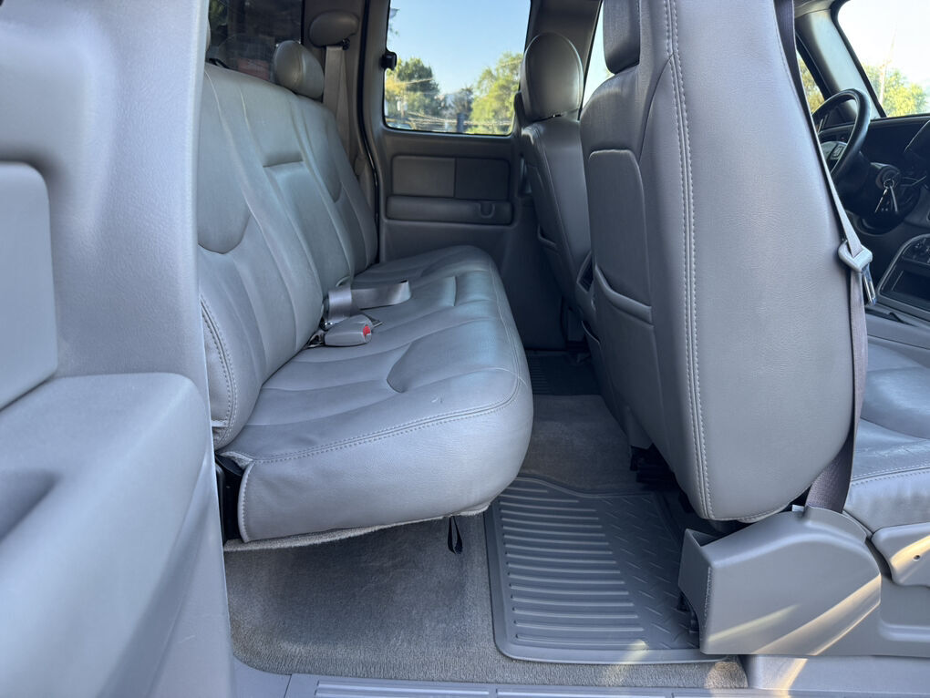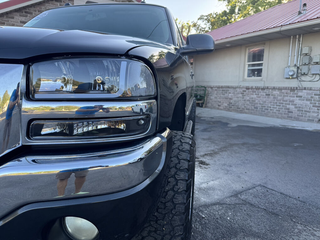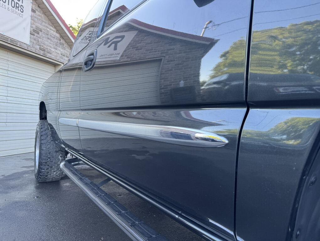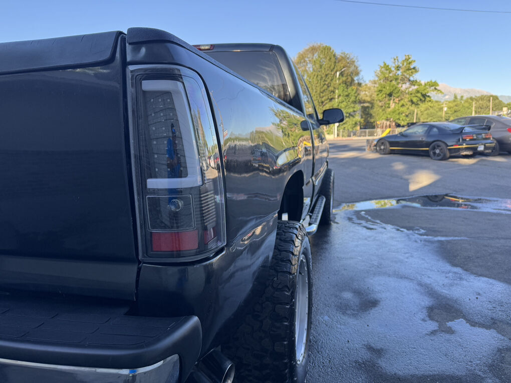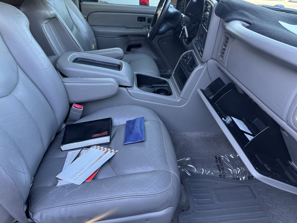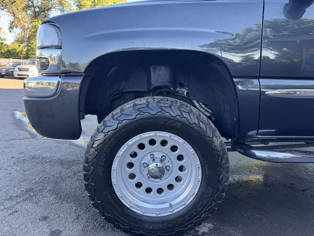 Now available is this super low mile, super clean 2004 GMC Sierra 1500 SLT. Runs and drives awesome. No shakes, or other issues. Extended cab short bed, push button 4×4. Fresh out of California. The frame and underside is in pristine shape, with absolutely no rust, anywhere. The frame is clean enough to eat dinner off of, seriously. Clean title and Carfax report in hand. EXCELLENT mileage at 89,105. (TRUE MILEAGE with the Carfax report to confirm). Excellent maintenance records included.The 5.3L V8 runs perfectly, and the automatic transmission shifts great. Suspension, steering and brakes are all great. Rolling on a 4” RCD suspension lift with 18” Eagle Alloy wheels wrapped in BF Goodrich All-Terrain T/A 305/65R18 (33.6”x12”R18). Tires have about 40% tread remaining in the front, 50% in the rear. Definitely good for a couple more years. Corsa dual tip full exhaust with muffler. Sounds great. Brand new black housing clear headlights with LED U-bar running lights, and LED low/high beam bulbs (new). Also, brand new black housing LED taillights. Old lights were just aged. Running boards, spray in bed liner, spare tire and tools included. Factory tow package for towing the toys. Tinted windows all around. The Dark Spiral Gray exterior is super clean all around and the body looks great.
