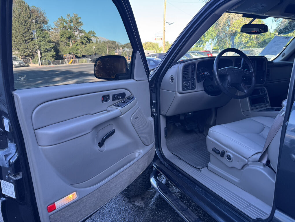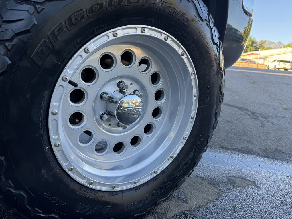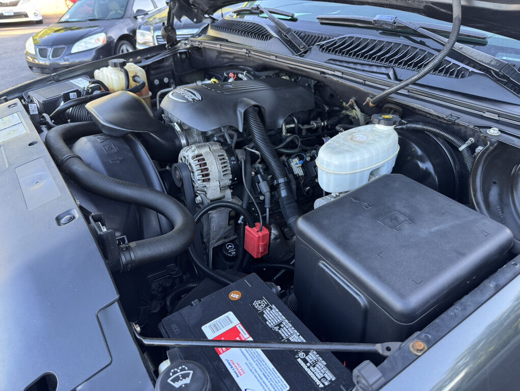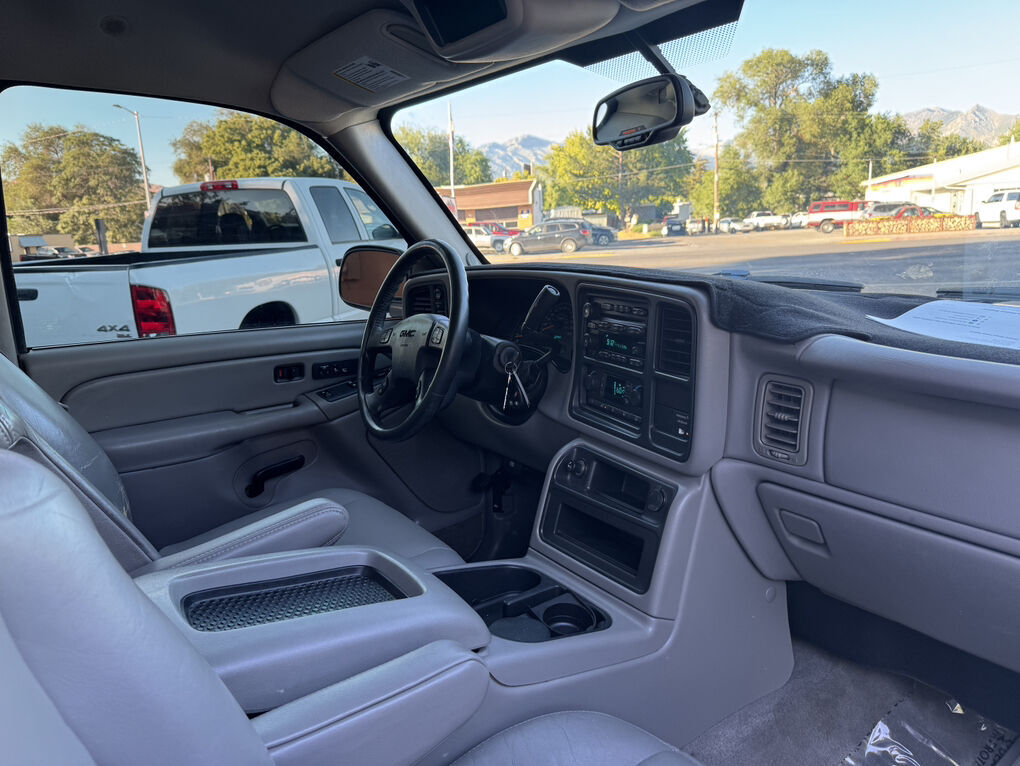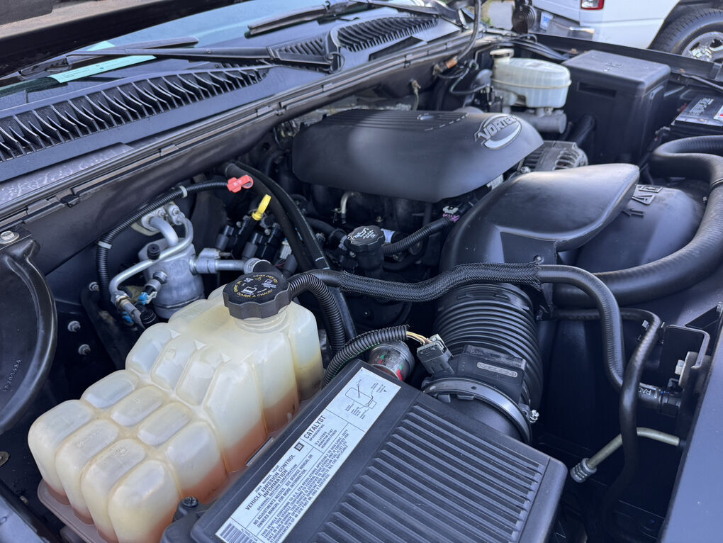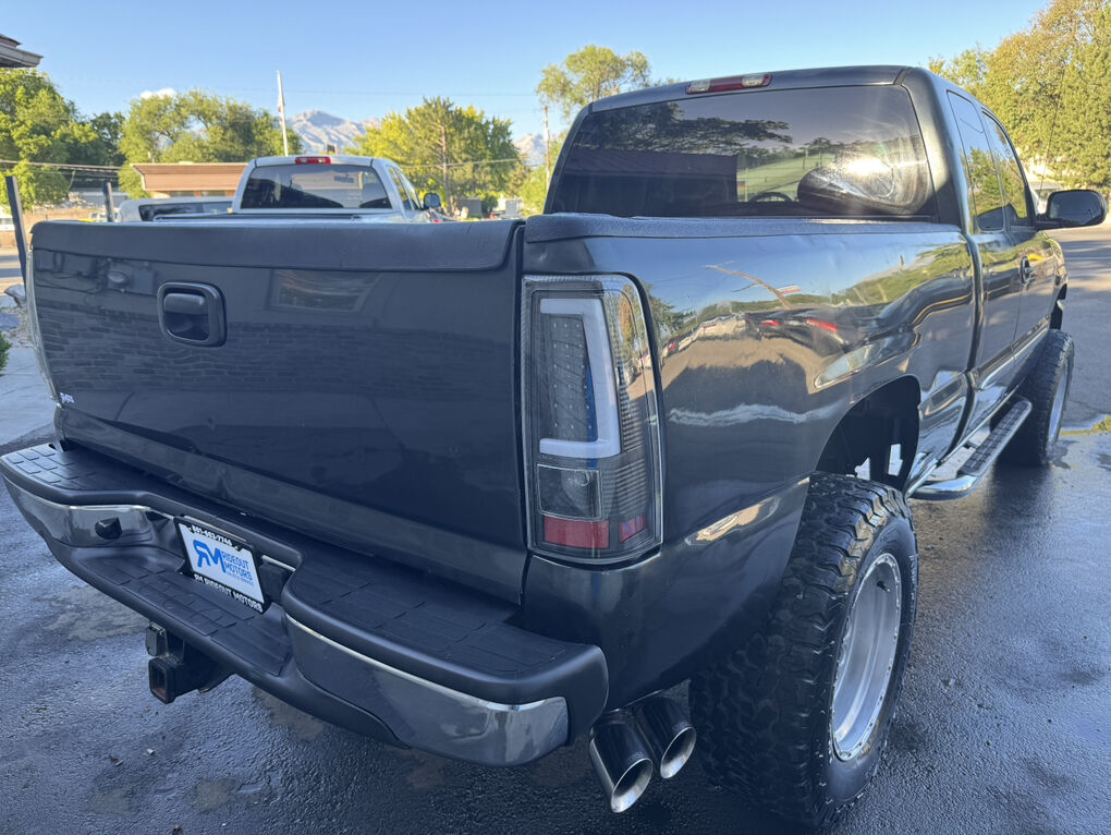 Now available is this super low mile, super clean 2004 GMC Sierra 1500 SLT. Runs and drives awesome. No shakes, or other issues. Extended cab short bed, push button 4×4. Fresh out of California. The frame and underside is in pristine shape, with absolutely no rust, anywhere. The frame is clean enough to eat dinner off of, seriously. Clean title and Carfax report in hand. EXCELLENT mileage at 89,105. (TRUE MILEAGE with the Carfax report to confirm). Excellent maintenance records included.The 5.3L V8 runs perfectly, and the automatic transmission shifts great. Suspension, steering and brakes are all great. Rolling on a 4” RCD suspension lift with 18” Eagle Alloy wheels wrapped in BF Goodrich All-Terrain T/A 305/65R18 (33.6”x12”R18). Tires have about 40% tread remaining in the front, 50% in the rear. Definitely good for a couple more years. Corsa dual tip full exhaust with muffler. Sounds great. Brand new black housing clear headlights with LED U-bar running lights, and LED low/high beam bulbs (new). Also, brand new black housing LED taillights. Old lights were just aged. Running boards, spray in bed liner, spare tire and tools included. Factory tow package for towing the toys. Tinted windows all around. The Dark Spiral Gray exterior is super clean all around and the body looks great.