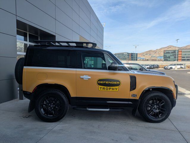Land Rover Lehi is proud to offer this charming 2023 Land Rover Defender 90. X-Dynamic SE 4WD Trophy Edition....Low Miles! and Land Rover Certified with factory warranty until October of 2027 and unlimited miles!!!12-Way Heated & Cooled Electric Memory Seats, 15 Speakers, 3.55 Axle Ratio, 4-Wheel Disc Brakes, ABS brakes, Air Conditioning, Alloy wheels, AM/FM radio: SiriusXM, Apple CarPlay & Android Auto, Auto High-beam Headlights, Auto-dimming door mirrors, Auto-dimming Rear-View mirror, Automatic temperature control, Brake assist, Bumpers: body-color, Compass, Delay-off headlights, Driver door bin, Driver vanity mirror, Dual front impact airbags, Dual front side impact airbags, Electronic Stability Control, Exterior Parking Camera Rear, Four wheel independent suspension, Front anti-roll bar, Front Bucket Seats, Front Center Armrest, Front dual zone A/C, Front fog lights, Front reading lights, Fully automatic headlights, Garage door transmitter: HomeLink, Grained Leather Seat Trim, Heated door mirrors, Heated front seats, Illuminated entry, Leather Shift Knob, Leather steering wheel, Low tire pressure warning, Memory seat, Navigation system: Connected Navigation PIVI Pro, Occupant sensing airbag, Outside temperature display, Overhead airbag, Overhead console, Panic alarm, Passenger door bin, Passenger vanity mirror, Power door mirrors, Power driver seat, Power moonroof, Power passenger seat, Power steering, Power windows, Radio data system, Radio: 700W 15 Speaker Meridian Surround Sound Sys, Rain sensing wipers, Rear anti-roll bar, Rear fog lights, Rear reading lights, Rear seat center armrest, Rear window defroster, Rear window wiper, Remote keyless entry, Security system, Speed control, Speed-sensing steering, Speed-Sensitive Wipers, Split folding rear seat, Steering wheel mounted audio controls, Tachometer, Telescoping steering wheel, Tilt steering wheel, Traction control, Trip computer, Variably intermittent wipers, Ventilated front seats, Weather band radio, Wheels: 20 Satin Dark Grey Style 5094.It's no wonder. Year after year, Land Rover vehicles continue to accomplish extraordinary deeds, as well as make everyday driving pure pleasure. Land Rover capability, of course, is unquestioned. But the success and longevity of the brand owes as much to the vehicle's unique blend of luxury, safety and versatility. Whether it's a Range Rover, Range Rover Sport, Range Rover Evoque, LR4, or LR2, the Land Rover Approved Certified Pre-Owned Vehicle Program can transform your dream of owning one of these legends into a reality.