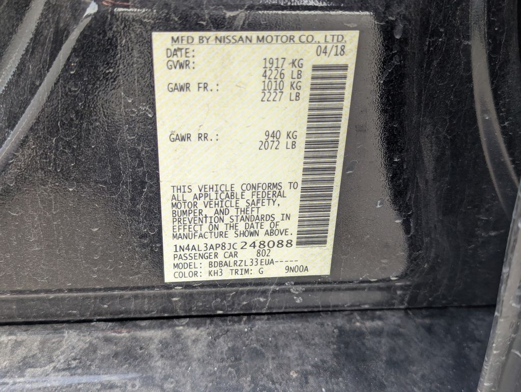Super Black Clearcoat 2018 Nissan Altima 2.5 SL FWD CVT with Xtronic 2.5L 4-Cylinder DOHC 16V CVT with Xtronic.
