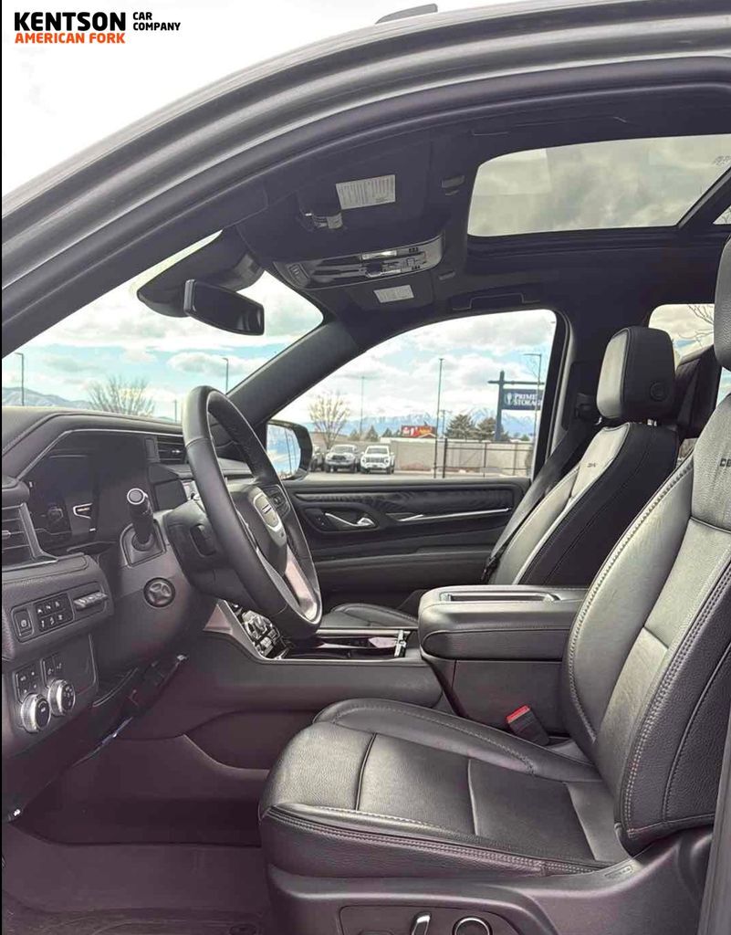 Preferred Equipment Group 5SA (15'' Diagonal Multi-Color Head-Up Display, 2 Presets For Outside Rearview Mirrors, 3 Years of GMC Connected Services, 3 Years of OnStar Safety & Security, 3rd Row 60/40 Power-Folding Split-Bench Seat, Bose 14-Speaker Surround w/CenterPoint, Bright Front & Rear Door Sill Plates, Chrome Door Handles w/Body-Color Strip, Dual Exhaust System, Enhanced Automatic Emergency Braking, Floor Console, Galvano Bodyside Moldings, Hands-Free Power Programmable Rear Liftgate, HD Surround Vision, Heated & Ventilated Driver & Front Passenger Seats, Heated 2nd Row Outboard Position Seats, Heated Driver & Front Passenger Seats, Heated Steering Wheel, Hill Descent Control, Inside Rear-View Auto-Dimming Mirror, Outside Heated Power-Adjustable Mirrors, Power Release 2nd Row Bucket Seats, Power Tilt & Telescopic Steering Column, Rear Pedestrian Alert, Safety Alert Seat, Universal Home Remote, and Wireless Charging), 1.5 kW Heater/Defrost Air System, 14 Speakers, 250 Amps Alternator, 3 Years of OnStar Safety & Security (DISC), 3.23 Rear Axle Ratio, 3rd row seats: split-bench, 4-Wheel Disc Brakes, 850 Cold-Cranking Amps Battery, ABS brakes, Adaptive Cruise Control, Adaptive suspension, Air Conditioning, Alloy wheels, AM/FM radio: SiriusXM with 360L, AM/FM Stereo, Apple CarPlay/Android Auto, Auto High-beam Headlights, Auto-dimming door mirrors, Auto-dimming Rear-View mirror, Auto-leveling suspension, Automatic Emergency Braking, Automatic temperature control, Bodyside moldings, Brake assist, Bumpers: body-color, Compass, Delay-off headlights, Diesel B20 Fuel, Driver door bin, Driver vanity mirror, Dual front impact airbags, Dual front side impact airbags, Dual-Pane Panoramic Power Sunroof, Electronic Stability Control, Emergency communication system: OnStar and GMC connected services capable, Engine Block Heater, Following Distance Indicator, Forward Collision Alert, Four wheel independent suspension, Front & Rear Park Assist, Front anti-roll bar, Front Bucket Seats, Front Center Armrest, Front dual zone A/C, Front fog lights, Front Pedestrian Braking, Front reading lights, Fully automatic headlights, Garage door transmitter, Heads-Up Display, Heated door mirrors, Heated front seats, Heated rear seats, Heated steering wheel, Illuminated entry, IntelliBeam Automatic High Beam On/Off, Lane Change Alert w/Side Blind Zone Alert, Lane Keep Assist w/Lane Departure Warning, Low tire pressure warning, Magnetic Ride Control Suspension, Memory seat, Navigation System, Occupant sensing airbag, Outside temperature display, Overhead airbag, Overhead console, Panic alarm, Passenger door bin, Passenger vanity mirror, Perforated Leather Seating Surfaces, Power door mirrors, Power driver seat, Power Liftgate, Power passenger seat, Power steering, Power windows, Power-Retractable Assist Steps, Rain sensing wipers, Rear air conditioning, Rear anti-roll bar, Rear Cross Traffic Alert, Rear reading lights, Rear Seat Media System, Rear window defroster, Rear window wiper, Remote keyless entry, Roof rack: rails only, Security system, Single Outlet Exhaust System, SiriusXM w/360L, Speed control, Speed-sensing steering, Split folding rear seat