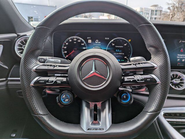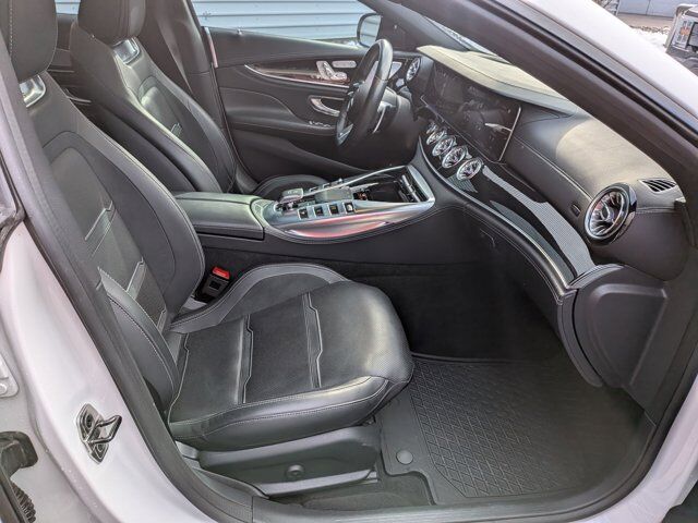 Polar White 2022 Mercedes-Benz AMG® GT 53 4MATIC® 4MATIC® 9-Speed Automatic I6 Mercedes-Benz Certified Pre-Owned Certified, 14 Speakers, 4-Wheel Disc Brakes, ABS brakes, Adaptive suspension, Air Conditioning, Alloy wheels, AM/FM radio: SiriusXM, Apple CarPlay®/Android Auto®, Auto High-beam Headlights, Auto tilt-away steering wheel, Auto-dimming door mirrors, Auto-dimming Rear-View mirror, Automatic temperature control, Brake assist, Bumpers: body-color, Burmester® Surround Sound System. Burmester is a registered trademark of Burmester Audiosysteme GmbH, Berlin, Germany., Child-Seat-Sensing Airbag, Compass, Delay-off headlights, Driver door bin, Driver vanity mirror, Dual front impact airbags, Dual front side impact airbags, Electronic Stability Control, Emergency communication system: Mercedes me connect, Exterior Parking Camera Rear, Four wheel independent suspension, Front anti-roll bar, Front Bucket Seats, Front Center Armrest, Front dual zone A/C, Front reading lights, Fully automatic headlights, Garage door transmitter, Head restraints memory, Heated door mirrors, Heated Front Seats, Heated front seats, Heated Power Front Bucket Seats, Illuminated entry, Knee airbag, Leather Shift Knob, Low tire pressure warning, MB-Tex/Microfiber Upholstery, Memory seat, Navigation System, Occupant sensing airbag, Outside temperature display, Overhead airbag, Overhead console, Panic alarm, Passenger door bin, Passenger vanity mirror, Power adjustable front head restraints, Power door mirrors, Power driver seat, Power Liftgate, Power moonroof, Power passenger seat, Power steering, Power windows, Premium audio system: MBUX, Radio data system, Radio: MBUX Infotainment & Navigation System, Rain sensing wipers, Rear anti-roll bar, Rear reading lights, Rear window defroster, Remote keyless entry, Security system, Speed control, Speed-sensing steering, Speed-Sensitive Wipers, Spoiler, Sport steering wheel, Steering wheel memory, Steering wheel mounted audio controls, Tachometer, Telescoping steering wheel, Tilt steering wheel, Traction control, Trip computer, Turn signal indicator mirrors, Variably intermittent wipers, Wheels: 9.5 x 19 Fr/11 x 19 Rr AMG® Multispoke.Mercedes-Benz Certified Pre-Owned Details: * 165 Point Inspection * Transferable Warranty * Includes Trip Interruption Reimbursement and 7 days/500 miles Exchange Privilege * Limited Warranty: 12 Month/Unlimited Mile beginning after new car warranty expires or from certified purchase date * Vehicle History * Warranty Deductible: $0 * Roadside AssistanceAwards: * ALG Residual Value Awards, Residual Value Awards