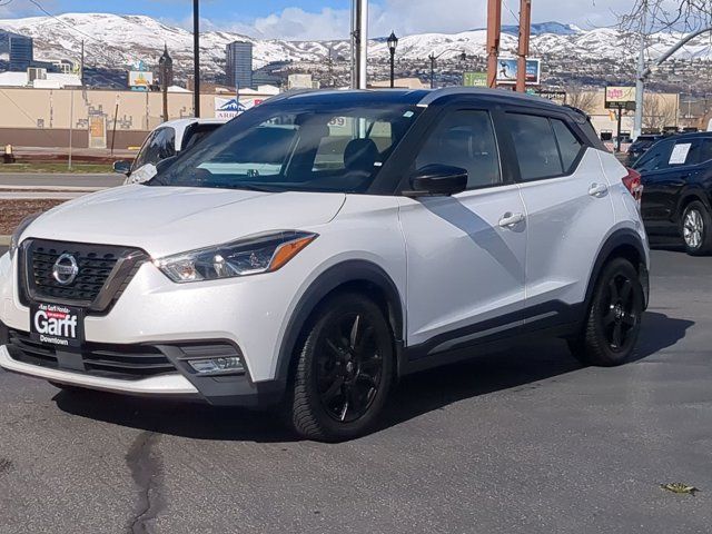 CLEAN CARFAX, ONE OWNERALL Ken Garff Customers receive complimentary Garff Care!, Garff Care can jump a dead battery and will unlock your vehicle if you find yourself locked out, 17 Alloy Wheels, 3.927 Axle Ratio, 6 Speakers, ABS brakes, Air Conditioning, Alloy wheels, AM/FM radio: SiriusXM, Auto High-beam Headlights, Automatic temperature control, Blind Spot Warning, Bose Personal Plus Audio System, Brake assist, Bumpers: body-color, Carpeted Floor Mats w/Cargo Mat, Center Armrest w/Storage, Cloth Seat Trim, Compass, Delay-off headlights, Driver door bin, Driver vanity mirror, Driver's Seat Mounted Armrest, Dual front impact airbags, Dual front side impact airbags, Electronic Stability Control, Exterior Parking Camera Rear, Front anti-roll bar, Front Bucket Seats, Front fog lights, Front reading lights, Front wheel independent suspension, Fully automatic headlights, Heated door mirrors, Heated Front Seats, Illuminated entry, Knee airbag, Leather Shift Knob, Low tire pressure warning, NissanConnect featuring Apple CarPlay and Android Auto, Occupant sensing airbag, Outside temperature display, Overhead airbag, Panic alarm, Passenger door bin, Passenger vanity mirror, Power door mirrors, Power steering, Power windows, Prima-Tex Appointed Seat Trim, Radio data system, Radio: AM/FM Audio System, Rear Parking Sensors, Rear reading lights, Rear Roof Spoiler, Rear side impact airbag, Rear window defroster, Rear window wiper, Remote keyless entry, Roof rack: rails only, Security System, Speed control, Splash Guards Grain (4 Piece), Split folding rear seat, Spoiler, Sport steering wheel, SR Premium Package, Steering wheel mounted audio controls, Tachometer, Telescoping steering wheel, Tilt steering wheel, Traction control, Trip computer, Turn signal indicator mirrors, Variably intermittent wipers, Wheels: 17 Black Alloy.Ken Garff Honda is honored to offer this attractive-looking 2020 Nissan Kicks. SR Aspen White/Super Black31/36 City/Highway MPGAs evidenced by our transparent, no hassle pricing, Kelly Blue Book Instant Cash Offer Trade Process, Garff Care, Ken Garff Honda Downtown puts you first in ALL that we do...All PreOwned Vehicles are: Safety Inspected - 120 Point Professionally Detailed Include a Free Vehicle History Report Ready for Immediate Delivery.Awards: * 2020 KBB.com 10 Coolest New Cars Under $20,000