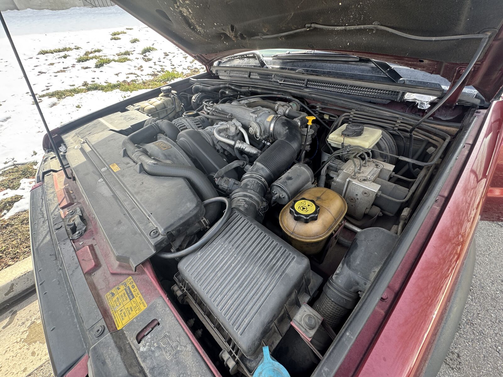 It has a large coolant leak in the intake manifold that needs to be fixed. It still runs and drives, but I would keep trips short and monitor temps until it's fixed.