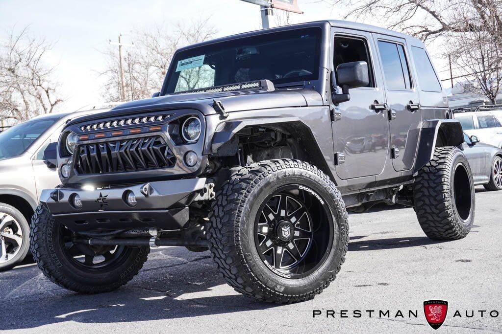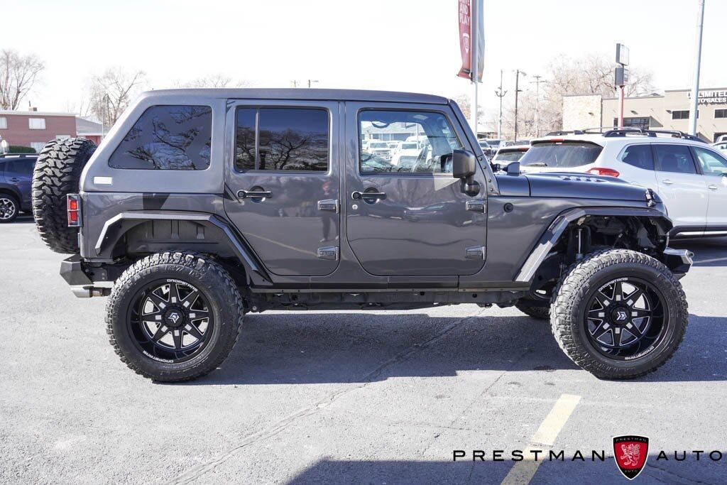 4WD! Get ready to explore every road (or off-road) around Salt Lake City in this 2017 Jeep Wrangler Unlimited Sahara! With rugged 4x4, Hardtop, lift kit, oversized tires on custom wheels, and a Max Tow Package, this Sahara is built for canyon trails, mountain passes, and desert dunes alike. Slide into premium leather seats, enjoy auto climate control, running boards for easy access, and modern tech that keeps every drive as comfortable as it is capable. At Prestman Auto, known for competitive pricing and a wide selection of quality vehicles, this Wrangler stands out as the ultimate adventure machine. Whether you're heading up Little Cottonwood or out toward Moab, this Branded Title Jeep's got the gear to get you there!