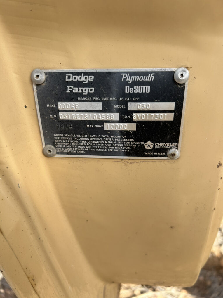 I have a great survivor fresh off the farm 1978 Dodge D30 flatbed Dually truck. It does not run and comes with a bill of sale ONLY. The doors still shut perfectly. The interior is clean almost 0 rust on the truck body great for parts or fix it up located near Roosevelt at seeing $1000.