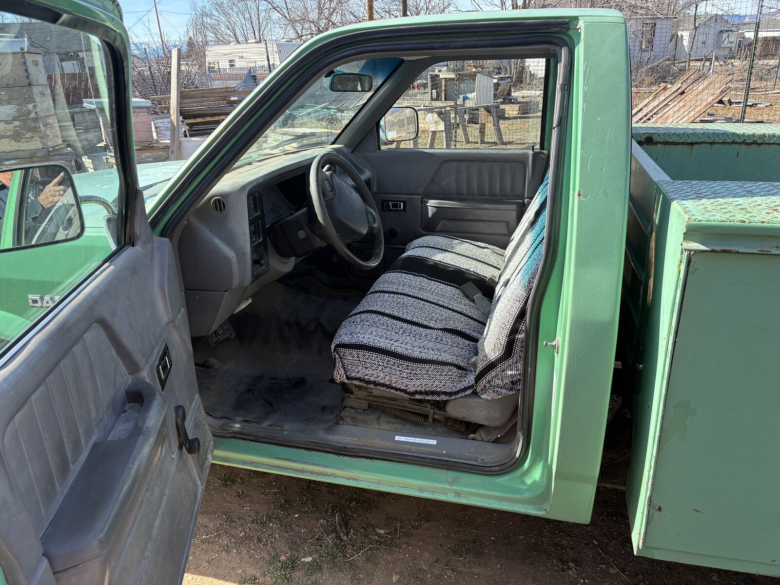 was a US forest truck bed is 8' in the utility box ,,, runs very wellit has new brakes on front back are good but we have new ones windshield is cracked but dose notobscure view