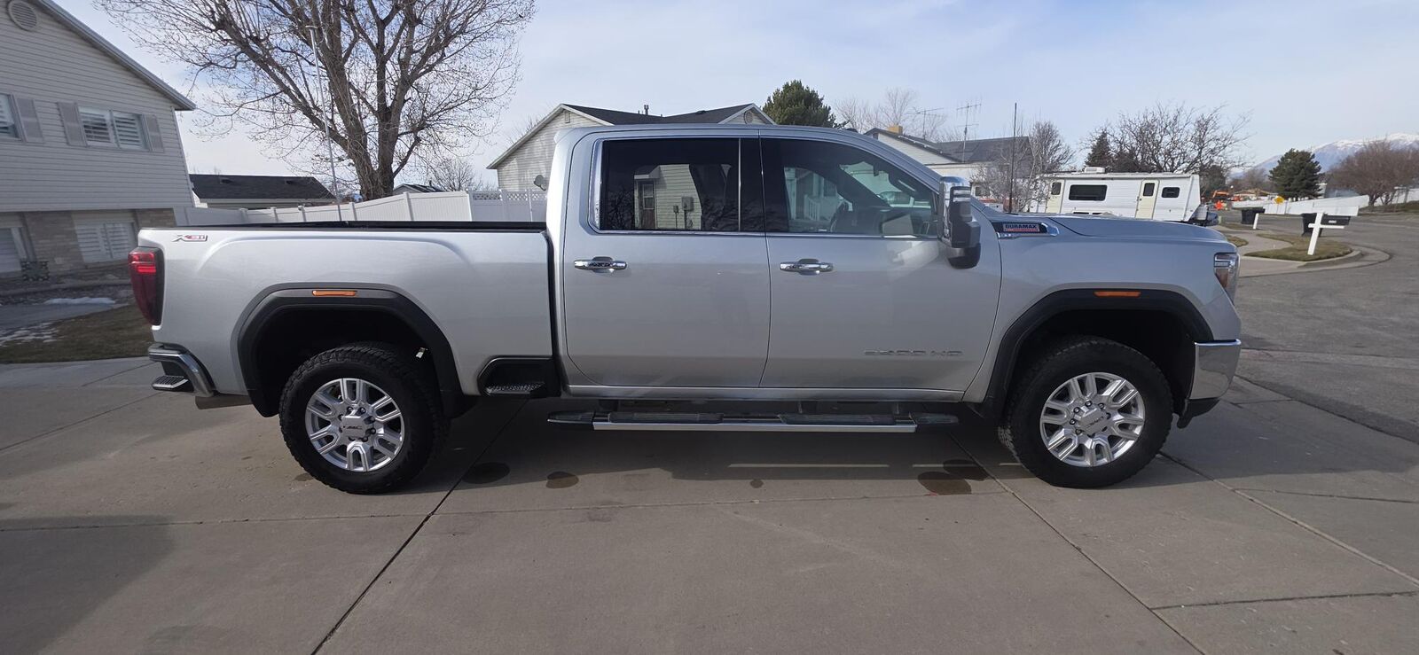 2022 GMC 3500 SLT - 6.6L DURAMAX, 10 SPEED ALLISON TRANSMISSION, 4X4, AUTO LOCKING REAR DIFF, 6 SEATER, HEATED FRONT SEATS, HEATED STEERING WHEEL, TOUCHSCREEN STEREO, BACK UP CAMERA, X31 PACKAGE, MULTI PRO TAILGATE, PUSH BUTTON START, REMOTE START, TOW PACKAGE, INTEGRATED TRAILER BRAKE CONTROLLER, EXHAUST BRAKE, TIRES HAVE GREAT TREAD, SPRAY IN BEDLINER. Android Auto, Apple Carplay, fifth wheel hitch ball in bed, 50K maintenance done which consisted of Transfer case and differentials fluid change, Brake system flushed, and Transmission drained, inspected and filled. Vehicle has all filters serviced on time.