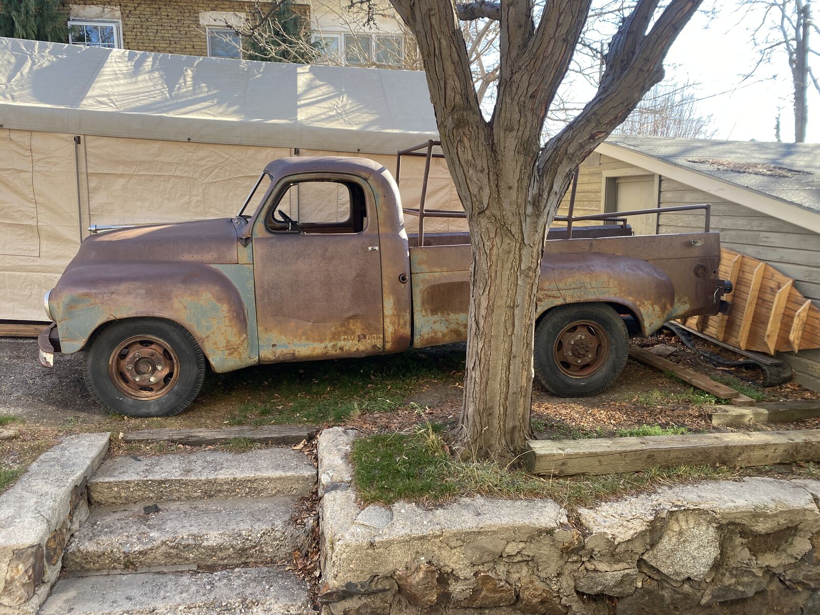 I don’t know anything about its mechanical condition.It had the patina that we were looking for on the show and we didn't need it to run. The body is rusty and dented, as can be seen in the photos. Obviously the mileage is much higher than the odometer shows. It was a farm truck so the odometer may have only turned over once. We put new tires on it just to be able to roll it on and off the film set. There is no tailgate.