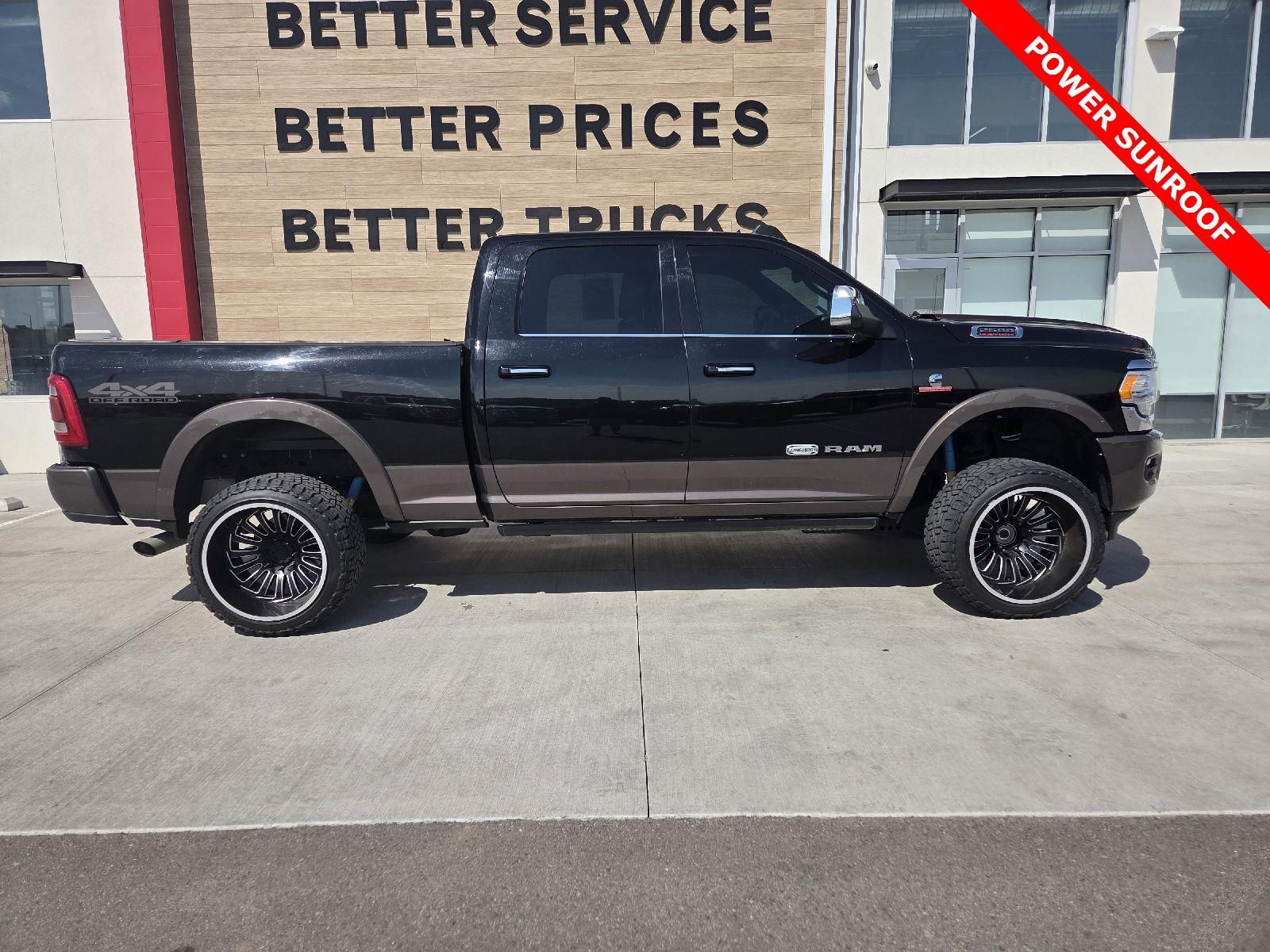 From next door in Littleton, CO and Lifted with huge wheels and fresh tires, this beautiful Ram 2500 Laramie Longhorn is loaded! This bad boy comes with leather, navigation, Longhorn Level 1 Equipment Group, power sunroof, power running boards, heated & cooled front seats, heated rear seats, 5th wheel prep, and much more!