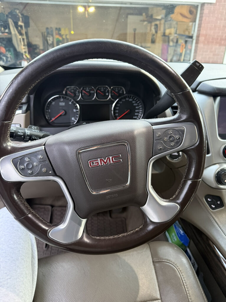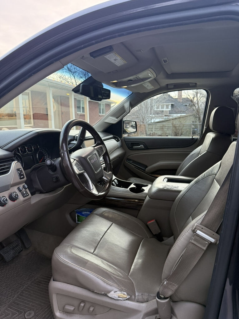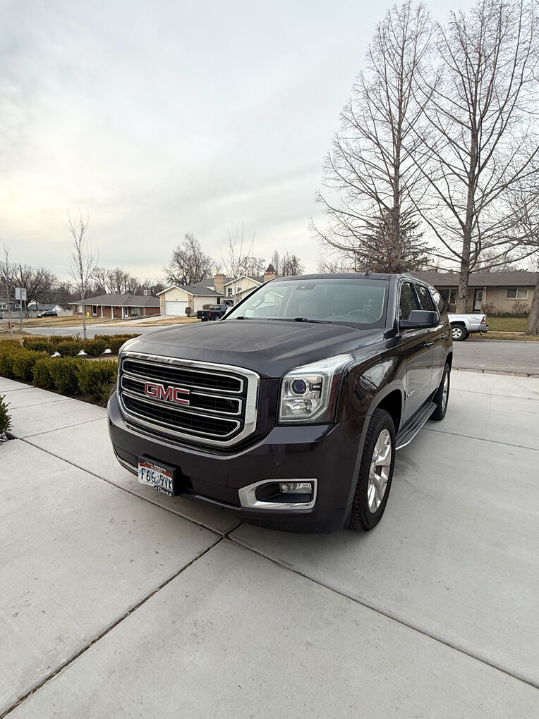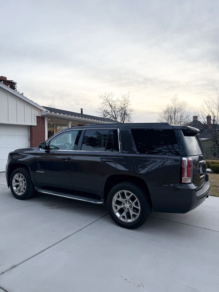 GMC Yukon SLT 2015 Sport Utility 4WD. Automatic transmission. Asking $11,500 obo. Charcoal Gray exterior with a neutral tan leather interior. 206,000 miles. Cars featured: towing package, navigation system, keyless entry, running boards, heated seats and steering wheel, cooled seats, dvd system/tv, power lift gate, and so much more. Buckets seats and third row. This has been a great car for our family! The exterior and interior are both in very good condition. Come see it! For any further questions or additional information please call or text me anytime at 801-554-8715.