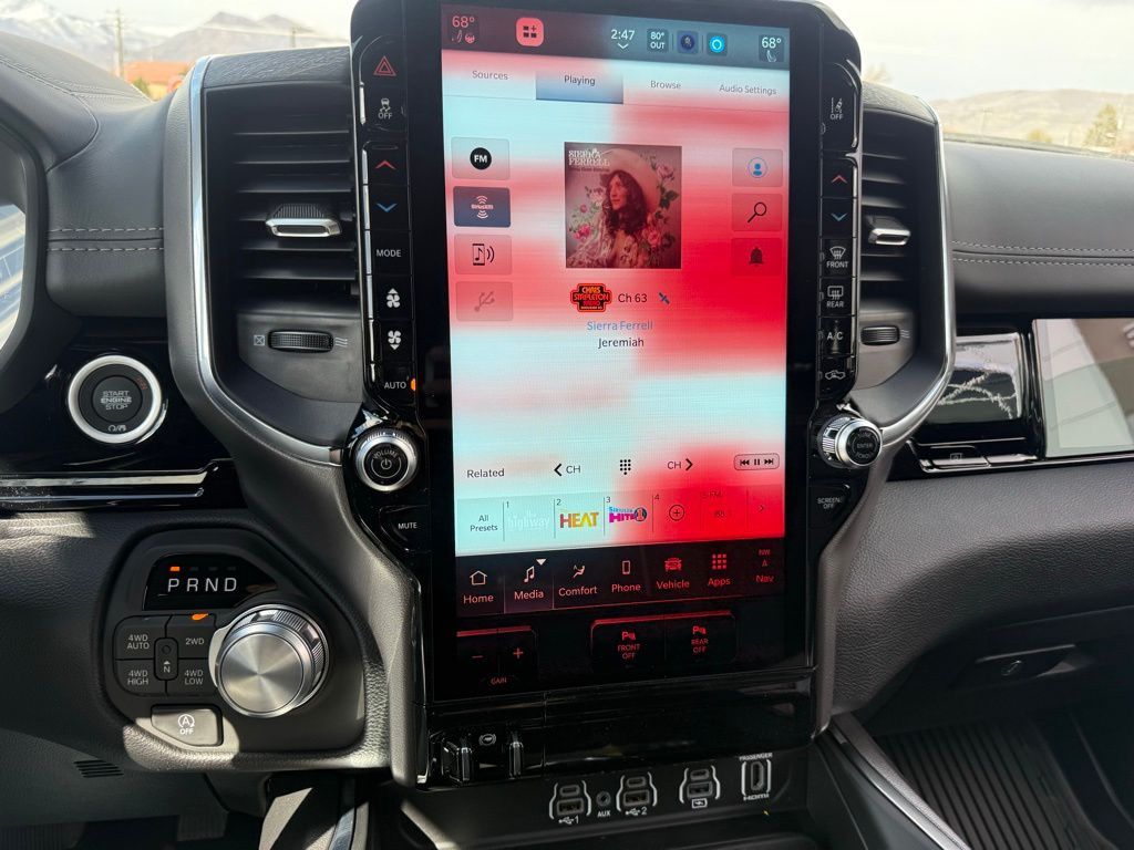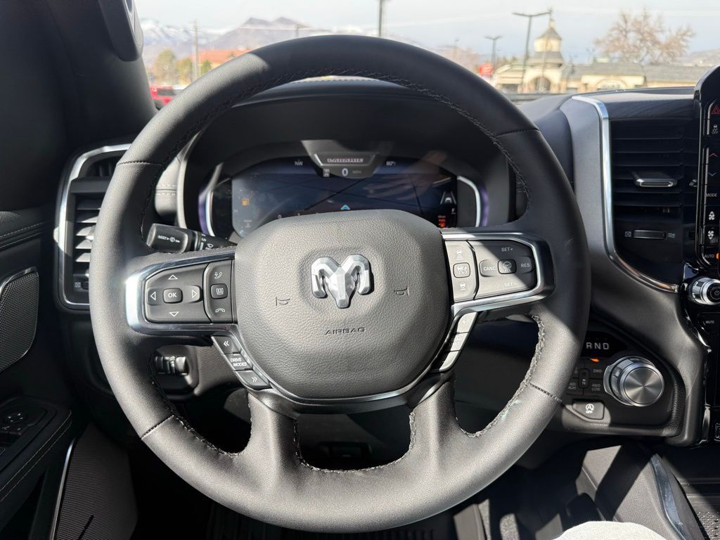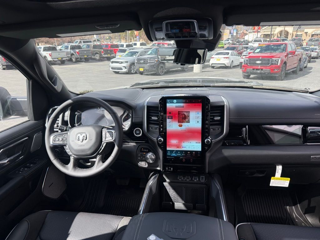 10 Speakers, 12-Way/1-Way Trailer Connector, 14.4'' Touchscreen Display, 4-Wheel Disc Brakes, 4G LTE Wi-Fi Hot Spot, ABS brakes, Accent Color Door Handles, Accent Color Premium Power Mirrors, Accent Color Tailgate Handle, Active Driving Assist System, Active Noise Control System, Adjustable pedals, Advanced Safety Group II, Air Conditioning, Alloy wheels, AM/FM radio: SiriusXM with 360L, Anti-Spin Differential Rear Axle, Apple CarPlay/Android Auto, Audio memory, Auto High-beam Headlights, Auto Power-Folding Mirrors, Auto-dimming door mirrors, Auto-Dimming Exterior Driver Mirror, Auto-dimming Rear-View mirror, Automatic temperature control, Black Exterior Truck Badging, Black Headlamp Bezels, Black Interior Accents, Black Painted Exterior Mirrors Caps, Black Tail Lamp Bezels, Body Color Front Bumper, Body Color Rear Bumper with Step Pads, Brake assist, Bumpers: chrome, Chrome Exterior Mirrors, Cluster 12'' TFT Color Display, Compass, Connected Travel and Traffic Services, Connectivity - US/Canada, Convex Wide-Angle Exterior Mirror Insert, Delay-off headlights, Dome Dual LED Reading Lamp, Driver door bin, Driver vanity mirror, Drowsy Driver Detection, Dual Exhaust with Black Tips, Dual front impact airbags, Dual front side impact airbags, Dual-Pane Panoramic Sunroof, Electronic Stability Control, Evasive Steer Assist, Exterior Mirrors Approach Lamps, Exterior Mirrors Courtesy Lamps, Exterior Mirrors with Heating Element, Exterior Mirrors with Memory, Exterior Mirrors with Supplemental Signals, Front anti-roll bar, Front Bucket Seats, Front Center Armrest w/Storage, Front dual zone A/C, Front fog lights, Front License Plate Bracket, Front Passenger Interactive Display, Front reading lights, Front wheel independent suspension, Fully automatic headlights, Garage door transmitter, GPS Navigation, Grille Surround 3 Black Texture 2 Black, Harman/Kardon 19 Speaker Premium Sound, Heads-Up Display, Heated door mirrors, Heated front seats, Heated rear seats, Heated steering wheel, Illuminated entry, Integrated Center Stack Radio, Integrated Voice Command with Bluetooth, Intersection Collision Assist System, Laramie Level 2 Equipment Group, Leather steering wheel, Leather Trimmed Bucket Seats, LED CHMSL Lamp, LED Dome/Reading Lamp, Low tire pressure warning, Manufacturer's Statement of Origin, Memory seat, MOPAR Front and Rear Rubber Floor Mats, Navigation System, Night Edition, Occupant sensing airbag, Off-Road Information Pages, Outside temperature display, Overhead airbag, Overhead console, Panic alarm, ParkView Rear Back-Up Camera, Passenger door bin, Passenger vanity mirror, Pedal memory, Pirelli Brand Tires, Power Deployable Running Boards, Power door mirrors, Power driver seat, Power passenger seat, Power steering, Power Tailgate, Power windows, Protection Group, Proximity Approach/Departure Lamps, Quick Order Package 27H Laramie, Radio data system, Radio: Uconnect 5 Nav with 14.4'' Display, Radio: Uconnect 5 Navigation with 12.0'' Display, Rain Sensitive Windshield Wipers, RAM Grille Badge - Black, RAM Grille Badge - Chrome, Rear anti-roll bar, Rear reading lights, Rear seat center armrest, Rear step bumper, Remote keyless entry, Security system, SiriusXM Radio Service, SiriusXM with 360L, Speed control, Split folding rear seat, Sport Performance Hood, Steering wheel mounted audio controls, Surround View Camera System, Tachometer, Technology Group, Telescoping steering wheel, Tilt steering wheel, Tow Hooks, Traction control, Traffic Sign Recognition, Trailer Brake Control, Trip computer, Turn signal indicator mirrors, USB Host Flip, Variably intermittent wipers, Ventilated front seats, Voltmeter, Wheels: 20'' x 9'' Premium Paint/Polish, Wheels: 22'' x 9'' Forged Aluminum. Price includes: $1000 - 2026 National Bonus Cash . Exp. 03/31/2026 $3500 - 2026 National Retail Bonus Cash . Exp. 03/31/2026