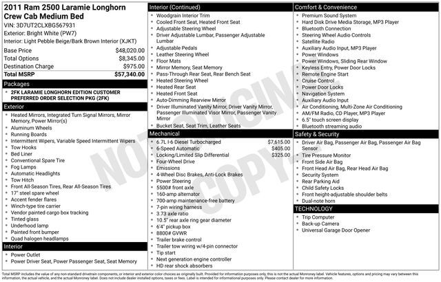 2011 Ram 2500 Laramie Longhorn Bright White Clearcoat 4WD 6-Speed Automatic Cummins 6.7L I6 Turbodiesel