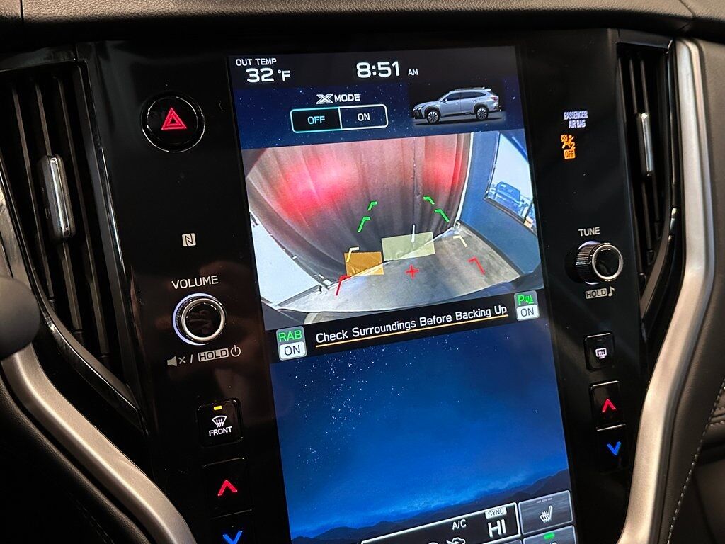 12 Speakers, 4-Wheel Disc Brakes, ABS brakes, Air Conditioning, Auto High-beam Headlights, Automatic temperature control, Backup Camera, Brake assist, Dual front impact airbags, Dual front side impact airbags, Electronic Stability Control, Four wheel independent suspension, Front anti-roll bar, Front dual zone A/C, Front fog lights, Garage door transmitter: HomeLink, Heated door mirrors, Heated Front Bucket Seats, Heated rear seats, Heated steering wheel, HVAC memory, Knee airbag, Memory seat, Occupant sensing airbag, Overhead airbag, Panic alarm, Power driver seat, Power Liftgate, Power moonroof, Power steering, Power windows, Radio: Subaru STARLINK 11.6'' Multimedia Nav System, Rear anti-roll bar, Rear window defroster, Remote keyless entry, Security system, Speed control, Speed-sensing steering, Steering wheel mounted audio controls, TPMS Sensors, Traction control, Wheels: 18'' x 7J Black Aluminum-Alloy.