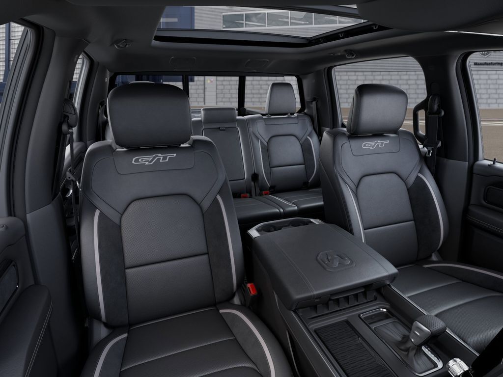 Bed Utility Group (Exterior 115V AC Outlet, MOPAR 4 Adjustable Cargo Tie-Down Hooks, and MOPAR Spray in Bedliner), G/T Package (4 Way Front Headrests, Bucket Seats, Driver Seat Memory, Floor Console, Front Seat Back Map Pockets, G/T Decal, G/T Exhaust, GT Interior Theme, Heated Front Seats, Heated Second Row Seats, Heated Steering Wheel, Leather Wrapped Shift Knob, Leather-Wrapped Steering Wheel, Leather/Vinyl Bucket Seats, MOPAR Bright Pedal Kit, Performance Pages, Power 4-Way Driver Lumbar Adjust, Power 4-Way Passenger Lumbar Adjust, Power Adjust 8-Way Driver Seat, Power Adjust 8-Way Front Passenger Seat, Rear 60/40 Folding Split Recline Seat, Steering Wheel Mounted Shift Control, Under Seat Lighting, and Ventilated Front Seats), Quick Order Package 21W Rebel, Rebel Level 2 Equipment Group (115V Auxiliary Rear Power Outlet, 14.4'' Touchscreen Display, 2-Door Passive Entry, Front Door Locks, 4G LTE Wi-Fi Hot Spot, Accent Color Door Handles, Accent Color Premium Power Mirrors, Accent Color Tailgate Handle, Apple CarPlay, Auto Power-Folding Mirrors, Auto-Dimming Exterior Driver Mirror, Black Painted Exterior Mirrors Caps, Connected Travel and Traffic Services, Connectivity - US/Canada, Convex Wide-Angle Exterior Mirror Insert, Disassociated Touchscreen Display, Dual Wireless Charging Pad, Exterior Mirrors Approach Lamps, Exterior Mirrors Courtesy Lamps, Exterior Mirrors with Heating Element, Exterior Mirrors with Memory, Exterior Mirrors with Supplemental Signals, Front Passenger Interactive Display, Global Telematics Box Module, Google Android Auto, GPS Antenna Input, GPS Navigation, Harman/Kardon 19 Speaker Premium Sound, HD Radio, Integrated Center Stack Radio, Integrated Voice Command with Bluetooth, Media Hub with 2 Charge Only USBs, Off-Road Information Pages, Power 2-Way Passenger Lumbar Adjust, Power Adjustable Pedals with Memory, Power Tailgate, Proximity Approach/Departure Lamps, Radio: Uconnect 5 Nav with 14.4'' Display, Radio/Driver Seat/Mirrors/Pedals Memory, Rain Sensitive Windshield Wipers, Rear Window Defroster, Security Alarm, SiriusXM Radio Service, SiriusXM with 360L, Smartphone as a Key Capable, and USB Host Flip), Technology Group (12-Way/1-Way Trailer Connector, Heads-Up Display, and LED CHMSL Lamp), 10 Speakers, 3.92 Rear Axle Ratio, 33 Gallon Fuel Tank, 4-Wheel Disc Brakes, ABS brakes, Active Noise Control System, Air Conditioning, Alloy wheels, AM/FM radio: SiriusXM with 360L, Apple CarPlay/Android Auto, Auto High-beam Headlights, Auto-dimming Rear-View mirror, Automatic temperature control, Black Exterior Mirrors, Brake assist, Cloth/Vinyl Bucket Seats, Compass, Delay-off headlights, Dome Dual LED Reading Lamp, Driver door bin, Driver vanity mirror, Dual front impact airbags, Dual front side impact airbags, Dual-Pane Panoramic Sunroof, Electronic Stability Control, Front anti-roll bar, Front Bucket Seats, Front Center Armrest w/Storage, Front dual zone A/C, Front fog lights, Front reading lights, Front wheel independent suspension, Full Length Upgraded Floor Console, Fully automatic headlights, Garage door transmitter, Heated door mirrors, Heated front seats, Heated steering wheel, Illuminated entry, Leather steering wheel, Low tire pressure warning, Manual Folding Exterior Mirrors, Mopar Black Tubular Side Steps, Navigation System, Occupant sensing airbag, Outside temperature display, Overhead airbag, Ove Price may include: $1000 - 2026 National Bonus Cash . Exp. 03/02/2026 $3500 - 2026 National Retail Consumer Cash . E