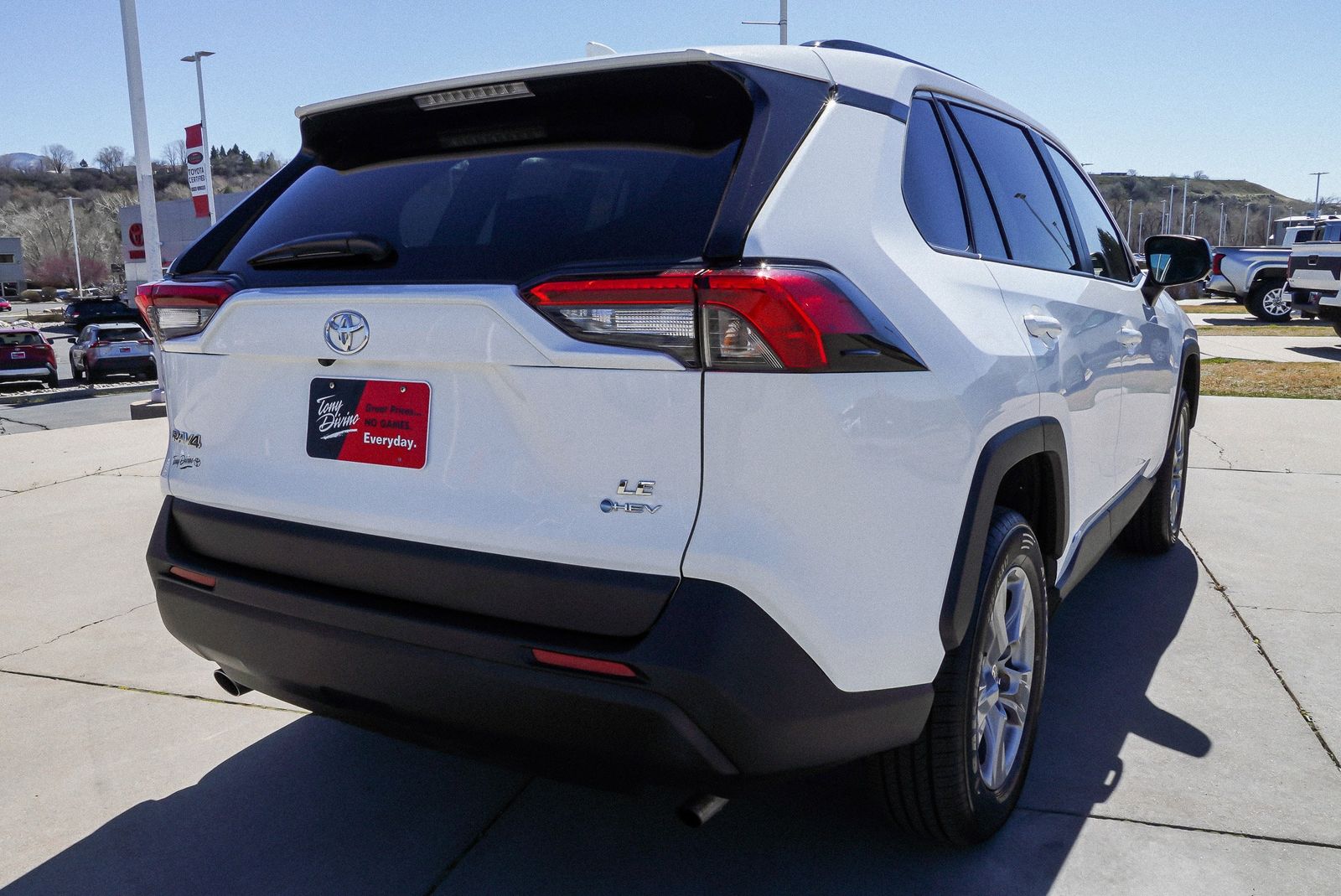 2025 Toyota RAV4 Hybrid LE 4D Sport Utility 2.5L 4-Cylinder AWD eCVT 2.5L 4-Cylinder. Ice Cap Clean CARFAX. CARFAX One-Owner. Certified. Toyota Gold Certified Details: * Roadside Assistance for 7 Year / 100,000 Mile. Standard New-Car Financing Rates Available. Warranty honored at over 1,400 Toyota dealers in the continental U.S. Canada. Trade-ins accepted. Trouble-free handling of your transaction, including DMV paperwork * Vehicle History * Transferable Warranty * Roadside Assistance * 160 Point Inspection * Powertrain Limited Warranty: 84 Month/100,000 Mile (whichever comes first) from TCUV purchase date * Limited Warranty: 12 Month/12,000 Mile Limited Comprehensive Warranty: 12 Month/12,000 Mile (whichever comes first) from certified purchase date * Warranty Deductible: $0*All payments are estimates and for illustrative purposes only. Actual terms, pricing, and monthly payments may vary based on vehicle selection, credit approval, lender terms, and other factors. Tax, title, license, and fees are additional. $349 documentation fee included. Vehicle availability, pricing, and specifications are subject to change without notice. Dealer is not responsible for typographical or data errors. Please verify all information with Tony Divino Toyota.