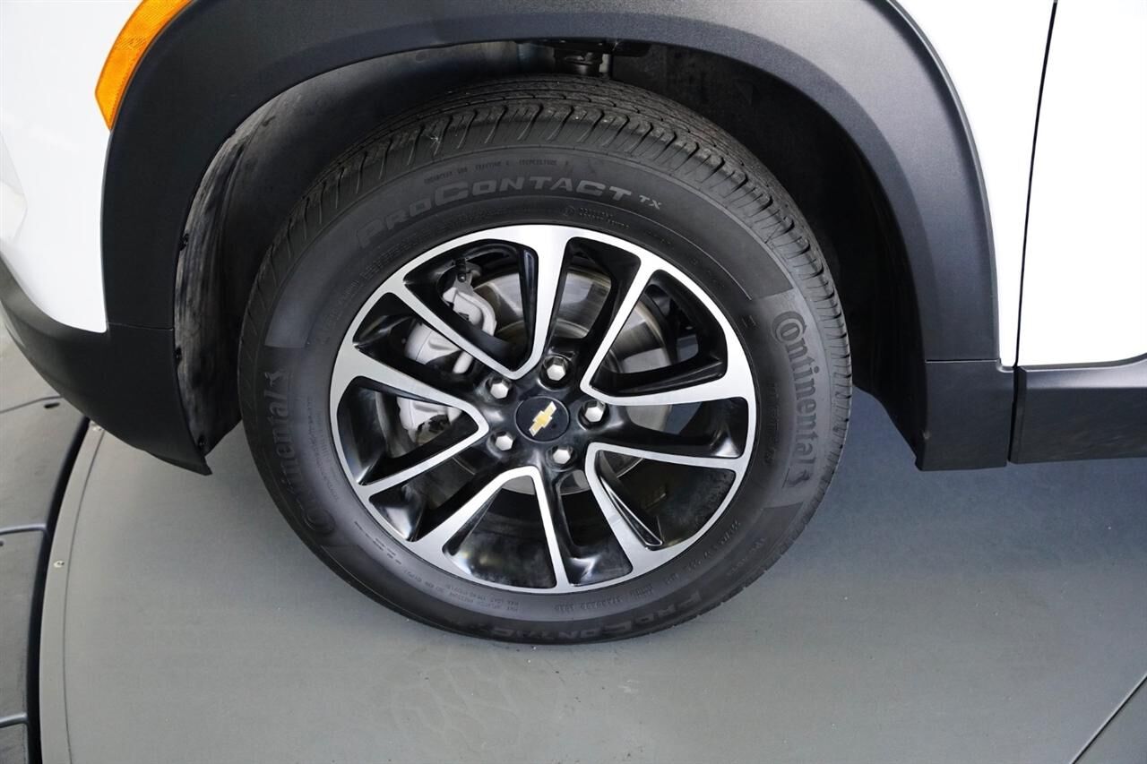 Engine- ECOTEC 1.2L I3 Turbo DOHC DI with Variable Valve Timing (VVT)- E85-compatible (137 hp [102 kW] @ 5000 rpm- 162 lb-ft torque [219 N-m] @ 2500 rpm) (FWD models.),Axle- 5.45 final drive ratio,GVWR- 4189 lbs. (1900 kg) (FWD models with (LBP) 1.2L Turbo engine.),Engine air filtration monitor,Keyless Start- push-button,Engine control- stop-start system,Engine control- stop-start system override,Driver shift control- tap-up/tap-down on shifter,Drivetrain- front-wheel drive,Suspension- Ride and Handling,Steering- power- non-variable ratio- electric,Brakes- 4-wheel antilock- 4-wheel disc,Brakes- front and rear- electric,Brake- electronic parking,Mechanical jack with tools,Wheel- spare- 16"" (40.6 cm) steel,Tire- compact spare 16"" (40.3 cm),Side rails- roof-mounted (Silver-painted.),Fascia- front and rear lower insert- silver-painted,Shutters- front upper grille- active,Moldings- Anthracite lower bodyside,Headlamps- LED,Headlamp control- automatic on and off,Tail lamps- halogen,Lamp- LED center high-mounted stop/brake lamp,Mirrors- outside heated power-adjustable- manual-folding (Body-color mirror caps.),Windshield- solar absorbing,Glass- deep-tinted- rear windows and liftgate,Wiper- rear intermittent,Ornamentation- Trailblazer lettering,Ornamentation- LT badge,Liftgate- manual,Door handles- body-color,Audio system feature- 6-speaker system- enhanced performance (FWD models.),Wi-Fi Hotspot capable (Terms and limitations apply. See onstar.com or dealer for details.),Seat adjuster- driver 6-way manual,Seat adjuster- front passenger 4-way manual,Seatback- front passenger flat-folding,Seat- rear 40/60 split-bench- folding (60 percent on passenger side),Head restraints- front- 2-way adjustable,Knee bolster- driver and front passenger,USB ports- 2 one type-A and one type-C- located within the instrument panel,Console- floor- with armrest,Steering wheel- polyurethane,Steering column- tilt and telescopic,Driver Information Center 8"" diagonal display- fully digital color- reconfigurable,Vehicle health management provides advanced warning of vehicle issues,Compass display,Windows- power with driver express-up/down and front passenger and rear express-down,Key system- 2 key fobs,Remote Start,Air filter- cabin,Heating ducts- under front seats- rear vent,Mirror- inside rearview manual day/night,Assist handle- driver,Assist handle- front passenger,Assist handle- rear outboard,Lighting- interior- overhead courtesy and dual reading lamp,Lighting- interior- roof- rear courtesy,Lighting- rear cargo compartment lamp,Shift knob- satin silver and chrome,Map pocket- driver seatback,Map pocket- front passenger seatback- lateral mesh,Daytime Running Lamps- signature LED,Airbags- driver and front passenger frontal and knee- seat-mounted side-impact and roof rail-mounted head-curtain for all outboard seating positions and Passenger Sensing System for front passenger (Always use seat belts and child restraints. Children are safer when properly secured in a rear seat in the appropriate child restraint. See the Owner's Manual for more information.),HD Rear Vision Camera,Following Distance Indicator,Seat belts- 3-point- driver and front passenger- height-adjustable includes pretensioners and front passenger load limiter,Seat belts- 3-point rear- all seating positions,Buckle to Drive prevents vehicle from being shifted out of Park until driver seat belt is fastened- programmable,Door locks- rear child security,LATCH system (Lower Anchors and Tethers for CHildren) for child restraint seats- second row- 2 lower anchors for outboard seating positions only- 3 top tether anchors for all 3 seating positions,Teen Driver a configurable feature that lets you activate customizable vehicle settings associated with a key fob- to help encourage safe driving behavior. It can limit certain available vehicle features- and it prevents certain safety systems from being turned off. An in-vehicle report card gives you information on driving habits and helps you to continue to coach your new driver,Tire Fill Alert (Does not monitor spare tire.)