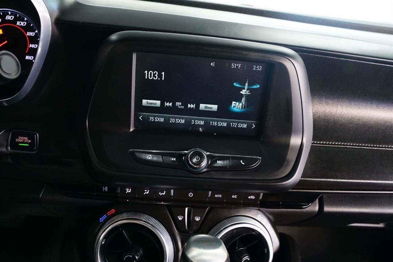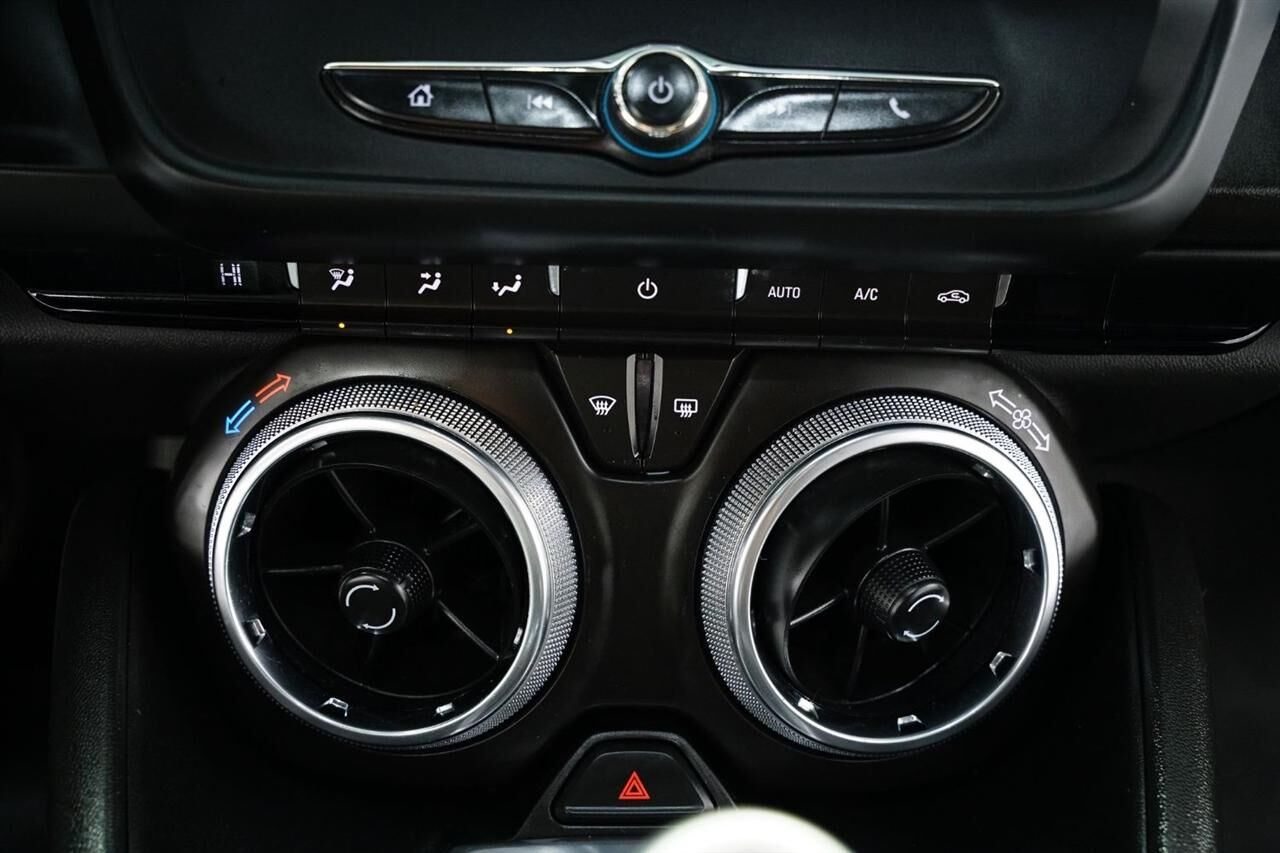 Rear axle- 3.27 ratio (Included and only available with (LTG) 2.0L Turbo engine.),Driver Selector Mode up to 4 modes available for various driving conditions - Snow/Ice- Tour- Sport and Track (SS and ZL1 models only),Battery rundown protection,Rear wheel drive,Suspension- Sport,Steering- power- variable ratio- electric,Fueling system- capless,Exhaust- dual-outlet stainless-steel with bright tips,Mirrors- outside power-adjustable- body-color,Wipers- front variable-speed- intermittent with washers,Audio system feature- 6-speaker system,Antenna- integral rear window,Antenna- OnStar and SiriusXM Satellite Radio- fin-type (Black- except when (WRS) RS Package is ordered and changes to body-color.),Seat adjuster- driver- 8-way power,Seat adjuster- front passenger- 6-way power,Seat- rear- folding,Dead pedal- driver,Steering wheel- leather-wrapped- flat-bottom,Steering column- manual rake and telescopic,Speedometer- miles/kilometers,Driver Information Center- color display,Compass display,Air conditioning- single-zone automatic climate control,Power outlet- 1 located on center console,Windows- power with driver and passenger Express-Down/Up,Cruise control- electronic with set and resume speed- steering wheel mounted,Mirror- inside rearview manual day/night- frameless,Visors- driver and front passenger vanity mirrors- covered- non-illuminated,Trunk release- power,Defogger- rear-window- electric,Glovebox- lockable,Cup holders- 2 front,Lighting- front reading lamps,Shift knob- leather-wrapped,StabiliTrak- stability control system with brake assist includes traction control,Daytime Running Lamps- LED,Air bags- dual-stage frontal- thorax side-impact and knee- driver and front passenger- and head curtain side-impact includes Passenger Sensing System (Always use safety belts and child restraints. Children are safer when properly secured in a rear seat in the appropriate child restraint. See the Owner's Manual for more information.),Teen Driver mode a configurable feature that lets you activate customizable vehicle settings associated with a key fob- to encourage safe driving behavior. It can limit certain vehicle features- and it prevents certain safety systems from being turned off. An in-vehicle report gives you information on your teen's driving habits and helps you to continue to coach your new driver,Rear Vision Camera,Safety belts- 3-point- all seating positions includes front seat driver and front passenger safety belt pretensioners,LATCH system (Lower Anchors and Top tethers for CHildren)- for child safety seats,Trunk emergency release handle