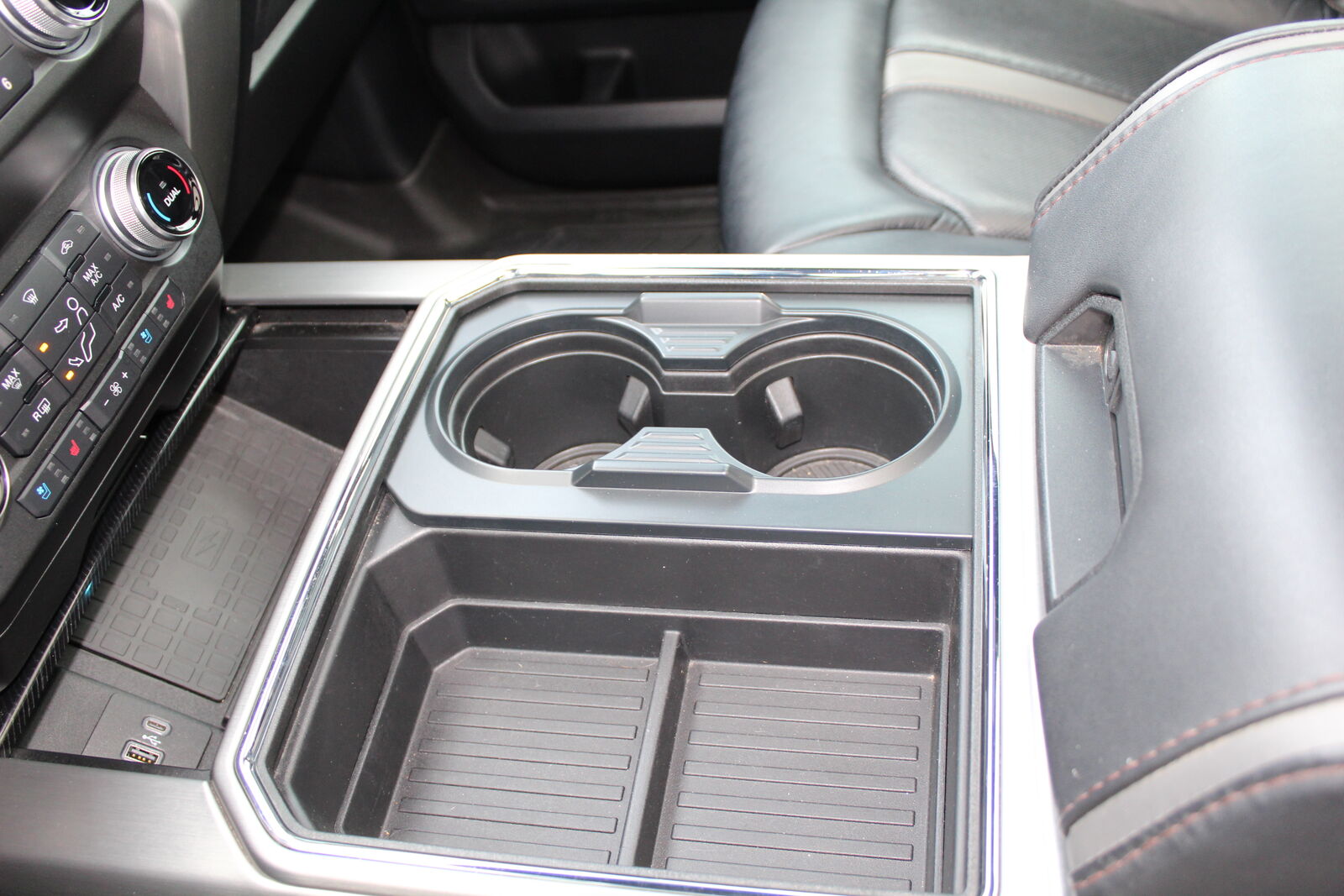 The Platinum trim delivers a fully loaded luxury experience. Inside, you’ll find premium Black leather seating with heated and ventilated front seats, multi-contour front seats with active massage functionality, a leather-wrapped heated steering wheel, dual-zone automatic climate control, adjustable pedals with memory, ambient lighting, and an 8-inch productivity screen. The twin-panel power moonroof enhances the cabin’s open feel, while adaptive steering improves handling and maneuverability at all speeds. The massage seats elevate long-distance comfort, making extended drives or towing trips noticeably more enjoyable.