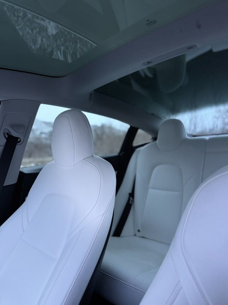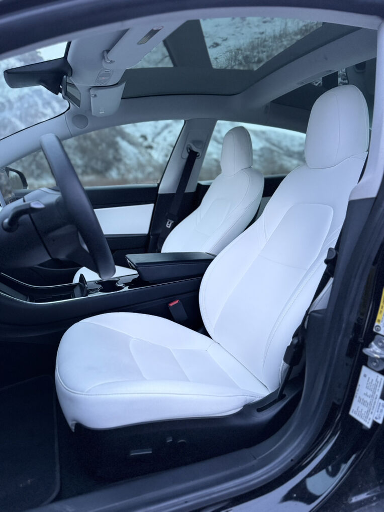 This car is the perfect daily driver. Instant torque, no gas, minimal maintenance, and extremely fun to drive. Interior is clean and modern with the white seats that really set it apart from the typical black interior cars.