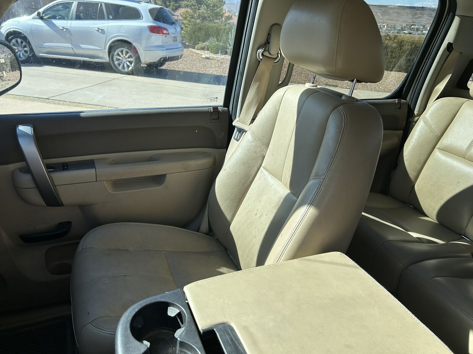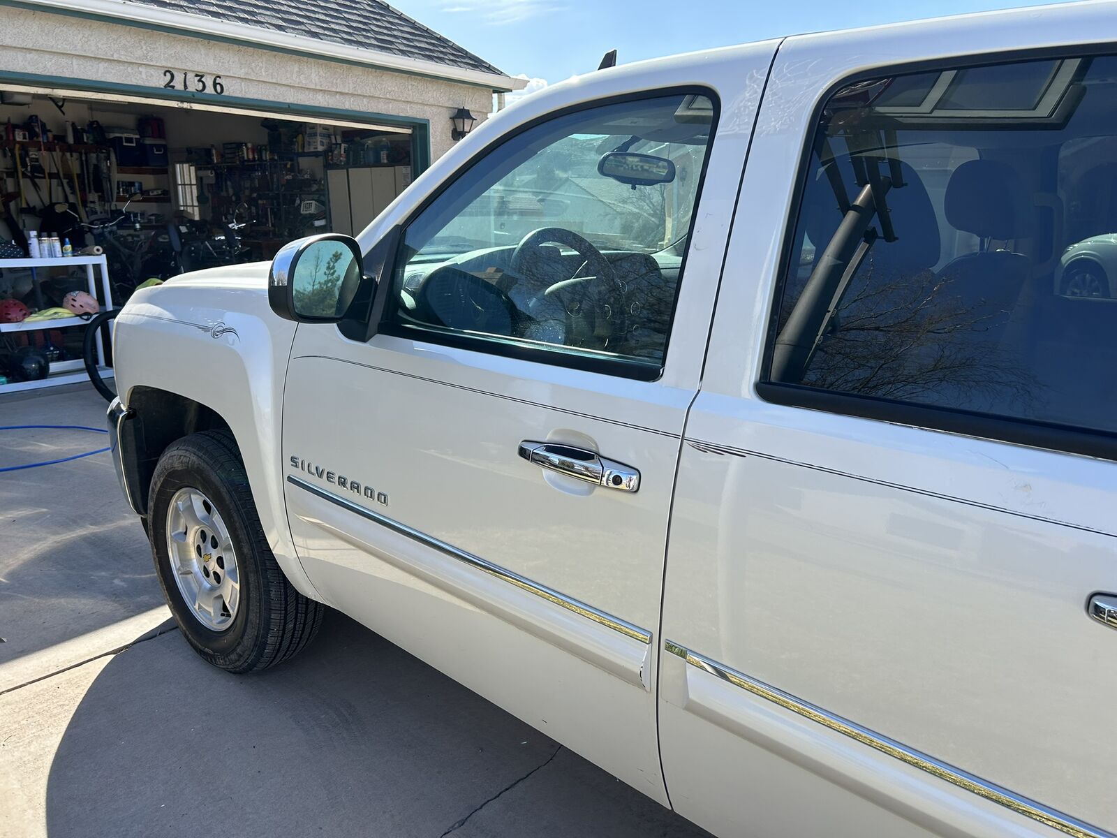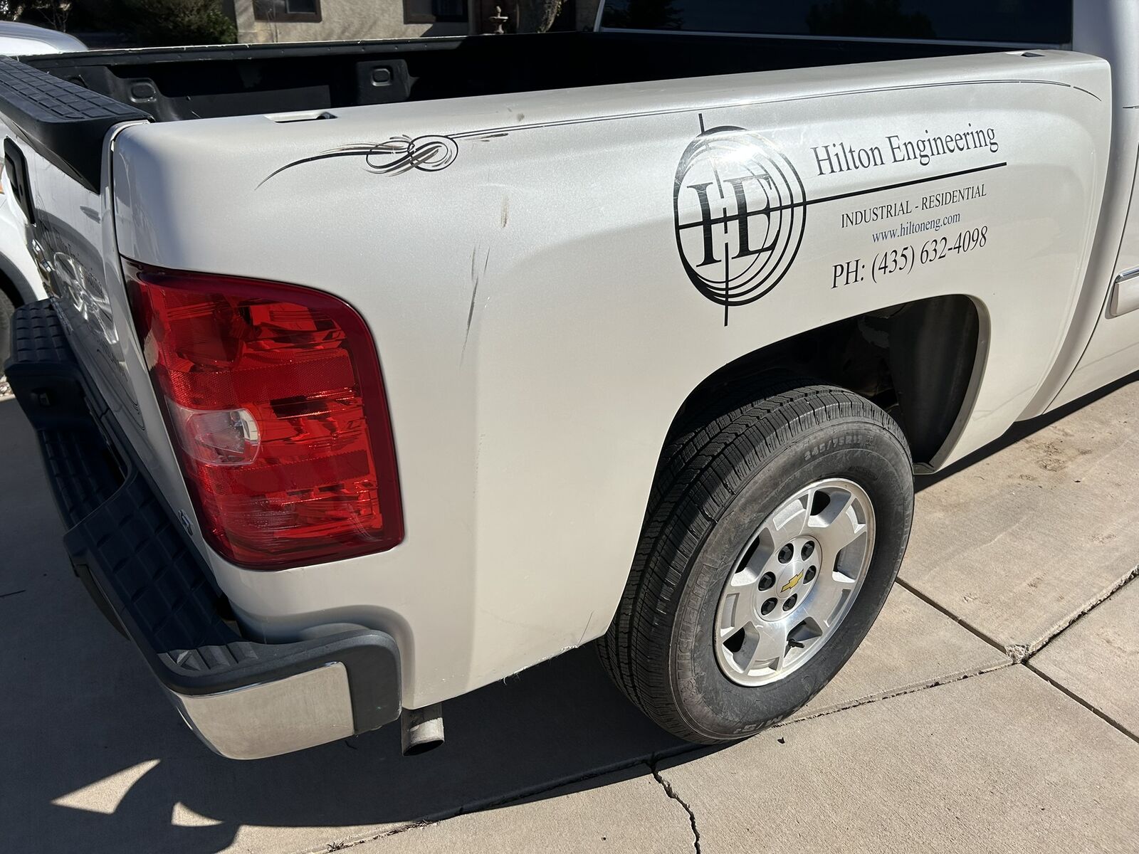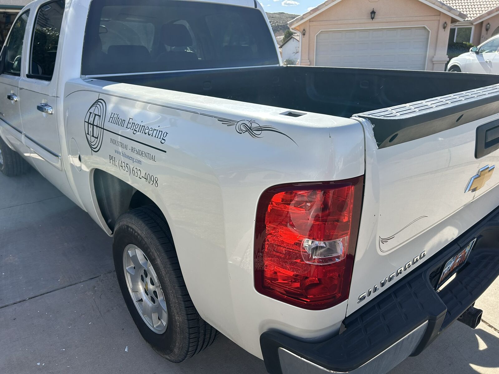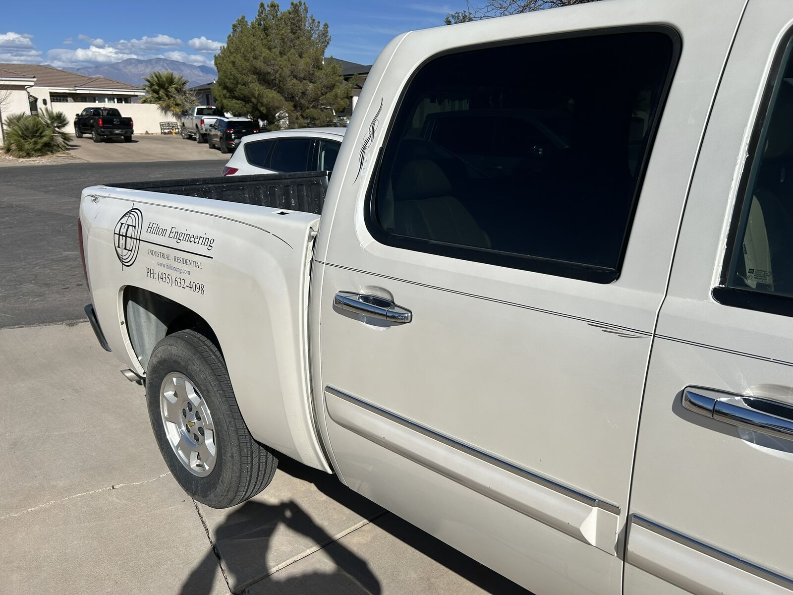One time owner, 2WD, 5.3 L V8, leather seats, All Star edition, many extras, heavy duty cooling, locking rear differential and six speed transmission, power everything, White diamond paint job is average, Paint touchup done. 4 matching tires Michelin excellent condition, extra battery part of the deal. Need to sell, just bought a newer used truck. Business Logos are easily removed.