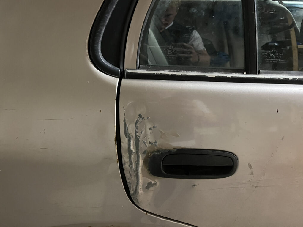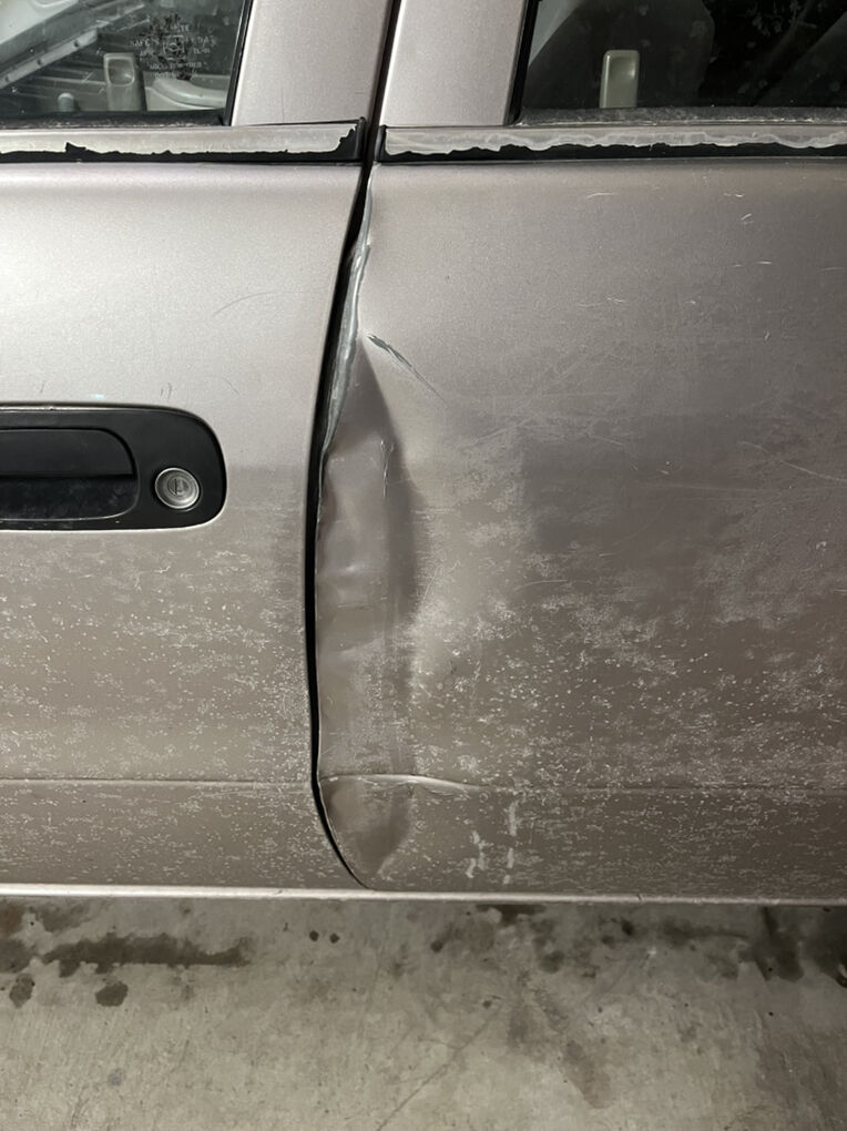 It also has a lot of dents and part of the door handle on the passenger side is broken off, but all doors open and close fine.