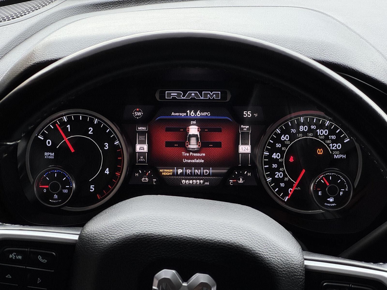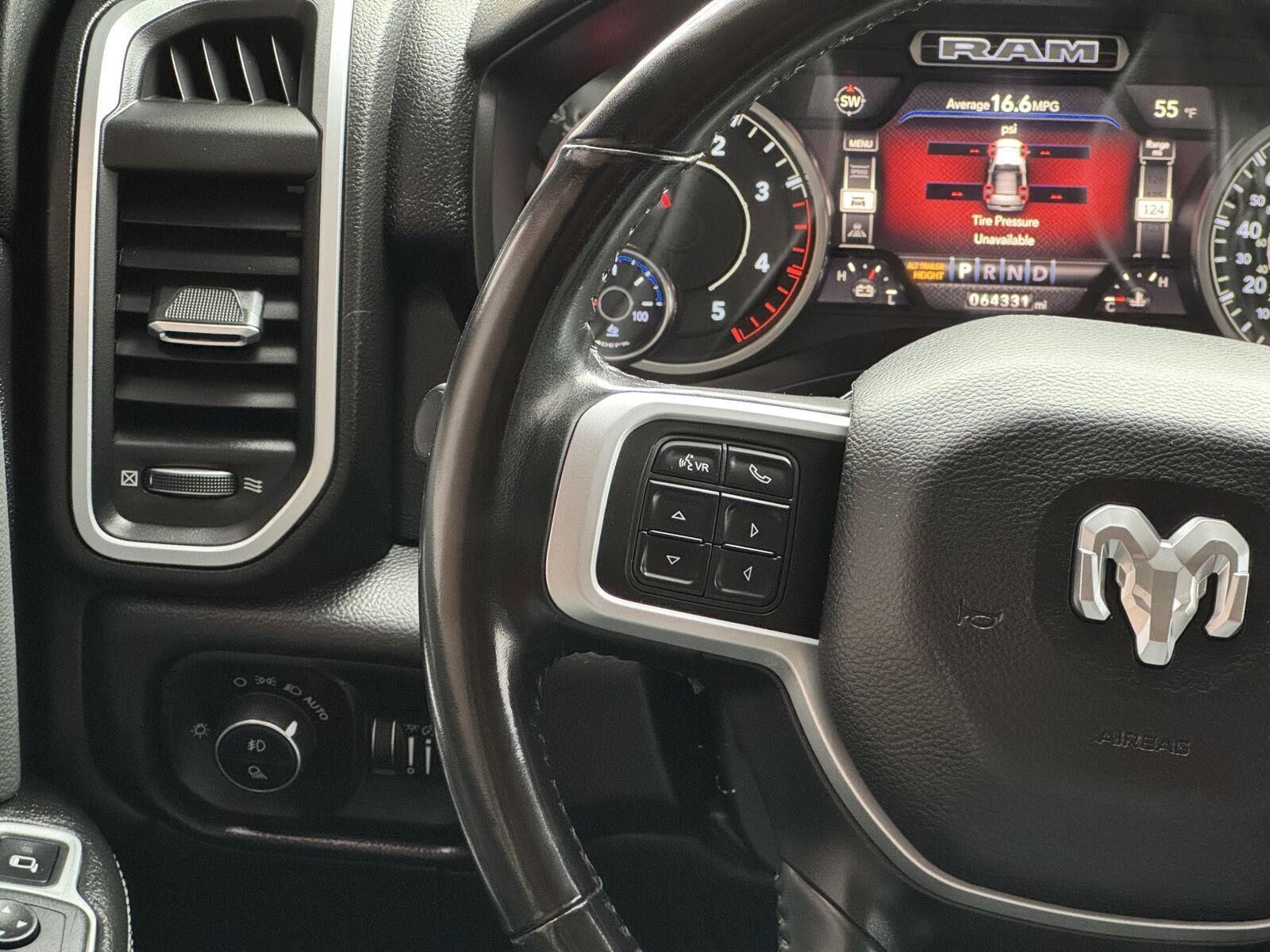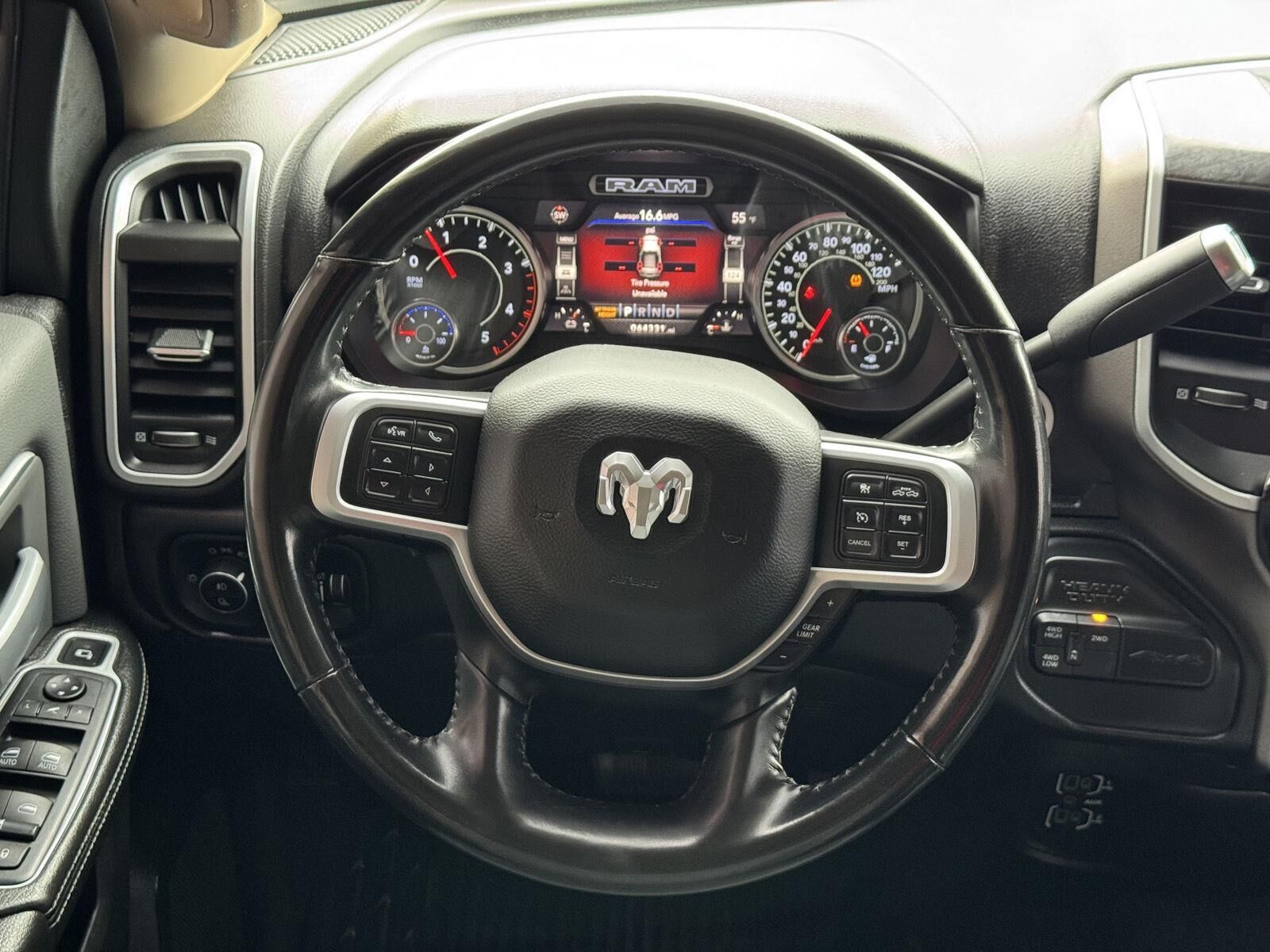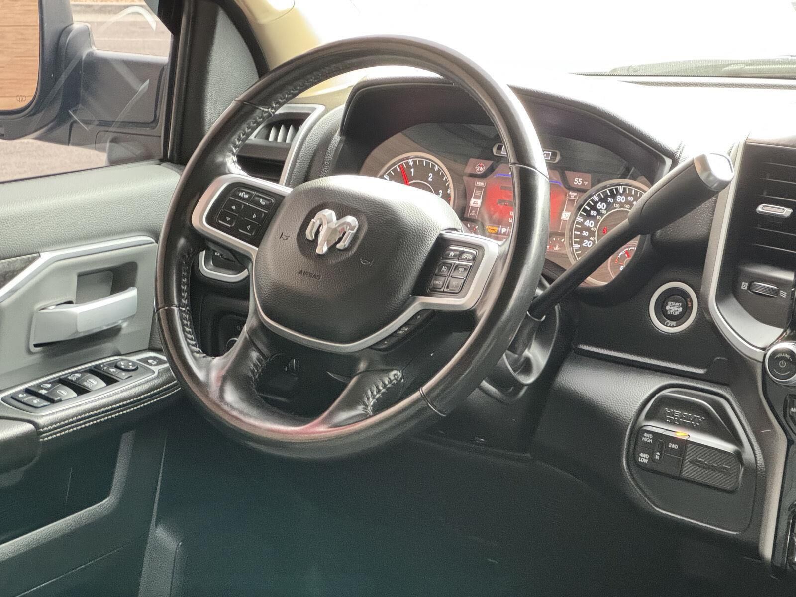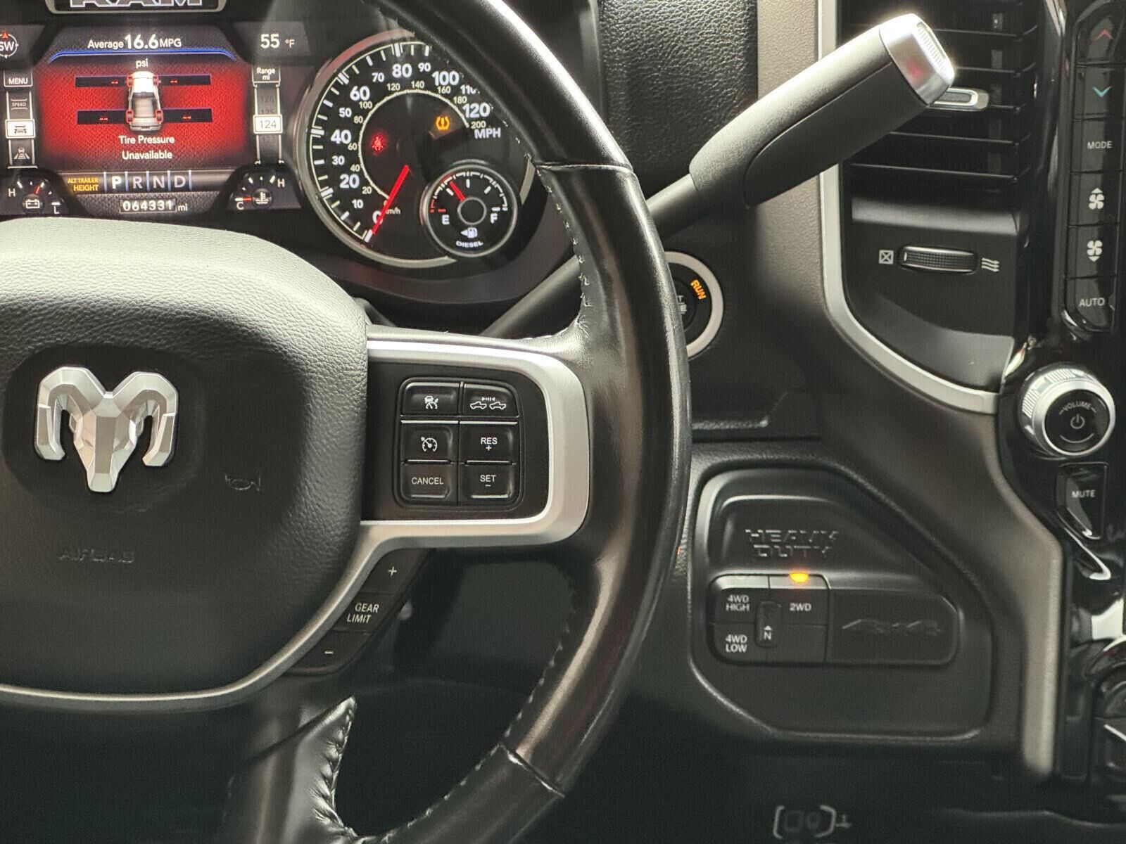 Quick Order Package 2HZ Big HornQuick Order Package 2ZZ Big HornCold Weather Group ($145 value)Engine Block HeaterWinter Front Grille CoverSafety Group ($1,995 value)Rear View Auto Dim MirrorCluster 7.0" TFT Color DisplayRain Sensitive Windshield WipersLane Keep AssistAuto High Beam Headlamp ControlFull Speed Forward Collision Warning PlusAdaptive Cruise Control with StopSteering Wheel Mounted Audio ControlsLeather Wrapped Steering WheelAdaptive Steering SystemBlind Spot and Cross Path DetectionTech Package ($2,995 value)Premium Power Black Tow Mirrors with Convex SpotterPower Folding MirrorsPower Adjustable Convex Aux MirrorsFront LED Fog LampsCenter Stop Lamp with Cargo View CameraMirror-Mounted Aux Reverse LampsLED Reflector Headlamps9 Alpine Speakers with Subwoofer4G LTE Wi-Fi Hot SpotUconnect Radio 12.0 with NavigationSurround View Camera SystemTrailer Reverse GuidanceLevel 2 Equipment Group ($4,890 value)2nd Row in Floor Storage BinsHeated Front SeatsFoam Bottle Insert (door Trim Panel)Rear Window DefrosterRear Power Sliding WindowSun Visors with Illuminated Vanity MirrorsRear View Auto Dim MirrorAir Conditioning ATC with Dual Zone ControlCluster 7.0" TFT Color Display115V Auxiliary Rear Power OutletLocking Lower Glove BoxDual Glove Boxes115-Volt Auxiliary Front Power OutletFootwell Courtesy LampGlove Box LampRear Dome with On/off Switch LampFront Fog LampsSecurity AlarmDampened TailgateHeated Steering WheelSteering Wheel Mounted Audio ControlsDual Remote USB PortLeather Wrapped Steering WheelUconnect 4 Radio with 8.4" Display18" X 8.0" Polished Aluminum WheelsParkSense Front/rear Park Assist SystemBlind Spot and Cross Path DetectionPower Adjustable PedalsRemote Start SystemUniversal Garage Door OpenerProtection Group ($95 value)Tow HooksTransfer Case Skid Plate ShieldPremium Lighting Group ($795 value)Front LED Fog LampsLED Reflector Headlamps