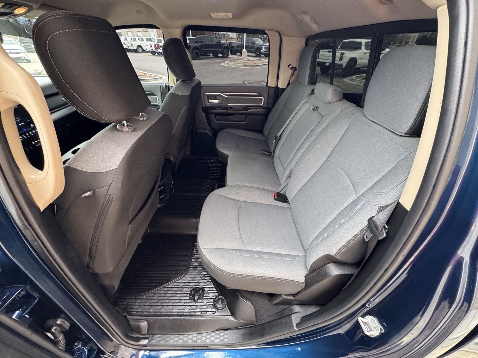 ENGINE: 6.7L I6 CUMMINS TURBO DIESEL, TRANSMISSION: 6-SPEED AUTOMATIC (68RFE), QUICK ORDER PACKAGE 2HZ BIG HORN, 3.73 AXLE RATIO, WHEELS: 18" X 8.0" POLISHED ALUMINUM, TIRES: LT275/70R18E BSW AS, DIESEL GRAY/BLACK, PREMIUM CLOTH 40/20/40 BENCH SEAT, COLD WEATHER GROUP, PREMIUM LIGHTING GROUP, PROTECTION GROUP, SAFETY GROUP, TECH PACKAGE, LEVEL 2 EQUIPMENT GROUP, 220 AMP ALTERNATOR, ENGINE BLOCK HEATER, AUTO LEVEL REAR AIR SUSPENSION, REAR WINDOW DEFROSTER, REAR WHEELHOUSE LINERS, CTR STOP LAMP W/CARGO VIEW CAMERA, LED BED LIGHTING, RADIO: UCONNECT 12.0 W/NAVIGATION, 9 ALPINE SPEAKERS W/SUBWOOFER, REMOTE START SYSTEM, FRONT & REAR RUBBER FLOOR MATS, BLIND SPOT & CROSS PATH DETECTION, PARKSENSE FRONT/REAR PARK ASSIST SYSTEM, MANUFACTURER'S STATEMENT OF ORIGIN, 115V AUXILIARY FRONT POWER OUTLET, SECURITY ALARM