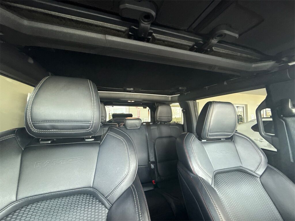 10 Speakers w/Subwoofer, 2 Smart Charging USB Ports In Dashboard, 4-Wheel Disc Brakes, 4.7 Axle Ratio, 7 Speakers, ABS brakes, Adaptive Cruise Control, Air Conditioning, Alloy wheels, AM/FM radio: SiriusXM with 360L, AM/FM Stereo, Auto High-beam Headlights, Auto-dimming Rear-View mirror, Automatic temperature control, Brake assist, Compass, Connected Built-In Navigation, Connected Navigation, Convertible HardTop, Convertible roof lining, Delay-off headlights, Driver door bin, Driver vanity mirror, Dual front impact airbags, Dual front side impact airbags, Electronic Stability Control, Emergency communication system: 911 Assist, Equipment Group 374A Lux Package, Evasive Steering Assist, Exterior Parking Camera Rear, Front anti-roll bar, Front Bucket Seats, Front Center Armrest, Front dual zone A/C, Front fog lights, Front reading lights, Front Row Top Panels & Door Storage Bags, Front wheel independent suspension, Fully automatic headlights, Glass rear window, Hard Top Sound Deadening Headliner (DISC), Heated door mirrors, Heated front seats, Heated Steering Wheel, Illuminated entry, Integrated roll-over protection, Interior Carbon Fiber Pack 6, Keyless Entry Keypad, Leather Shift Knob, Low tire pressure warning, Lux Package, Marine Grade Vinyl Bucket Seats, Navigation system: Connected Navigation, Occupant sensing airbag, Outside temperature display, Overhead airbag, Overhead console, Panic alarm, Passenger door bin, Passenger vanity mirror, Power door mirrors, Power steering, Power windows, Radio data system, Radio: B&O Sound System by Bang & Olufsen, Rear anti-roll bar, Rear seat center armrest, Rear window defroster, Rear window wiper, Remote keyless entry, Second Row Panel Roof Bag Storage (DIO), Security system, SiriusXM Radio w/360L, Speed control, Split folding rear seat, Steering wheel mounted audio controls, SYNC 4, Tachometer, Telescoping steering wheel, Tilt steering wheel, Traction control, Trip computer, Turn signal indicator mirrors, Universal Garage Door Opener, Upgraded Raptor Graphic, Variably intermittent wipers, Voltmeter, Wheel Lock Kit (DIO), Wheels: 17'' Black High Gloss-Painted Aluminum, Wheels: 17'' Dark Carbonized Gray Alloy Painted, Wireless Charging Pad.