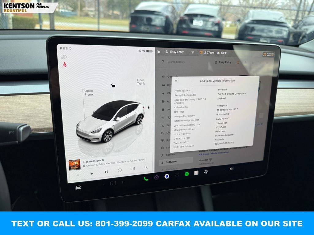 Autopilot, Blind Spot Monitor, Dual Climate Control, Full Self Drive Capable, Heated Seats, Heated Steering Wheel, Navigation System, Power Lift Gate, Steering Wheel Audio Controls, Touch Screen, Wireless Charging.