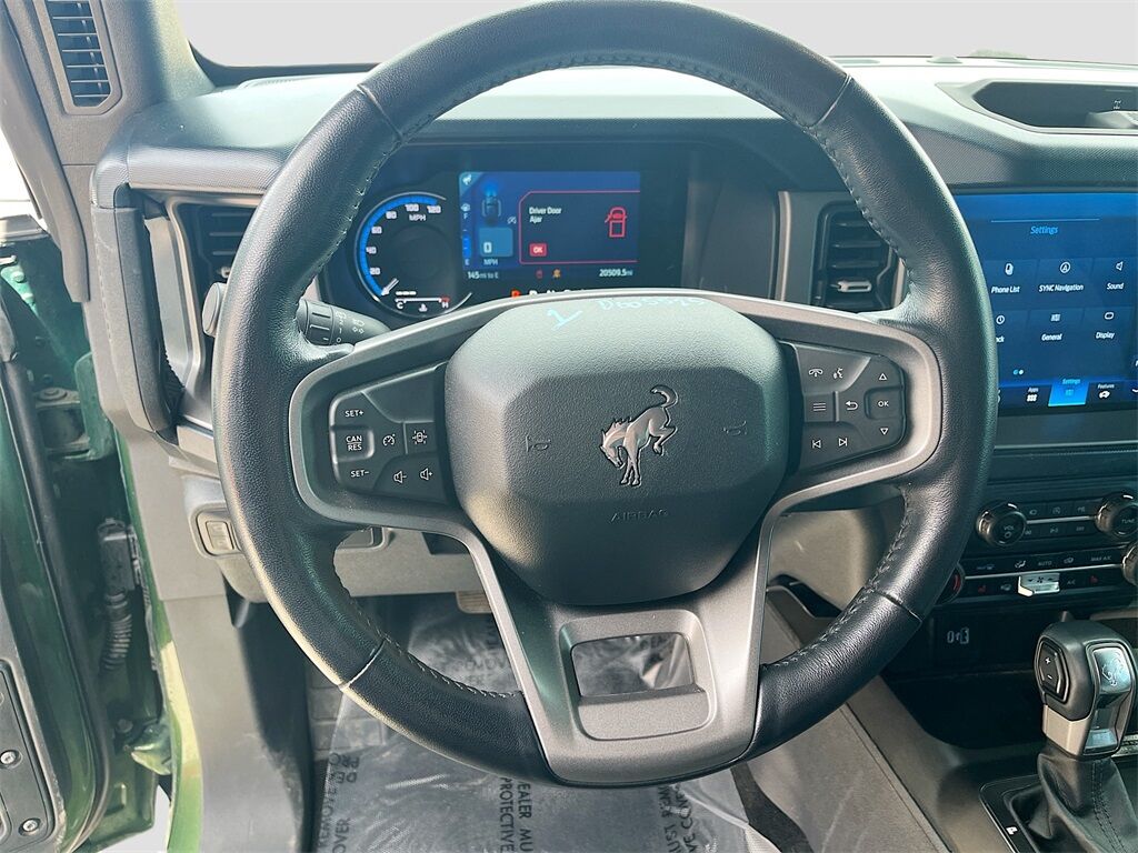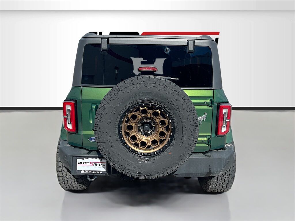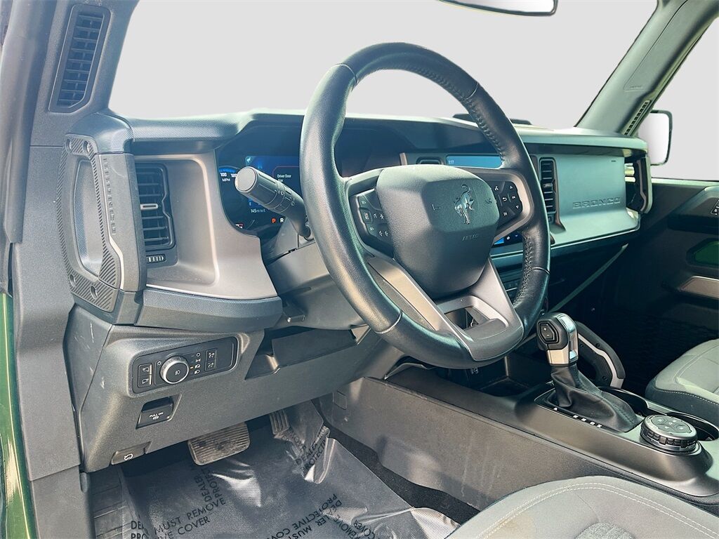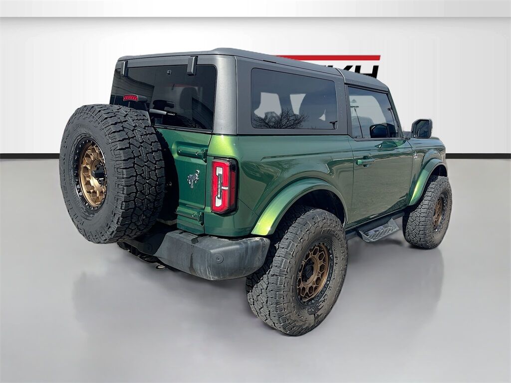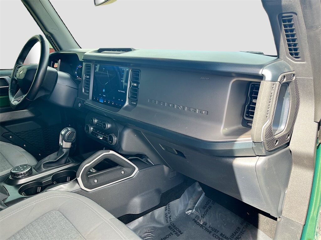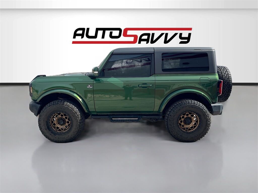 Unleash your adventurous spirit with the 2023 Ford Bronco Outer Banks 2 Door Advanced 4x4, available at AutoSavvy Windsor. This striking Eruption Green Metallic SUV is powered by a robust EcoBoost 2.7L V-6 engine, delivering 315 horsepower through a 10-speed automatic transmission, ensuring a thrilling and responsive drive. With only 20,507 miles on the odometer, this Bronco is practically new and ready for any terrain with its advanced four-wheel-drive system. Inside, the Dark Space Gray w/Navy Pier leather and leatherette upholstery offers a blend of luxury and durability, complemented by a 12-inch LCD touchscreen with swipe capability, and a 360-degree camera that enhances your driving experience. Enjoy the convenience of SYNC 4 with Apple CarPlay and Android Auto, heated front seats, and a premium sound system to keep you entertained on every journey. The current status of the title is branded, reflecting AutoSavvy Windsor's commitment to transparency and quality. This Ford Bronco is Savvy Certified, having undergone a rigorous inspection to ensure it meets high safety and performance standards. Covered by our 4-month/4,500 Mile Warranty, you can drive with confidence knowing that this vehicle has been meticulously inspected for your safety and satisfaction. Whether you're tackling rugged trails or navigating city streets, the 2023 Ford Bronco Outer Banks 4x4 promises a dynamic and comfortable driving experience. Visit AutoSavvy Windsor today to see why this Bronco is the ultimate choice for those seeking adventure, style, and cutting-edge technology.
