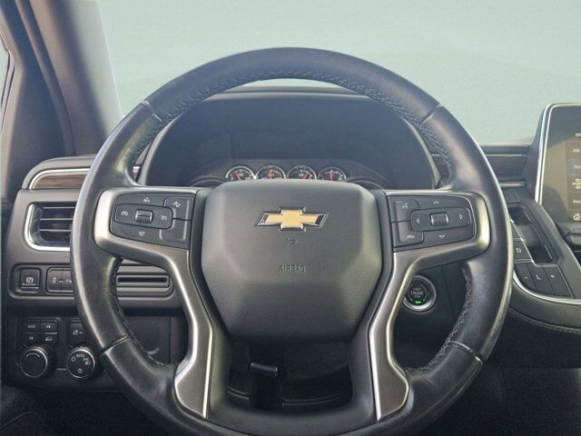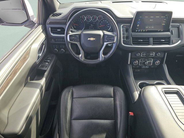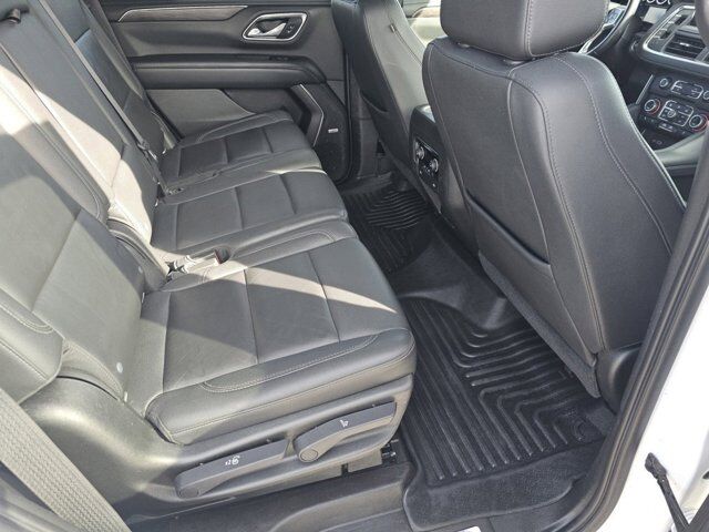 LICENSE PLATE FRONT MOUNTING PACKAGE,WHEELS 18 X 8.5 (45.7 CM X 21.6 CM) BRIGHT SILVER PAINTED ALUMINUM (STD),JET BLACK LEATHER SEATING SURFACES 1ST AND 2ND ROW,SUMMIT WHITE,AUDIO SYSTEM CHEVROLET INFOTAINMENT 3 PLUS SYSTEM 10.2 DIAGONAL HD COLOR TOUCHSCREEN AM/FM stereo Bluetooth audio streaming for 2 active devices Apple CarPlay and Android Auto capable enhanced voice recognition in-vehicle apps cloud connected personalization for select infotainment and vehicle settings. Subscription required for enhanced and connected services after trial period. (STD),REAR AXLE 3.23 RATIO,TIRES 265/65R18SL ALL-SEASON BLACKWALL (STD),LT PREFERRED EQUIPMENT GROUP includes standard equipment,TRANSMISSION 10-SPEED AUTOMATIC electronically controlled with overdrive includes Traction Select System including tow/haul (Most vehicles built on or after 6-7-2021 with a V8 engine will have (NSS) Not Equipped with Automatic Stop/Start which removes Automatic Stop/Start Engine control stop/start disable button and its content.) (STD),GVWR 7500 LBS. (3402 KG) (STD),SEATS FRONT BUCKET (STD),ENGINE 5.3L ECOTEC3 V8 with Dynamic Fuel Management Direct Injection and Variable Valve Timing includes aluminum block construction (355 hp [265 kW] @ 5600 rpm 383 lb-ft of torque [518 Nm] @ 4100 rpm) (STD),Locking/Limited Slip Differential,Four Wheel Drive,Tow Hitch,Power Steering,ABS,4-Wheel Disc Brakes,Aluminum Wheels,Tires - Front All-Season,Tires - Rear All-Season,Conventional Spare Tire,Conventional Spare Tire,Luggage Rack,Running Boards/Side Steps,Automatic Highbeams,Heated Mirrors,Power Mirror(s),Privacy Glass,Intermittent Wipers,Variable Speed Intermittent Wipers,Rain Sensing Wipers,Intermittent Wipers,Remote Trunk Release,Power Liftgate,AM/FM Stereo,MP3 Capability,Bluetooth Connection,Auxiliary Audio Input,Smart Device Integration,Premium Sound System,MP3 Capability,Bluetooth Connection,Auxiliary Audio Input,Satellite Radio,Requires Subscription,HD Radio,Bluetooth Connection,Bluetooth Connection,Smart Device Integration,WiFi Hotspot,Bucket Seats,Immobilizer,Keyless Start,Leather Seats,Power Driver Seat,Power Passenger Seat,Driver Adjustable Lumbar,Passenger Adjustable Lumbar,Heated Front Seat(s),Pass-Through Rear Seat,Rear Bench Seat,3rd Row Seat,Floor Mats,Adjustable Steering Wheel,Leather Steering Wheel,Cruise Control,Steering Wheel Audio Controls,Front Collision Warning,Power Door Locks,Keyless Entry,Power Door Locks,Remote Engine Start,Cruise Control,Universal Garage Door Opener,Security System,MP3 Capability,Auxiliary Audio Input,MP3 Capability,Auxiliary Audio Input,Power Windows,Power Windows,Power Windows,Seat Memory,Climate Control,Multi-Zone A/C,A/C,Rear A/C,A/C,Rear A/C,Rear Defrost,Auto-Dimming Rearview Mirror,Driver Vanity Mirror,Passenger Vanity Mirror,Driver Illuminated Vanity Mirror,Passenger Illuminated Visor Mirror,Front Collision Mitigation,Front Collision Warning,Traction Control,Stability Control,Brake Assist,Daytime Running Lights,Driver Restriction Features,Driver Air Bag,Passenger Air Bag,Front Side Air Bag,Front Head Air Bag,Rear Head Air Bag,Passenger Air Bag Sensor,Telematics,Requires Subscription,Rear Parking Aid,Back-Up Camera,Front Collision Mitigation,Front Collision Warning,Child Safety Locks,Tire Pressure Monitor