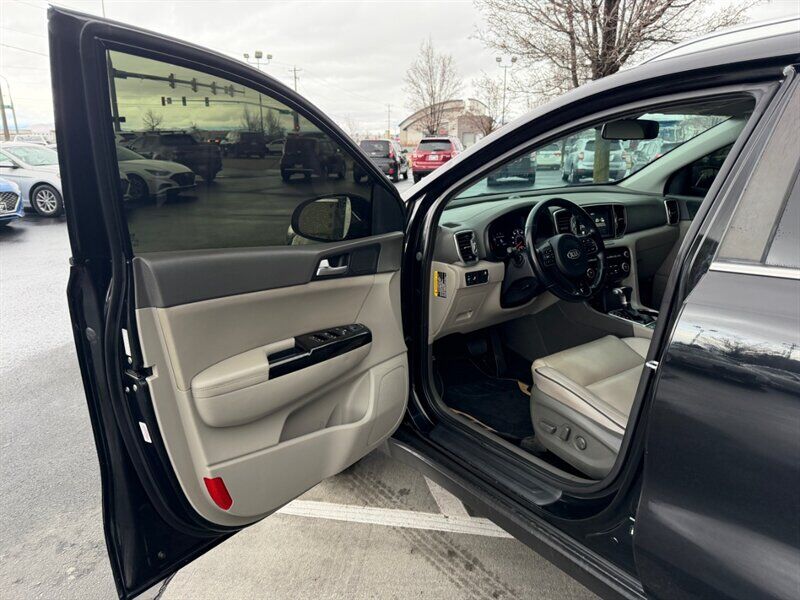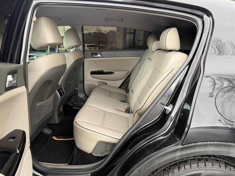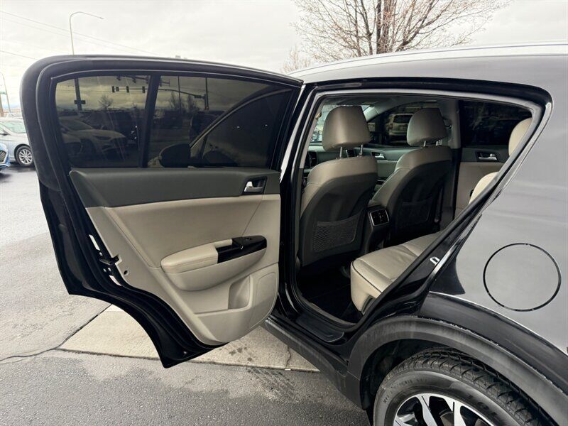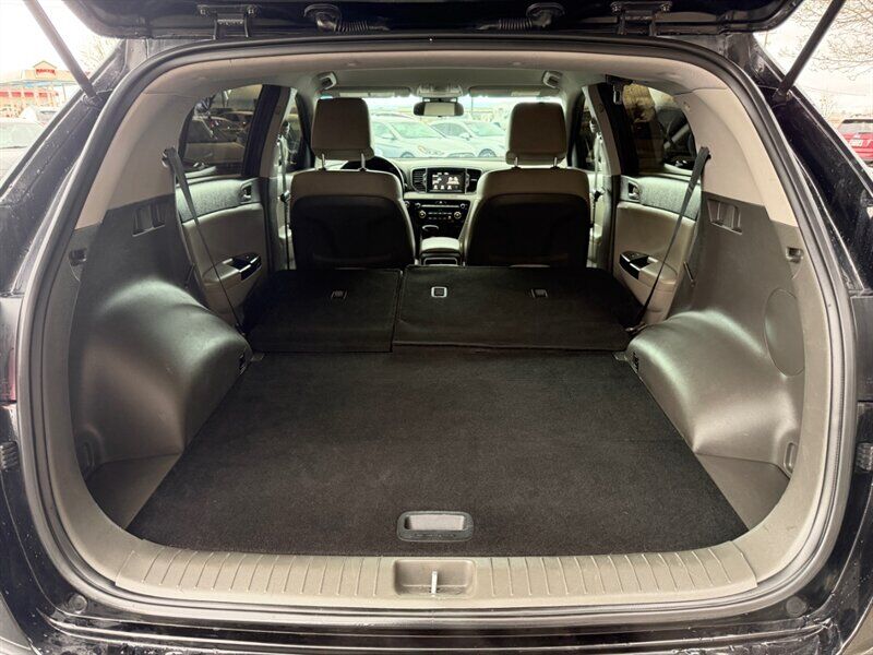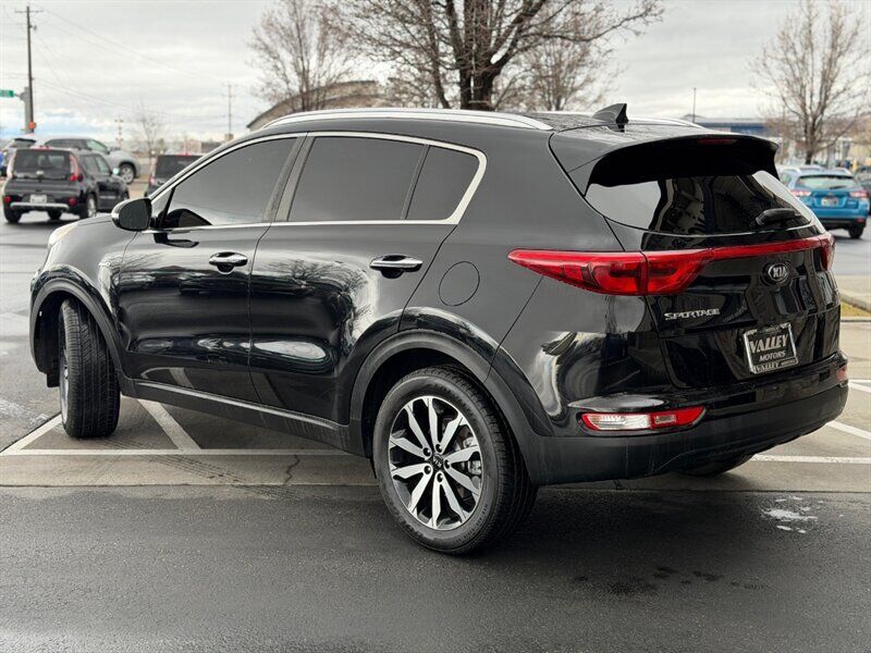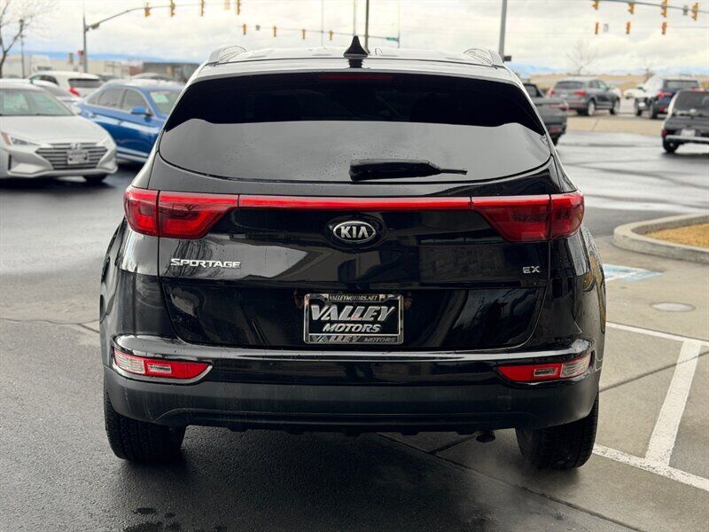 2018 Kia Sportage EX — Black exterior, Black interior. This Sportage is powered by the factory 2.4L I4 engine producing 181 hp and 175 lb-ft of torque, paired with the standard automatic transmission. EPA fuel economy is 21 MPG city and 25 MPG highway. The vehicle is in excellent overall condition and has a clean CARFAX.