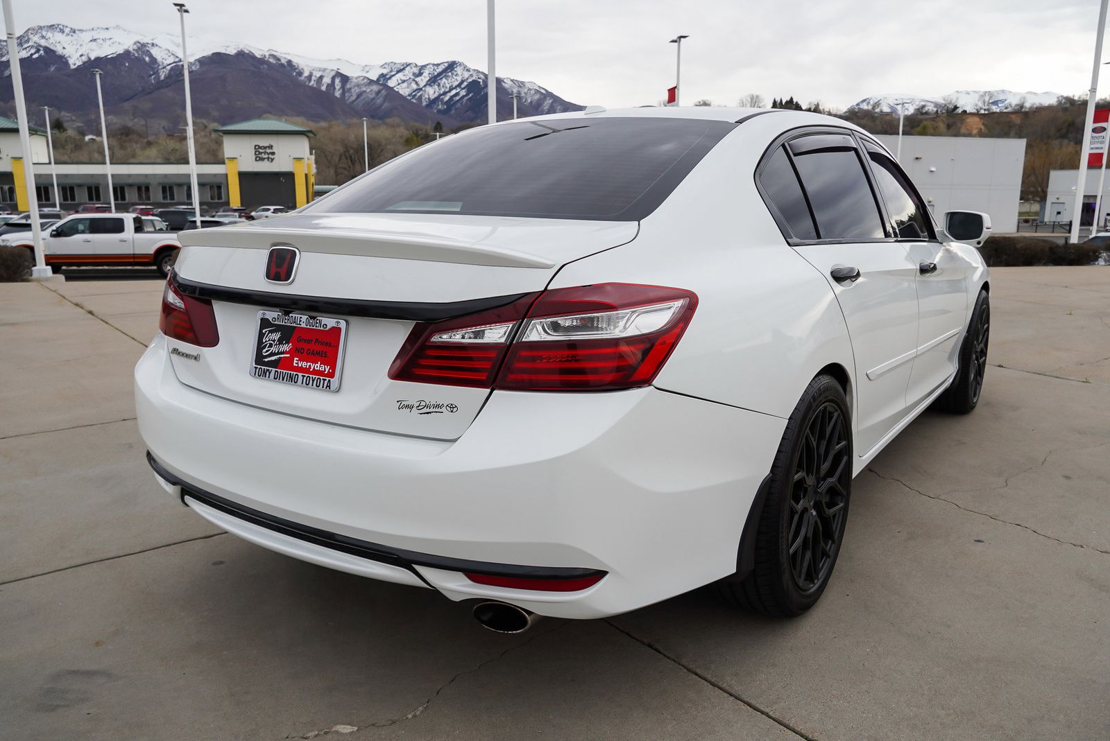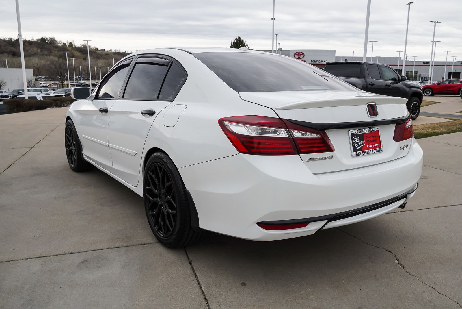 IIHS Top Safety Pick . Delivers 36 Highway MPG and 27 City MPG! This Honda Accord Sedan boasts a Regular Unleaded I-4 2.4 L/144 engine powering this Variable transmission. Wireless Phone Connectivity, Window Grid Antenna, Wheels: 17 Alloy. This Honda Accord Sedan Comes Equipped with These Options VSA Electronic Stability Control (ESC), Vinyl Door Trim Insert, Valet Function, Trunk Rear Cargo Access, Trip Computer, Transmission: Continuously Variable w/Sport Mode, Transmission w/Driver Selectable Mode, Tires: P215/55R17 94V AS, Strut Front Suspension w/Coil Springs, Steel Spare Wheel. The Votes are Counted IIHS Top Safety Pick , KBB.com Brand Image Awards, KBB.com 10 Most Awarded Brands. Stop By Today A short visit to Tony Divino Toyota located at 777 West Riverdale Rd, Riverdale, UT 84405 can get you a dependable Accord Sedan today! * Estimated Monthly Payment will depend on vehicle make and model and will be determined upon actual vehicle inspection. All payments are estimates. Tax, title, registration and documentation fee ($349) are extra.* While every reasonable effort is made to ensure the accuracy of this information, we are not responsible for any errors or omissions contained on these pages. Please verify any information in question with Tony Divino Toyota.