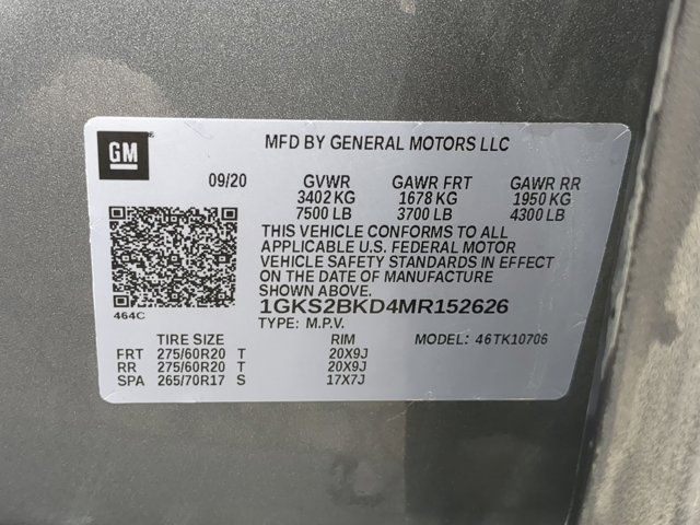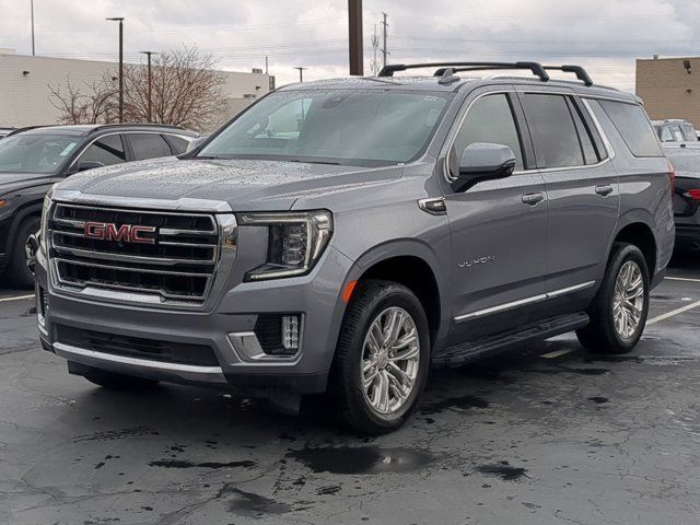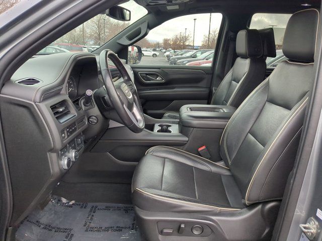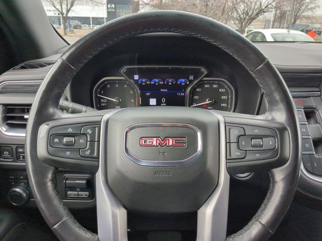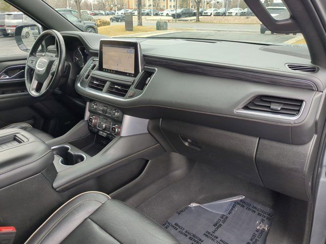 SATIN STEEL METALLIC,BUILDABLE ORDER CONFIRMATION,REAR AXLE 3.23 RATIO,HITCH GUIDANCE WITH HITCH VIEW WITH IMAGE ADJUSTMENT PAN/ZOOM,SLT LUXURY PACKAGE includes (UV2) HD Surround Vision (UKK) Rear Pedestrian Alert (A45) memory settings (DXR) outside heated power-adjustable power-folding body-color mirrors with driver-side auto-dimming and integrated turn signal indicators (N38) power tilt and telescopic steering column (KI3) automatic heated steering wheel (KA6) second row outboard heated seats (ATT) second row power 60/40 split-folding bench seats and (AS8) third row power 60/40 splitfolding bench seats,TRANSFER CASE ACTIVE 2-SPEED ELECTRONIC AUTOTRAC with rotary controls includes neutral position for dinghy towing,SEATS SECOND ROW BUCKET POWER RELEASE,SLT LUXURY PLUS PACKAGE includes (WPL) SLT Luxury Package content (NHT) Max Trailering Package and (C3U) Panoramic power sunroof,MAX TRAILERING PACKAGE includes (ZL6) ProGrade Trailering System and (V03) extra capacity cooling system Also includes (NQH) 2-speed active transfer case on 4WD models.,SLT PREFERRED EQUIPMENT GROUP Includes Standard Equipment,SEATS THIRD ROW 60/40 SPLIT-BENCH POWER-FOLDING,TRAILER SIDE BLIND ZONE ALERT,TRANSMISSION 10-SPEED AUTOMATIC electronically controlled with overdrive includes Traction Select System including tow/haul (Most vehicles built on or after 6-7-2021 with a V8 engine will have (NSS) Not Equipped with Automatic Stop/Start which removes Automatic Stop/Start Engine control stop/start disable button and its content.) (STD),AUDIO SYSTEM 10.2 DIAGONAL GMC INFOTAINMENT SYSTEM WITH NAVIGATION includes multi-touch display AM/FM/SiriusXM stereo Bluetooth streaming audio for music and most phones Android Auto and Apple CarPlay capability for compatible phones advanced voice recognition in-vehicle apps personalized profiles for infotainment and vehicle settings,COOLING SYSTEM EXTRA CAPACITY,STEERING COLUMN POWER TILT AND TELESCOPIC,TRAILER BRAKE CONTROLLER INTEGRATED,ENGINE 5.3L ECOTEC3 V8 with Dynamic Fuel Management Direct Injection and Variable Valve Timing includes aluminum block construction (355 hp [265 kW] @ 5600 rpm 383 lb-ft of torque [518 Nm] @ 4100 rpm) (STD),IN-VEHICLE TRAILERING APP SYSTEM includes checklist trailer maintenance reminders trailer security alerts trailer mileage tow/haul reminder trailer electrical diagnostics and Trailer Tire Pressure Monitor System module,REAR SEAT MEDIA SYSTEM includes dual rear seat-mounted 12.6 diagonal color-touch LCD HD screens Wi-Fi wireless projection capability two 2-channel wireless infrared digital headphones with 2 HDMI ports on the back of the center console; compatible with Bluetooth headphones,HD SURROUND VISION,SEATS FRONT BUCKET (STD),STEERING WHEEL HEATED AUTOMATIC,INTERIOR TRIM JET BLACK,LICENSE PLATE FRONT MOUNTING PACKAGE (Included on orders with ship-to states that require a front license plate.),TRAILER TIRE PRESSURE MONITOR SENSORS includes set of 4 sensors. Sensor functionality requires (U1D) In-vehicle Trailering App to be ordered with the vehicle and installed by the factory. Sensors will be shipped loose with the vehicle and will need to be installed on trailer by customer. System is capable of monitoring up to 6 wheels. Additional or replacement sensors are available through GM Accessories,SUNROOF POWER PANORAMIC DUAL-PANE tilt-sliding with express-open and close and power sunshade,TIRES 275/60R20SL ALL-SEASON BLACKWALL (STD),GVWR 7500 LBS. (3402 KG) (STD),MIRRORS OUTSIDE HEATED POWER-ADJUSTABLE POWER-FOLDING driver-side auto-dimming integrated turn signal indicators and puddle lighting,JET BLACK PERFORATED LEATHER SEATING SURFACES (1st and 2nd rows only.),MEMORY SETTINGS recalls 2 driver presets for power driver seat outside rearview mirrors and power and tilt and telescopic steering column,PROGRADE TRAILERING SYSTEM includes (PZ8) Hitch Guidance with Hitch View (JL1) trailer brake controller and (U1D) In-vehicle Trailering App Also includes (UKV) Trailer Side Blind Zone Alert.),SEATS HEATED SECOND ROW OUTBOARD POSITIONS,REAR MEDIA AND NAV PACKAGE includes (UW9) Rear Seat Media System and (IOT) 10.2 diagonal GMC Infotainment System with Navigation,REAR PEDESTRIAN ALERT,WHEELS 20 X 9 (50.8 CM X 22.9 CM) 6-SPOKE POLISHED ALUMINUM (STD),Rear Parking Aid,Blind Spot Monitor,Lane Departure Warning,Cross-Traffic Alert,Lane Keeping Assist,Front Collision Mitigation,Front Collision Warning,Automatic Highbeams,Keyless Start,Locking/Limited Slip Differential,Four Wheel Drive,Tow Hitch,Air Suspension,Power Steering,ABS,4-Wheel Disc Brakes,Aluminum Wheels,Tires - Front All-Season,Tires - Rear All-Season,Conventional Spare Tire,Conventional Spare Tire,Luggage Rack,Running Boards/Side Steps,Fog Lamps,Heated Mirrors,Power Mirror(s),Privacy Glass,Intermittent Wipers,Variable Speed Intermittent Wipers,Rain Sensing Wipers,Remote Trunk Release,Power Liftgate,AM/FM Stereo,Satellite Radio,MP3 Capability,Bluetooth Connection,Auxiliary Audio Input,Smart Device Integration,Requires Subscription,MP3 Capability,Bluetooth Connection,Auxiliary Audio Input,Premium Sound System,Satellite Radio,Requires Subscription,HD Radio,WiFi Hotspot,Bucket Seats,Pass-Through Rear Seat,Rear Bench Seat,Leather Seats,Seat Memory,3rd Row Seat,Heated Front Seat(s),Leather Seats,Heated Front Seat(s),Cooled Front Seat(s),Power Driver Seat,Power Passenger Seat,Driver Adjustable Lumbar,Passenger Adjustable Lumbar,Floor Mats,Adjustable Steering Wheel,Leather Steering Wheel,Cruise Control,Steering Wheel Audio Controls,Front Collision Warning,Bluetooth Connection,Smart Device Integration,Power Windows,Power Windows,Power Windows,Power Door Locks,Keyless Entry,Power Door Locks,Remote Engine Start,Cruise Control,Universal Garage Door Opener,MP3 Capability,Auxiliary Audio Input,MP3 Capability,Auxiliary Audio Input,Climate Control,Multi-Zone A/C,A/C,Rear A/C,A/C,Rear A/C,Rear Defrost,Security System,Auto-Dimming Rearview Mirror,Driver Vanity Mirror,Passenger Vanity Mirror,Driver Illuminated V
