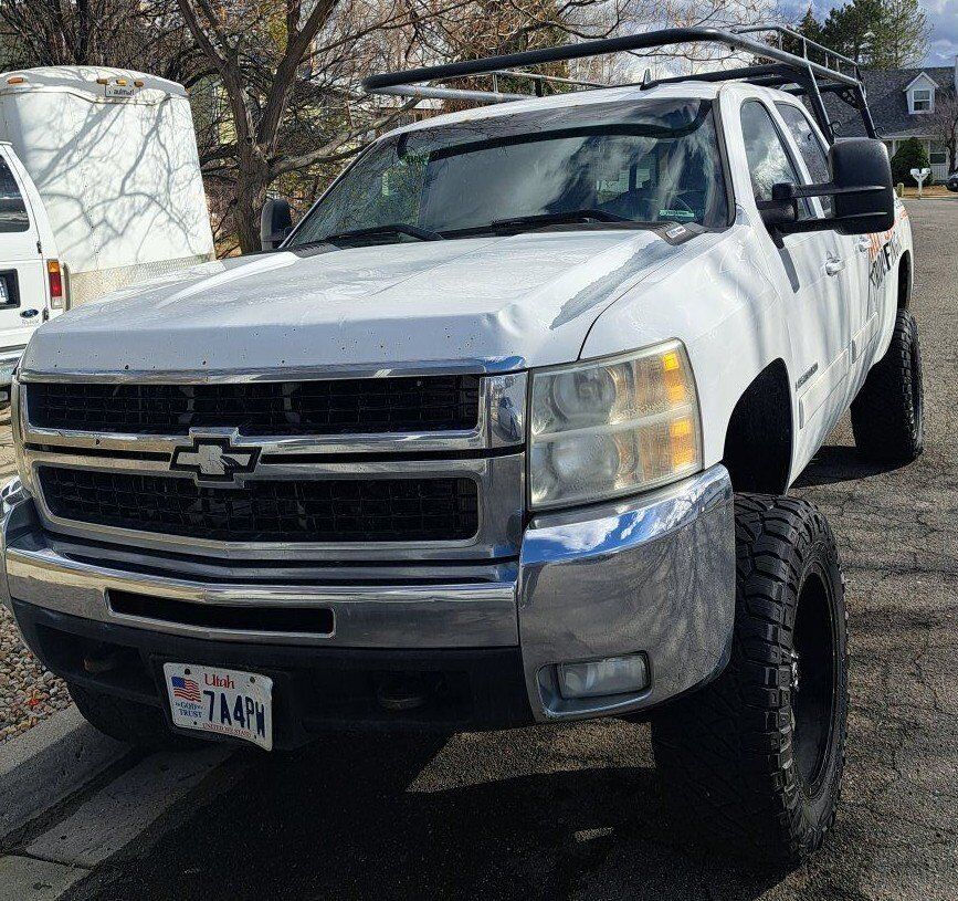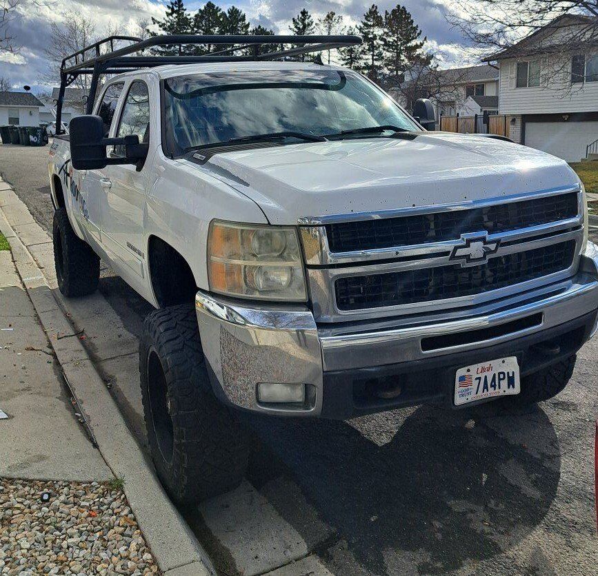 2008 Chevrolet Silverado 2500 HD 4WD 6.6L V8 Turbo Diesel Engine. This has been an excellent work truck, runs very well, everything works properly. It needs the passenger side mirror and the exterior door handle replaced. It also has very good tires, a roof rack for ladders or materials, and a large toolbox. Send me a message if you are interested in coming to see and test drive it.