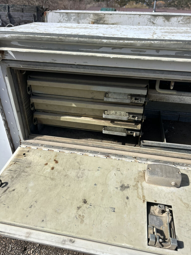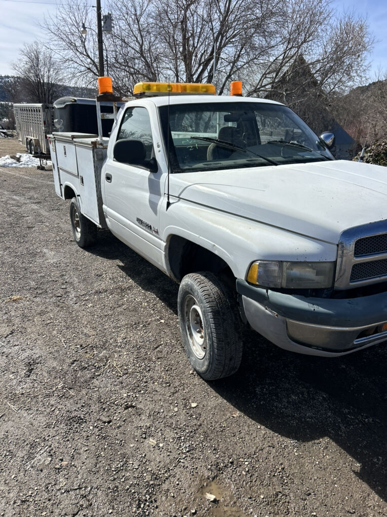 Dodge service truck. Bed is in good condition doors open and close well. Interior is beat up. Drivers window doesn’t roll up windshield is cracked. Runs and drives. Has been a work truck it entire life and shows it. Manual 5 speed. Good cheap running truck!