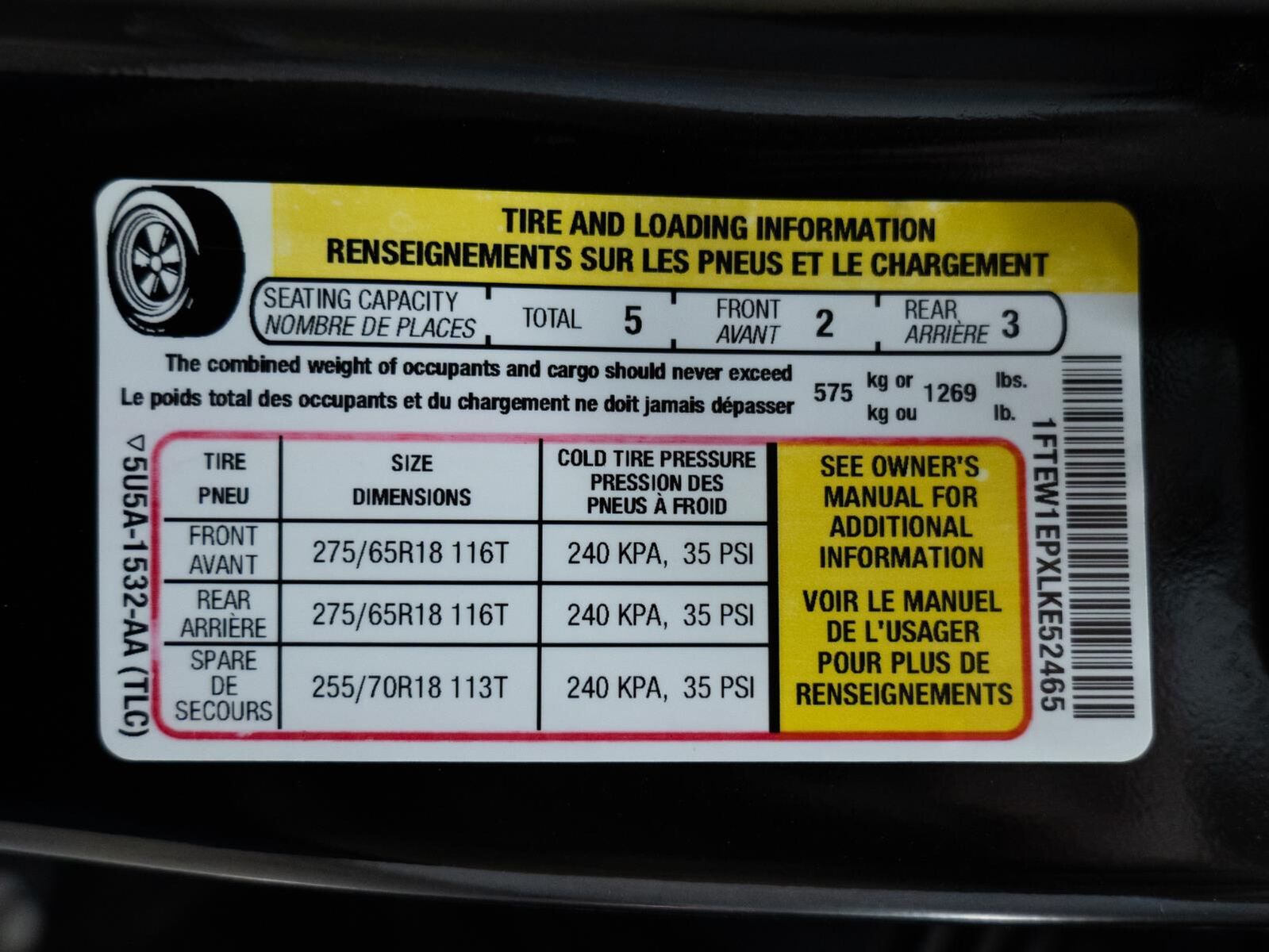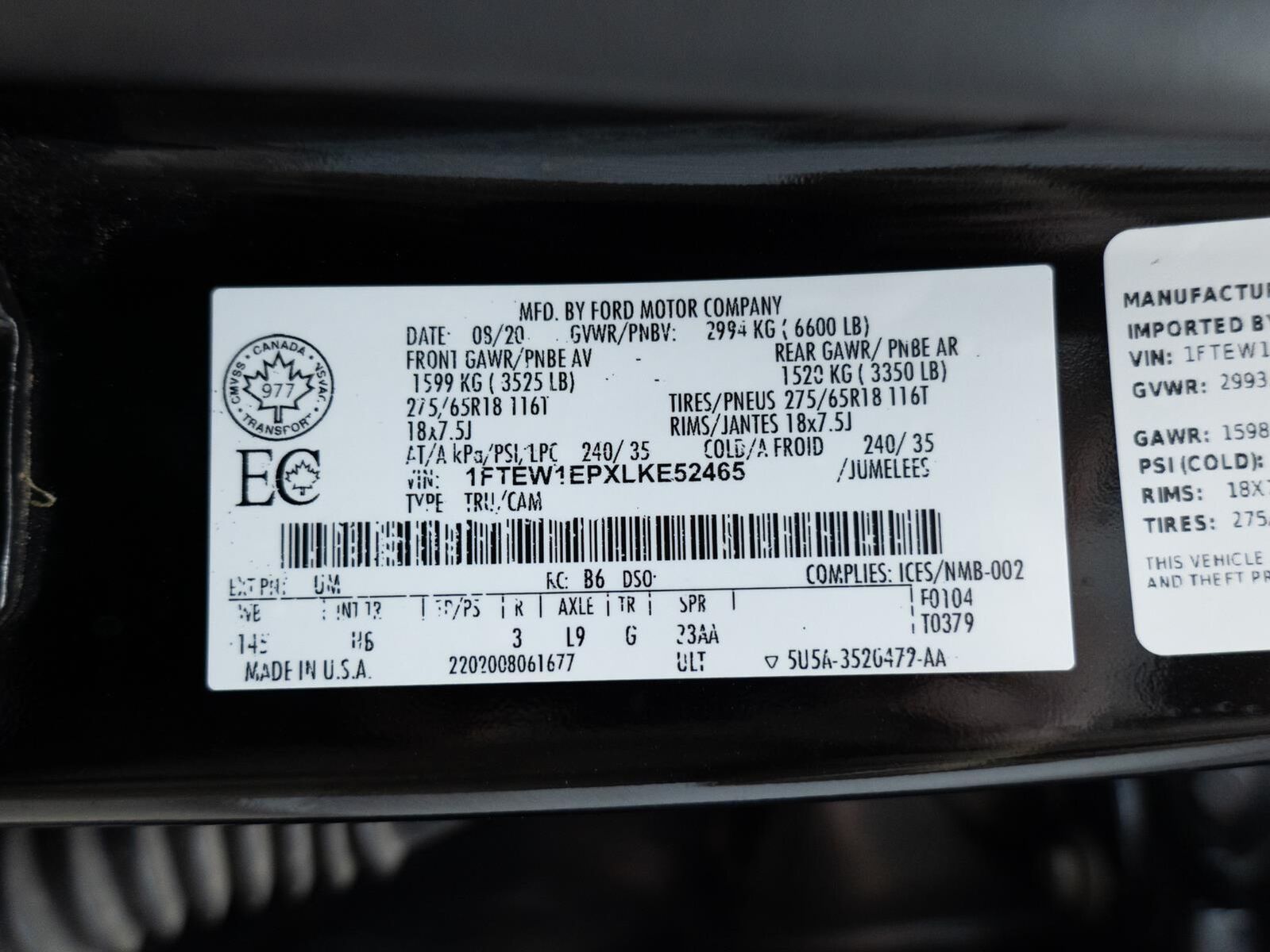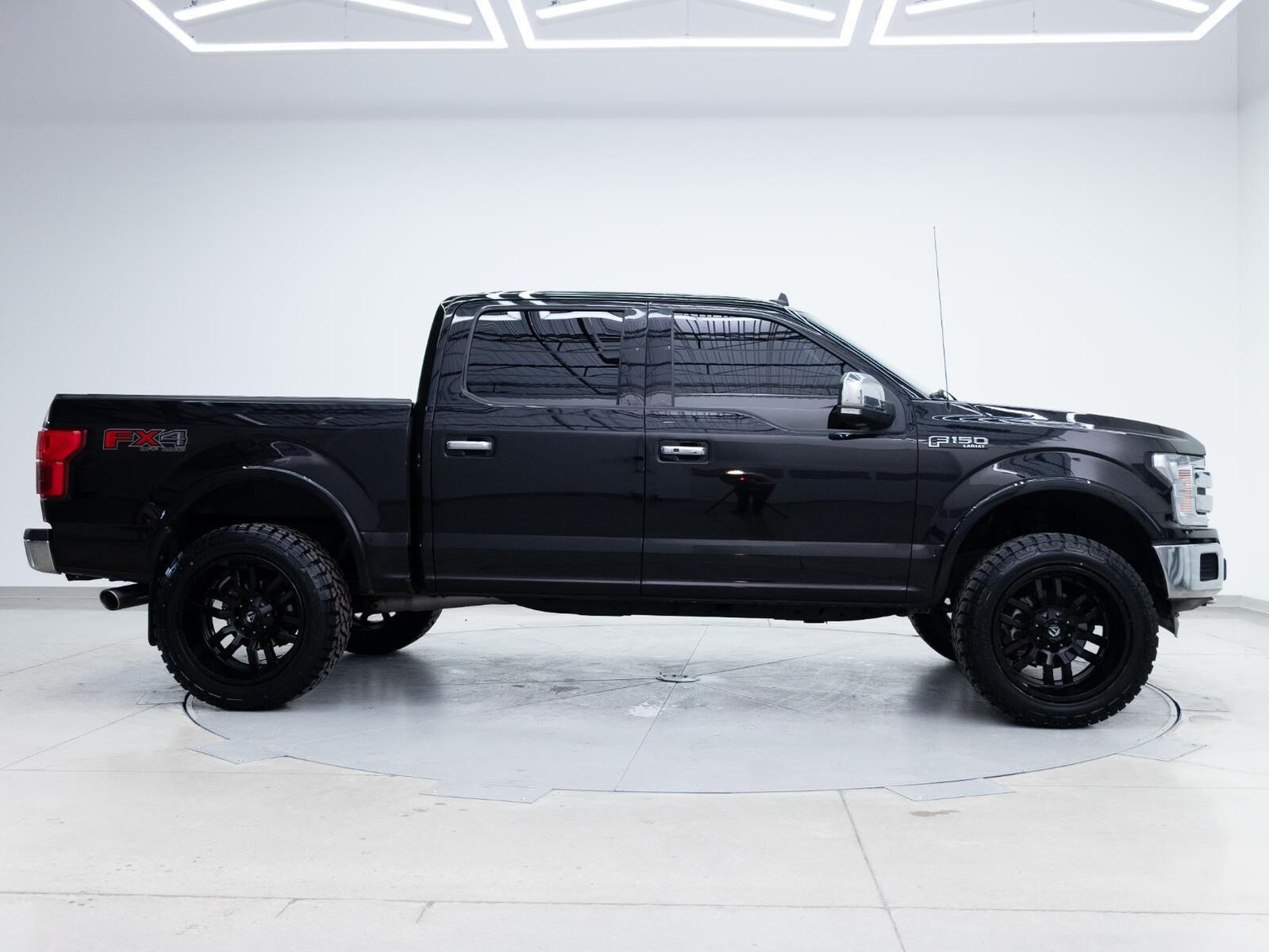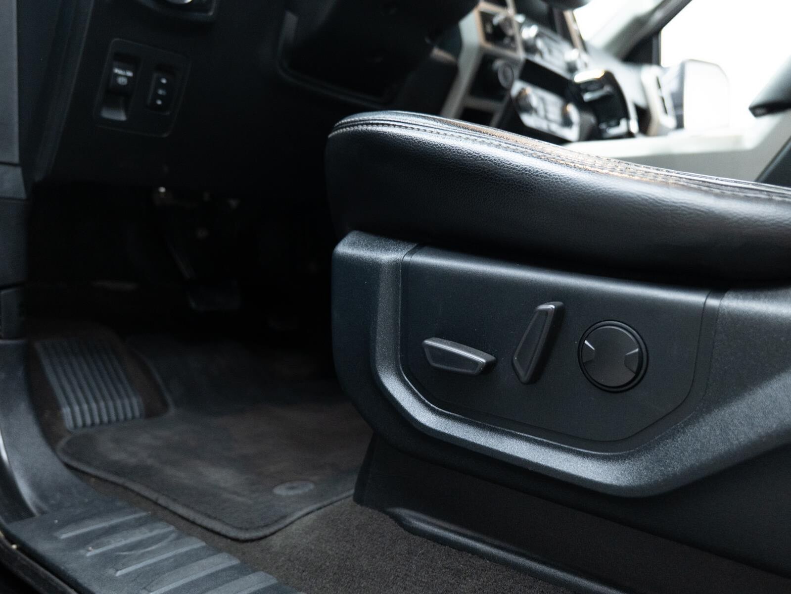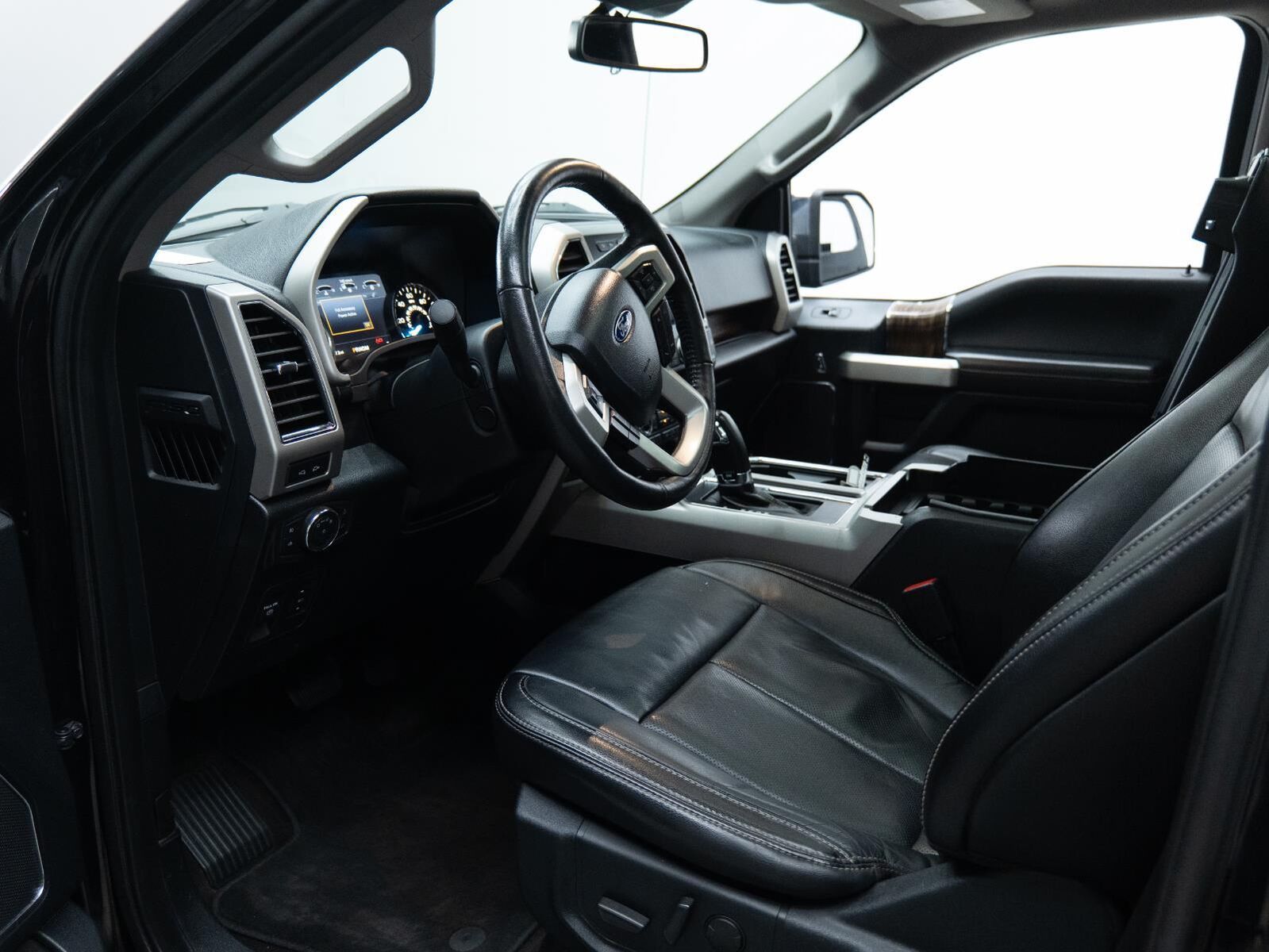 Reverse Sensing System ($275 value)Full Coverage Rubber Floor Mats ($160 value)3.55 Electronic Locking Axle Ratio ($470 value)Tailgate Step ($375 value)Includes tailgate step with tailgate lift assist.LED Puddle/Side Mirror Spotlights ($175 value)Includes LED side mirror spotlights and high intensity LED security approach lamps.110V/400W Outlet ($200 value)Includes one 110V/400W outlet in the instrument panel, and second outlet in the console with 40/console/40 seats.Chrome Angular Running Boards ($780 value)Twin Panel Panoramic Moonroof ($1,495 value)Includes twin panel power panoramic moonroof with map lights and moonroof switches.Leather-trimmed Bucket Seats w/Flow-through Console ($650 value)Includes heated and ventilated leather-trimmed 10-way power adjustable front seats, 3 driver memory for drivers seat, 4-way adjustable driver and passenger headrests, and flow-through console with floor shifter.Lariat Chrome Appearance Package ($1,695 value)Includes 18 x 7.5 inch chrome PVD wheels with 275/65R18 OWL tires, chrome door handles, silver mesh grille with chrome bars, chrome side steps, chrome single-tip exhaust, chrome tow hooks, and chrome mirror caps.Equipment Group 502A ($6,765 value)Includes vehicle with standard equipment, 18 x 7.5 inch chrome PVD wheels with 275/65R18 OWL tires, chrome door handles, silver mesh grille with chrome bars, chrome side steps, chrome single-tip exhaust, chrome tow hooks, chrome mirror caps, power-folding power heated side view mirrors with LED integrated turn signals and security approach lamps, auto-dimming driver's side view mirror, quad beam LED headlamps, LED taillamps, LED fog lamps, LED box lighting with BoxLink, reverse sensing system, rain sensing wipers, windshield wiper de-icer, remote start system, remote tailgate release, 10-way power adjustable front seats, leather-trimmed bucket seats, flow-through console with floor shifter, heated front and rear seats, 3 driver memory for drivers seat, mirrors, power-adjustable pedals and steering wheel, power tilt/telescoping steering column, heated steering wheel, 750 watt premium 10-speaker B&O Play audio system with subwoofer, HD radio, SiriusXM radio, one 110V/400W outlet (two with bucket seats), and universal garage door opener.Bed Utility Package ($205 value)Includes LED box lighting with BoxLink.