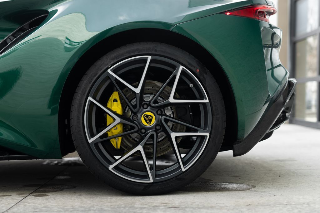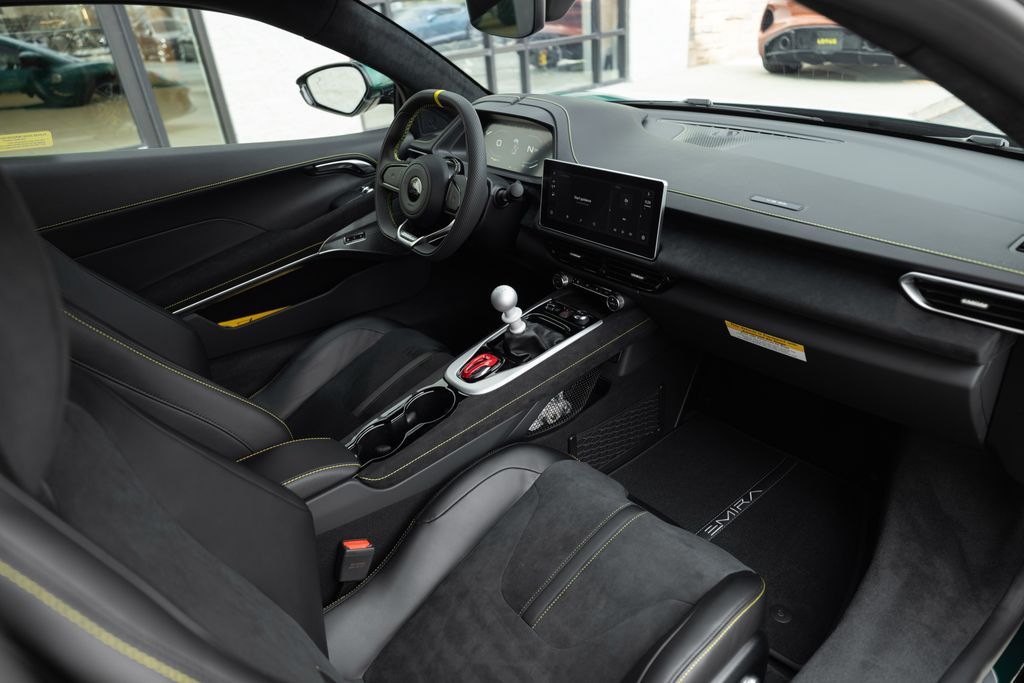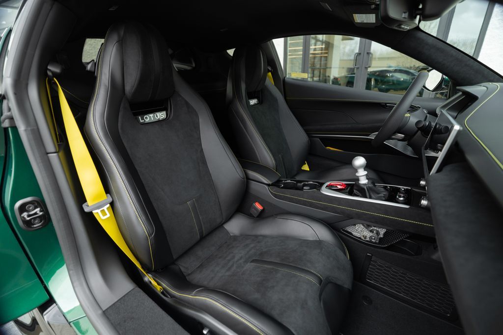 Lotus Salt Lake City presents this 2026 Lotus Emira V6 SE finished in Racing Green with Black Alcantara interior featuring Yellow contrast stitching. Powered by a supercharged 3.5-liter V6 paired with a 6-speed manual transmission, the Emira delivers precise driver engagement within a lightweight bonded aluminum chassis. Configured with Touring Suspension, forged ultra-lightweight wheels, and KEF premium audio, this example balances analog performance character with modern technology.