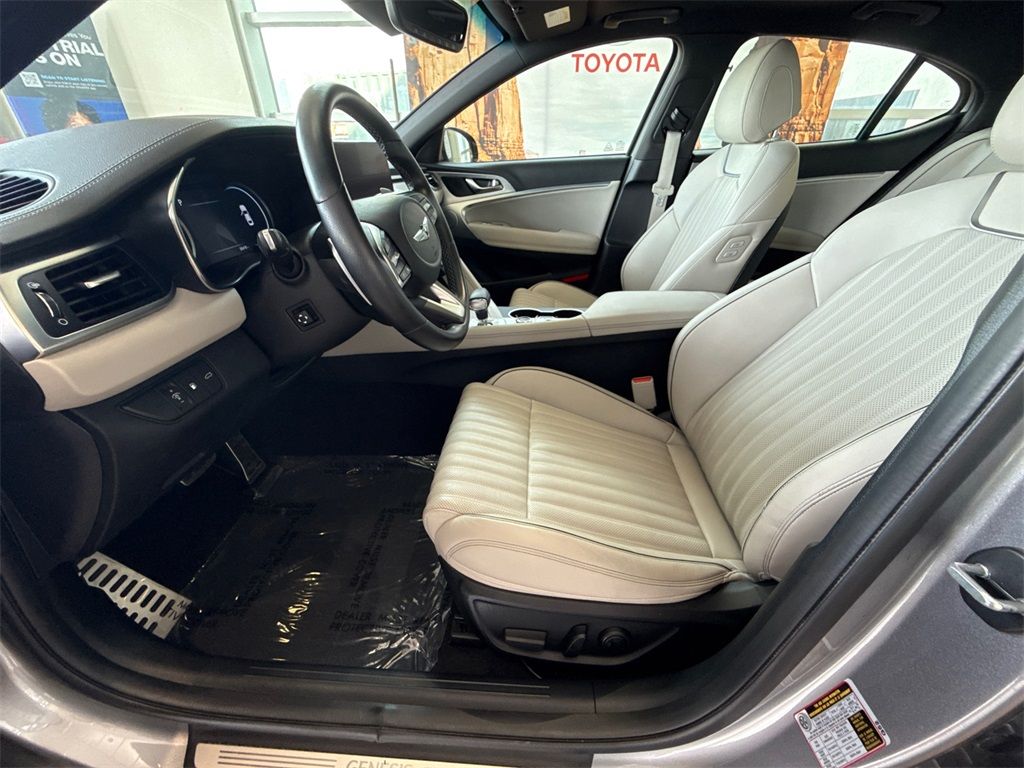 4-Way Power Lumbar Front Passenger Seat, 4-Wheel Disc Brakes, 6 Speakers, ABS brakes, Acoustic Front Door Glass, Air Conditioning, Alloy Pedals, Alloy wheels, AM/FM radio: SiriusXM, Android Auto & Apple CarPlay, Anti-whiplash front head restraints, Auto High-beam Headlights, Auto-dimming Rear-View mirror, Automatic temperature control, Brake assist, Bumper Applique, Bumpers: body-color, Dark Chrome Grille & Daylight Opening Trim, Delay-off headlights, Driver door bin, Driver vanity mirror, Dual front impact airbags, Dual front side impact airbags, Electronic Stability Control, Emergency communication system: Genesis Connected Services, Exterior Parking Camera Rear, Forward & Reverse Parking Distance Warning, Four wheel independent suspension, Front anti-roll bar, Front Bucket Seats, Front Center Armrest, Front dual zone A/C, Front Passenger Seat Walk-In Device, Front reading lights, Fully automatic headlights, Garage door transmitter: HomeLink, Heated door mirrors, Heated front seats, Heated Multi-Adjustable Front Bucket Seats, Illuminated entry, Integrated Memory System (IMS), Knee airbag, Leather Seating Surfaces, Leatherette Seating Surfaces, Low tire pressure warning, Mudguards, Navigation System, Occupant sensing airbag, Option Group 02, Outside temperature display, Overhead airbag, Overhead console, Panic alarm, Passenger door bin, Passenger vanity mirror, Power door mirrors, Power driver seat, Power Folding ECM Outside Mirrors, Power passenger seat, Power steering, Power Telescoping Steering Wheel, Power windows, Radio: AM/FM/SiriusXM/HD Audio System, Radio: AM/FM/SiriusXM/HD Lexicon Prem Audio System, Rain-Sensing Wipers, Rear anti-roll bar, Rear reading lights, Rear seat center armrest, Rear window defroster, Remote keyless entry, Security system, Speed control, Speed-Sensitive Wipers, Split folding rear seat, Sport Aluminum Trim, Sport Prestige Package, Steering wheel mounted audio controls, Tachometer, Telescoping steering wheel, Traction control, Trip computer, Turn signal indicator mirrors, Variably intermittent wipers, Ventilated Front Seats, Wheels: 19'' x 8.0J Fr & 19'' x 8.5J Rr Alloy, Wheels: 19'' x 8.0J Fr & 19'' x 8.5J Rr Sport Alloy, Wide Sunroof, Wireless Device Charging.
