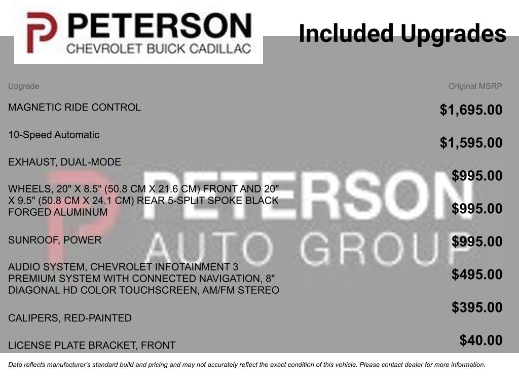 Chevrolet helps you move confidently, knowing an HD rearview camera, a digital rearview mirror, forward collision alert, blind-spot monitoring, rear cross-traffic alert, and more are on board. Strong and stylish, our Camaro 2SS is ready to raise your spirits! Save this Page and Call for Availability. We Know You Will Enjoy Your PETERSON CHEVROLET Test Drive Towards Ownership! Call us today 208-323-5000 to schedule your VIP test drive!
