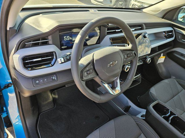 LT PREFERRED EQUIPMENT GROUP includes standard equipment,MARINA BLUE METALLIC,PROPULSION FRONT WHEEL DRIVE (FWD) (STD),BATTERY PACK PROPULSION 60-70 KWH BATTERY RATED ENERGY 150 kW DC fast charging capable (STD),SEATS HEATED DRIVER AND FRONT PASSENGER,MIRROR INSIDE REARVIEW AUTO-DIMMING,COMFORT PACKAGE includes (A2X) driver 8-way power seat adjuster (KA1) heated driver and front passenger seats (N5E) flat-bottom wrapped steering wheel (KI3) heated steering wheel and (DD8) inside rearview auto-dimming mirror,STEERING WHEEL HEATED,SEATS FRONT BUCKET (STD),ENGINE NONE (ELECTRIC DRIVE UNIT) (STD),WHEELS 17 (43.2 CM) SILVER PAINTED ALUMINUM (STD),DUAL LEVEL CHARGE CORD DUAL-MODE PORTABLE 120-volt (1.4 kW) and 240-volt (7.7 kW) capability swappable NEMA 5-15 and NEMA 14-50 plugs with SAE J3400 (NACS) vehicle connection (STD),JET BLACK WITH BLUE AND GRAY STITCHING CLOTH SEAT TRIM,SEAT ADJUSTER DRIVER 8-WAY POWER,STEERING WHEEL WRAPPED FLAT-BOTTOM,TRANSMISSION NONE (ELECTRIC DRIVE UNIT) (STD),Electric Motor,Front Wheel Drive,Electric Motor,Aluminum Wheels,Tires - Front All-Season,Tires - Rear All-Season,Automatic Headlights,Automatic Highbeams,Heated Mirrors,Power Mirror(s),Intermittent Wipers,AM/FM Stereo,MP3 Capability,Bluetooth Connection,Auxiliary Audio Input,Satellite Radio,Requires Subscription,WiFi Hotspot,MP3 Capability,Auxiliary Audio Input,Bucket Seats,Cloth Seats,Pass-Through Rear Seat,Rear Bench Seat,Floor Mats,Floor Mats,Adjustable Steering Wheel,Power Windows,Power Windows,Keyless Entry,Power Door Locks,Keyless Start,Remote Engine Start,Cruise Control,Adaptive Cruise Control,MP3 Capability,Auxiliary Audio Input,Climate Control,A/C,Rear Defrost,Brake Assist,Front Collision Mitigation,Front Collision Warning,Front Collision Mitigation,Front Collision Warning,Rear Collision Mitigation,Cross-Traffic Alert,Traction Control,Stability Control,Driver Air Bag,Passenger Air Bag,Front Side Air Bag,Rear Side Air Bag,Front Head Air Bag,Rear Head Air Bag,Passenger Air Bag Sensor,Telematics,Requires Subscription,Rear Parking Aid,Back-Up Camera,Blind Spot Monitor,Evasion Assist,Lane Departure Warning,Lane Keeping Assist,Front Collision Warning,Driver Restriction Features